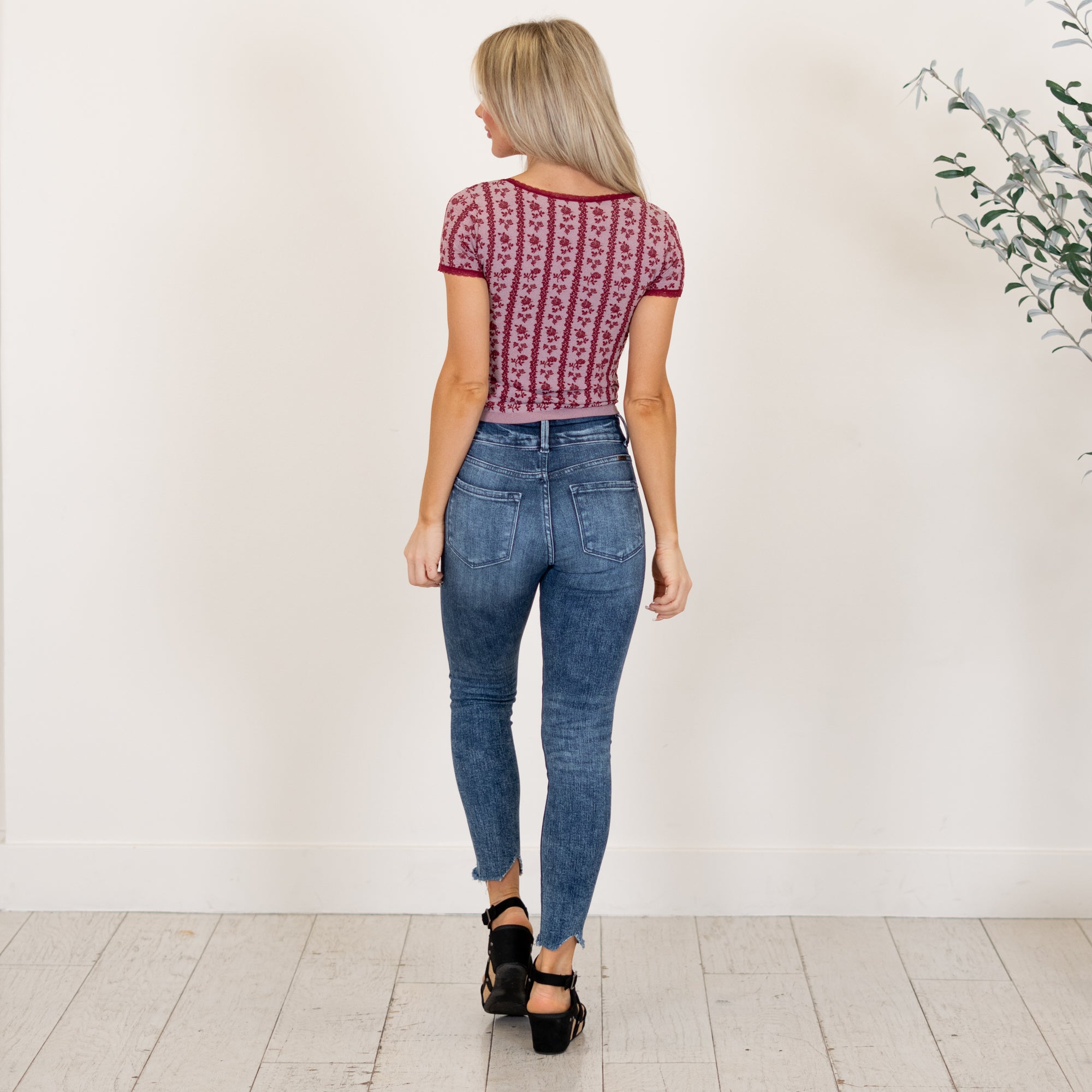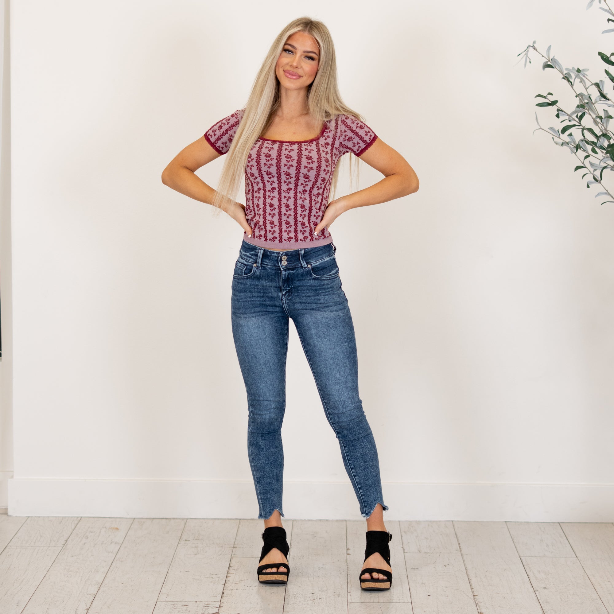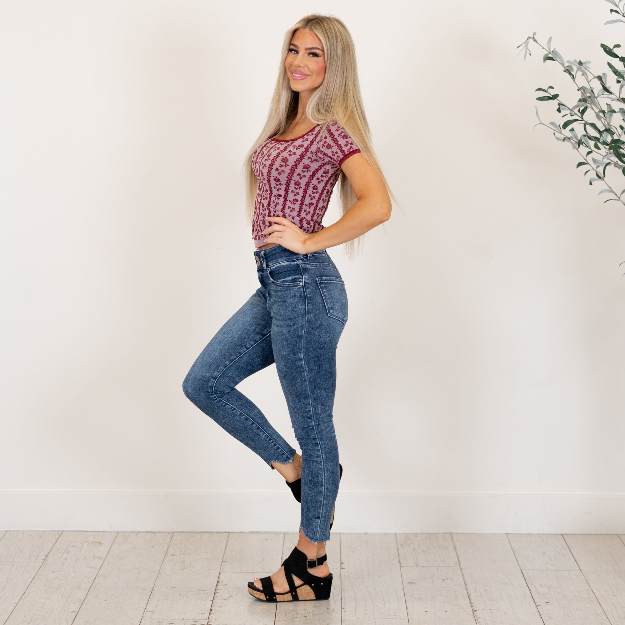 Flying Monkey Bergenia High Rise Boot Cut Jeans Medium Blue Wash