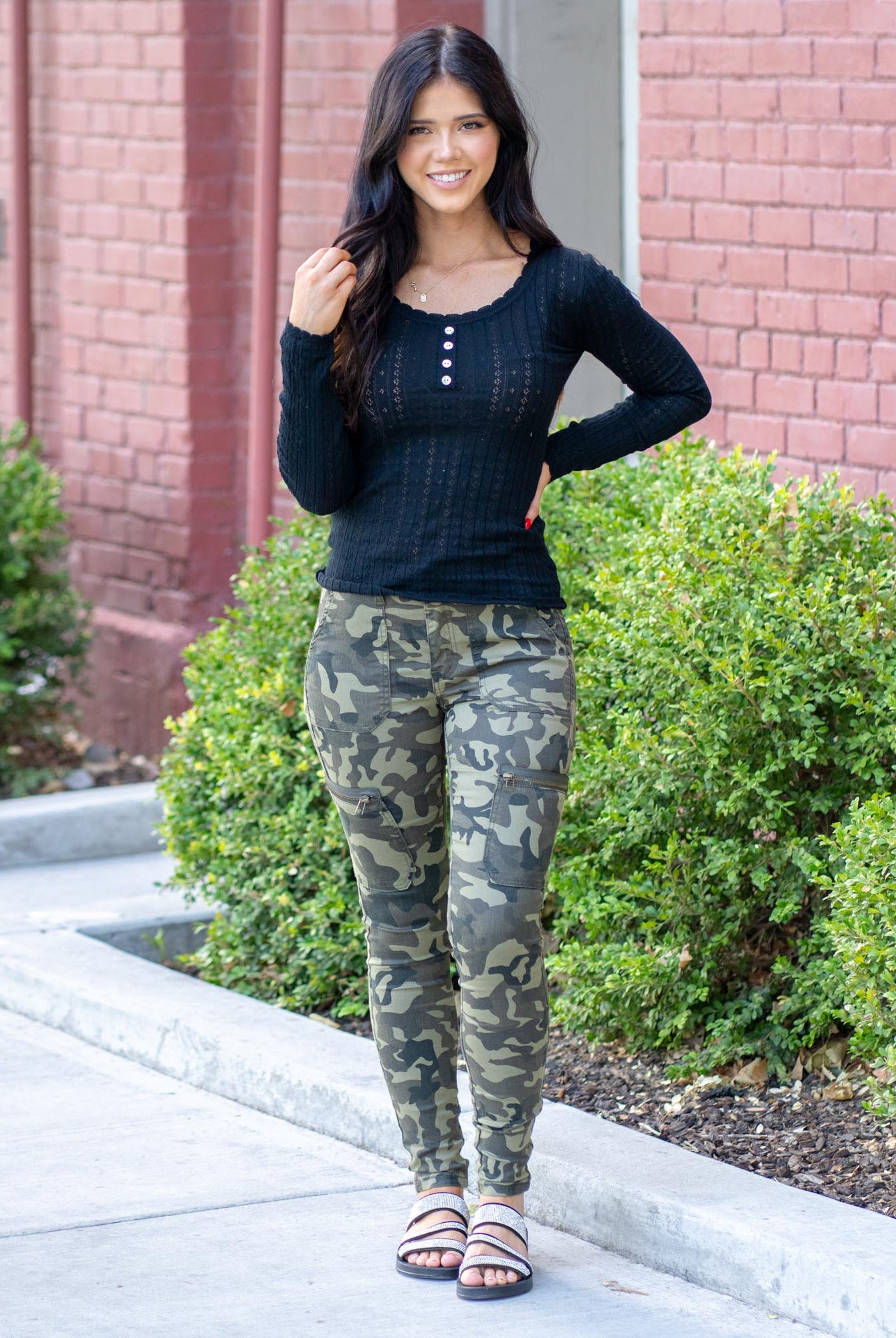 Hem & Thread Dusty Olive Camo Baseball Tee