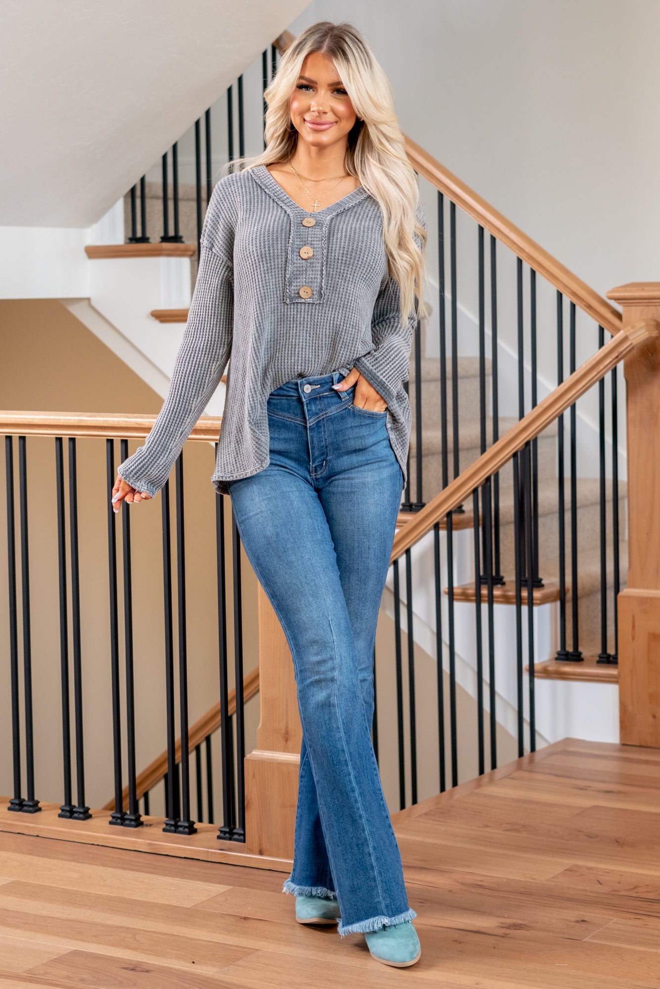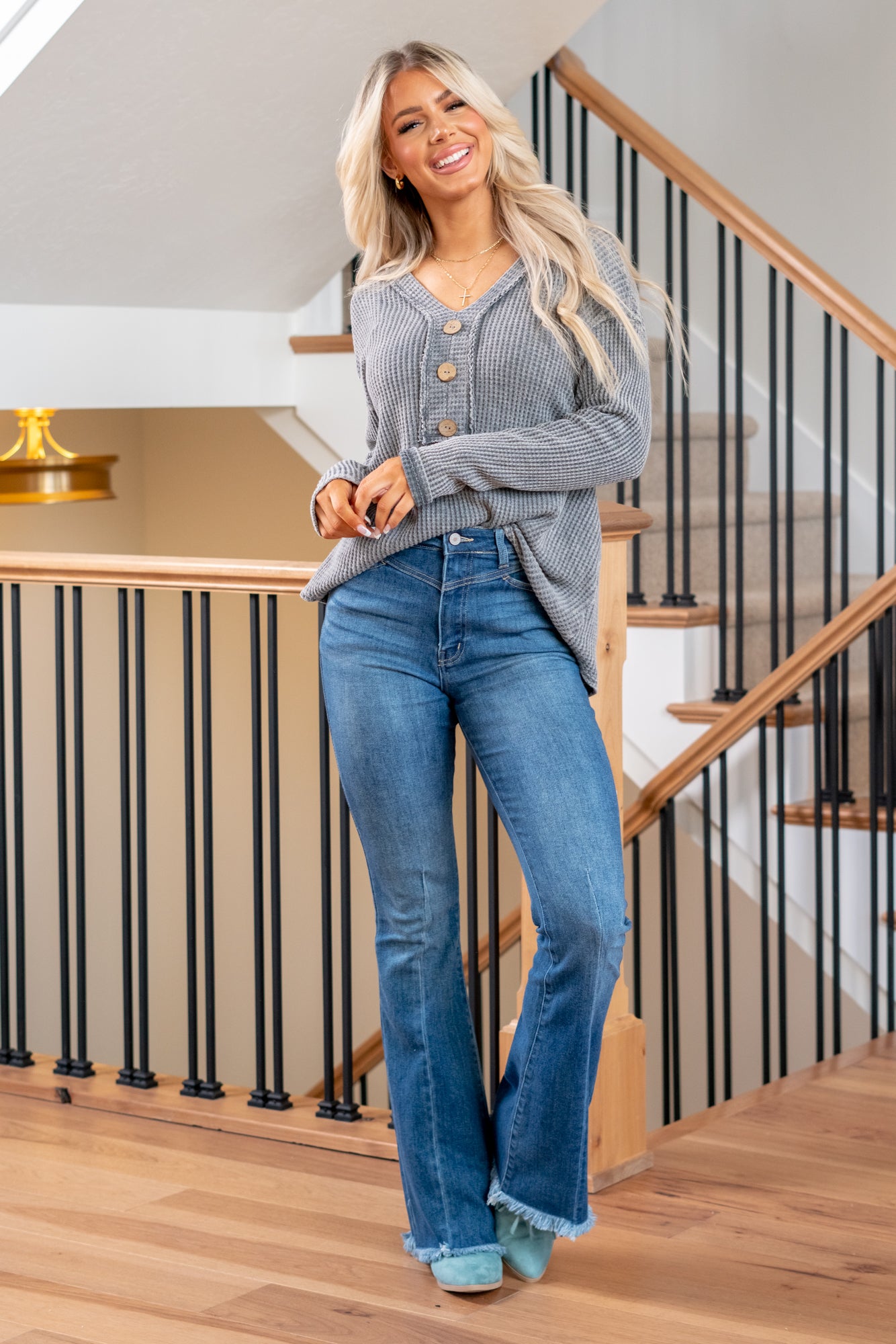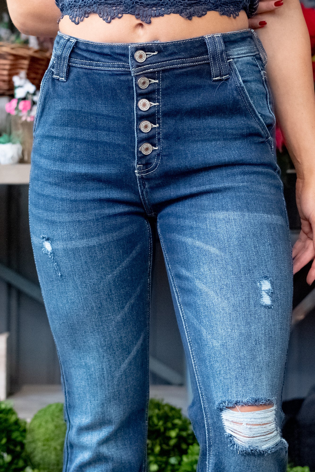 KanCan Sage High Rise Button Fly Flare Jeans Dark Blue Wash