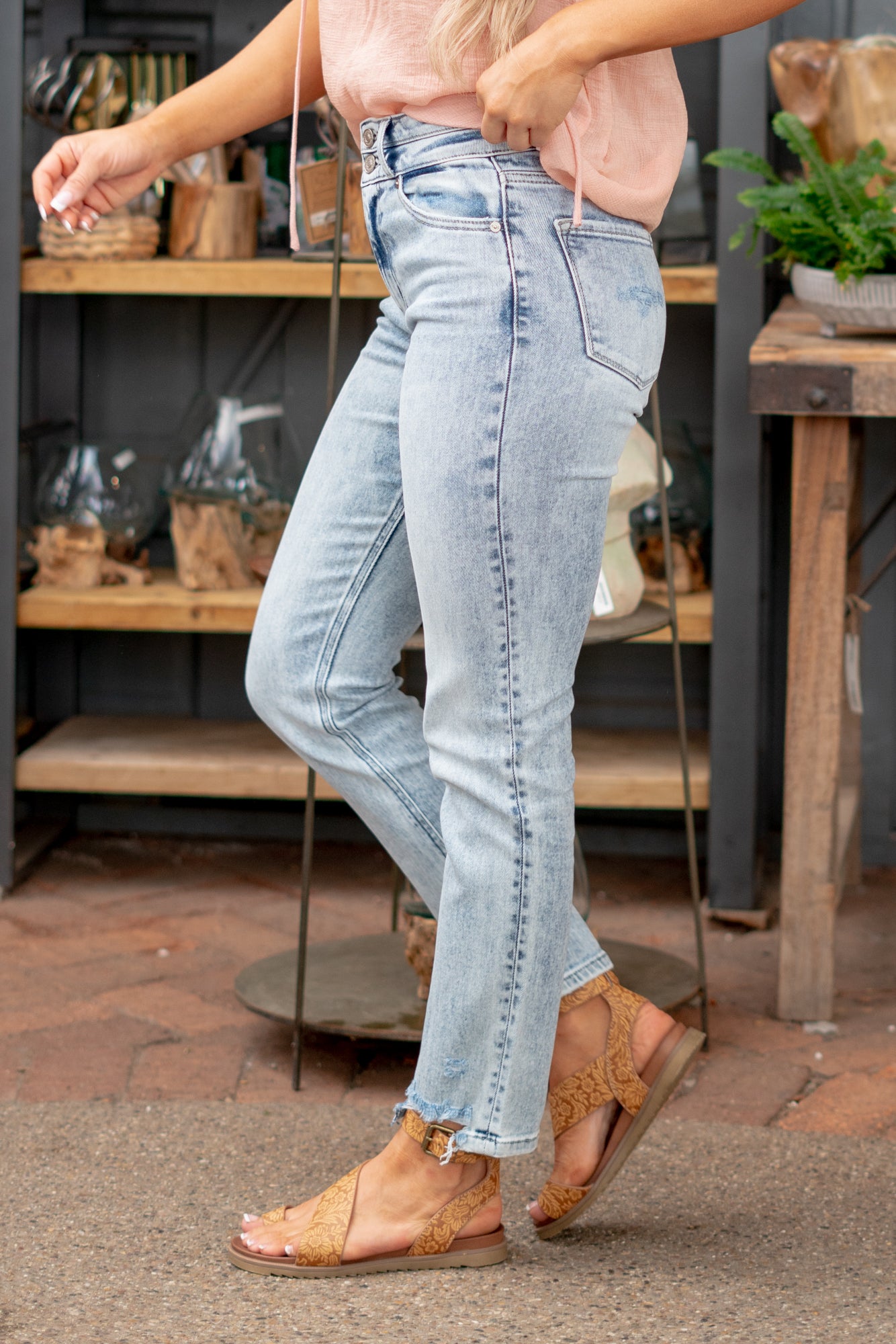 Every wardrobe needs a pair of well-fitted slim straight jeans, and ours is here to redefine your style game. These timeless denim wonders feature whiskering, fading, and slight distressing details near the hemline, giving them a touch of character. The double-button closure adds a chic element, while the classic 5-pocket design ensures both style and functionality. Dress them up or down, these jeans are the epitome of versatility, making them an essential piece for creating a look that effortlessly adapts to any occasion.