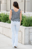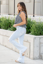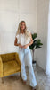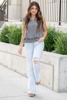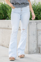 Elevate your denim collection with our Classic Flared Jeans featuring knee destruction and a tattered hem. These jeans effortlessly blend edgy and chic, giving you a tattered look that makes a statement. Sitting right at the natural waistline, they gently taper down the thigh and then flare out at the calf, ensuring a flattering silhouette. Crafted from soft, stretch denim, these jeans provide comfort while retaining their shape. With a classic five-pocket design and a four-button front closure, they are the perfect mix of style and functionality.