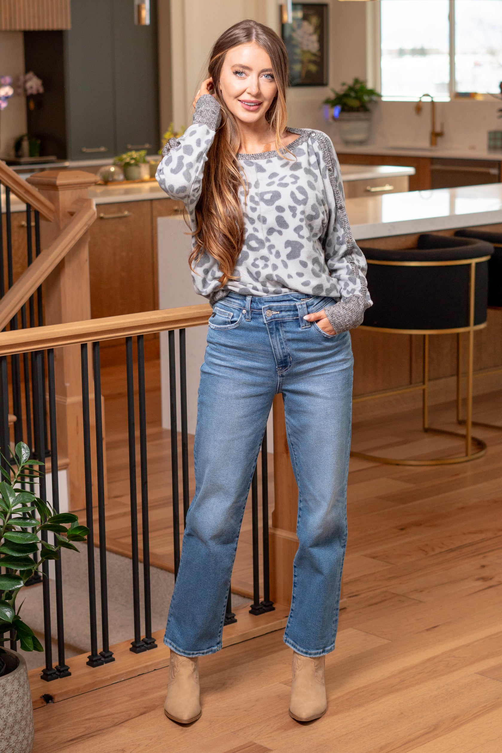 Plus Size Presley Ann Mid Rise Button Fly Relaxed Skinny