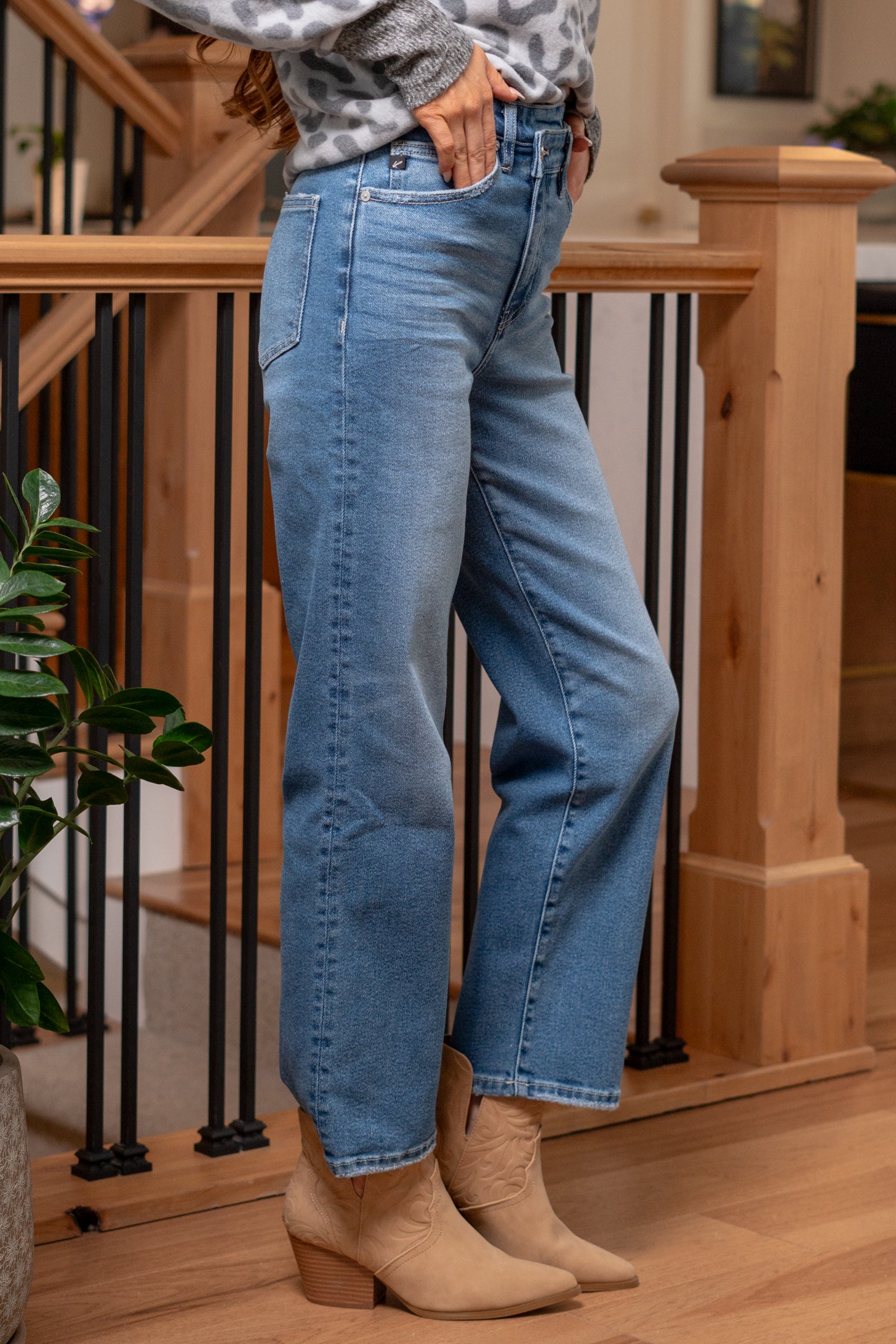 Ivy Grace High Rise Distressed Wide Leg Flare