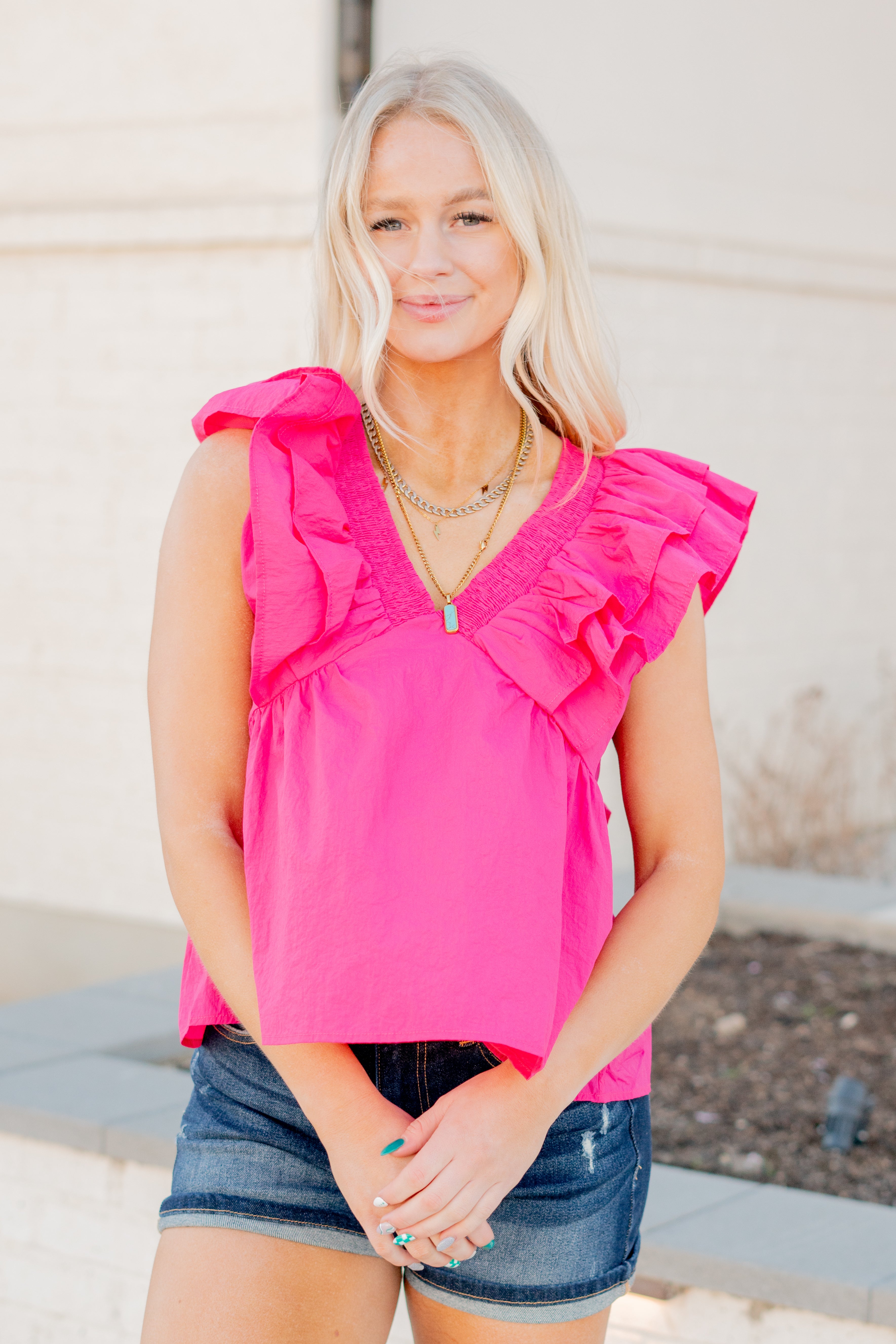 Sunny Sky Folded Front Hem Mid Rise Straight