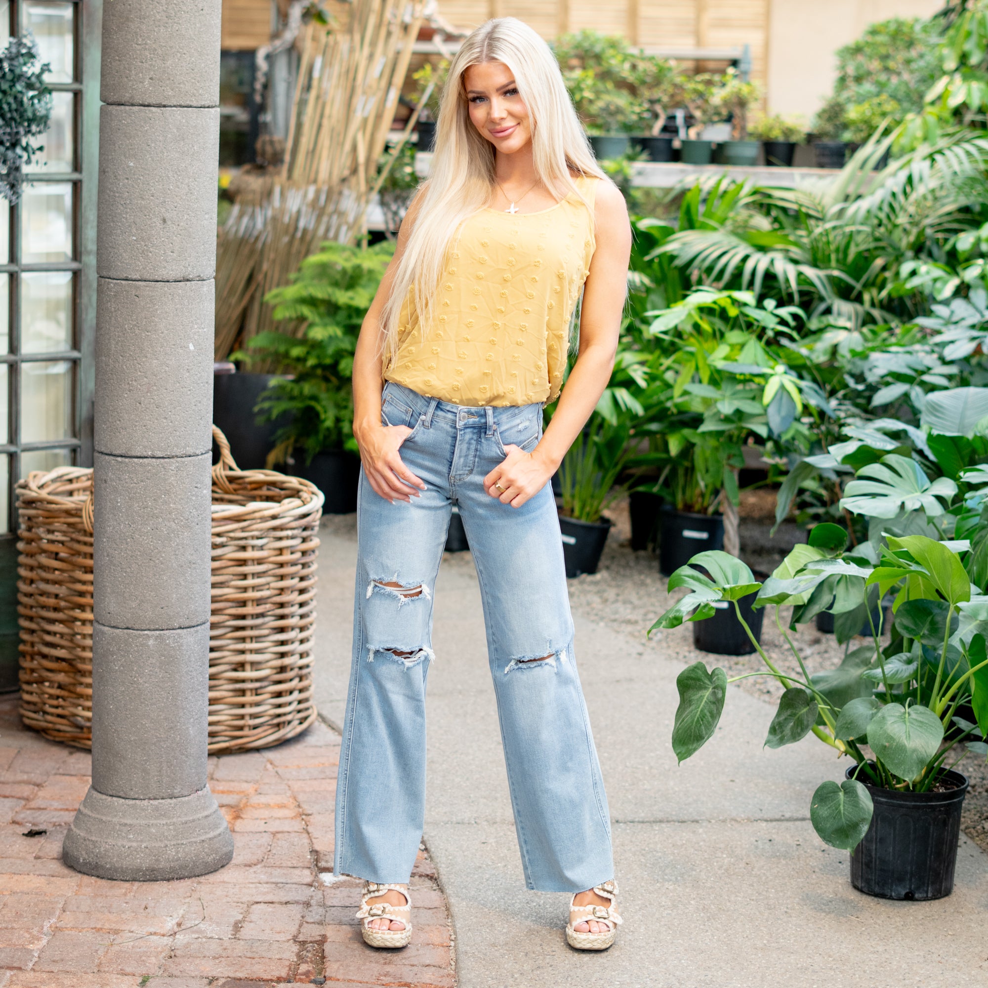 April Skies Mid Rise Tummy Control Top Wide Leg Regular & Plus Sizes