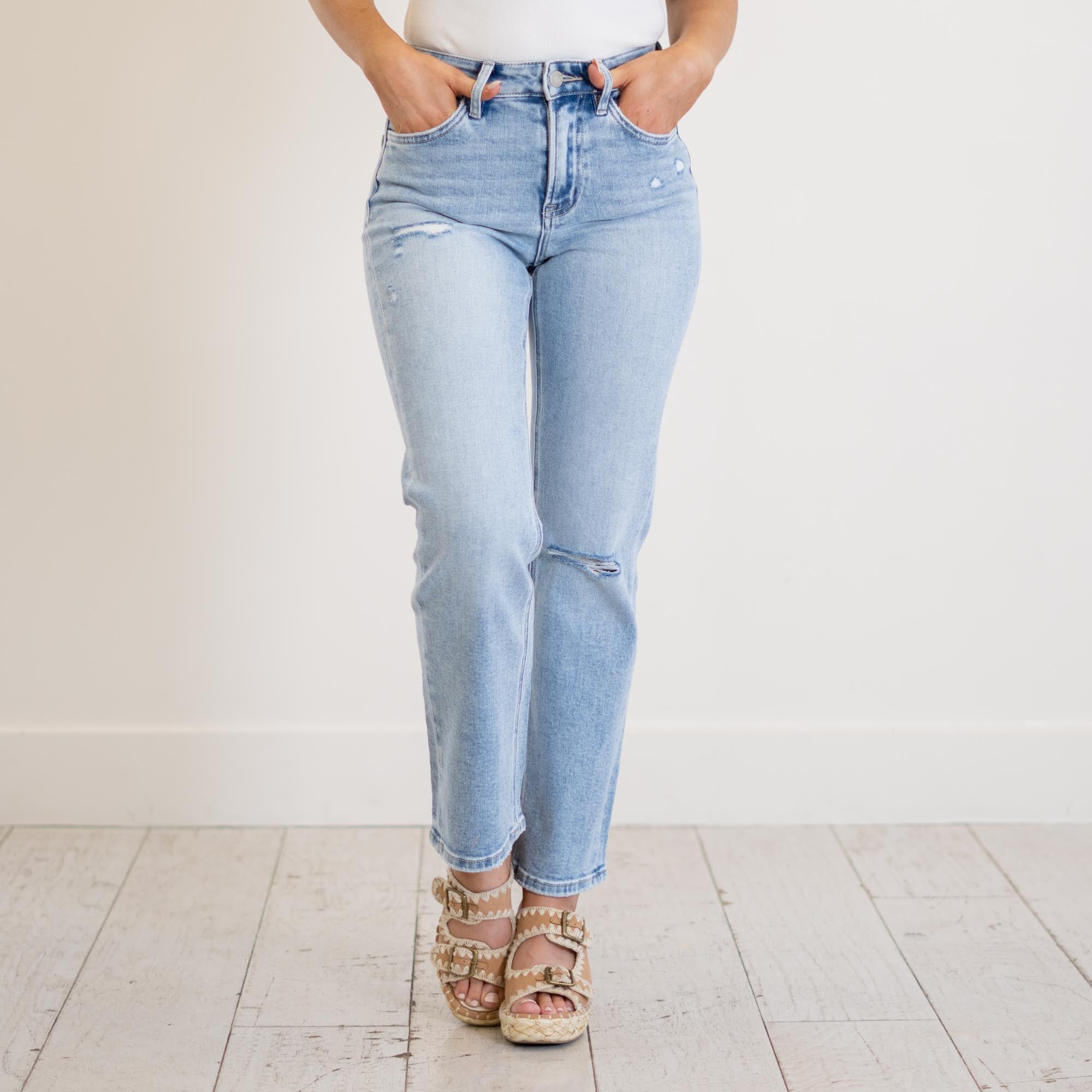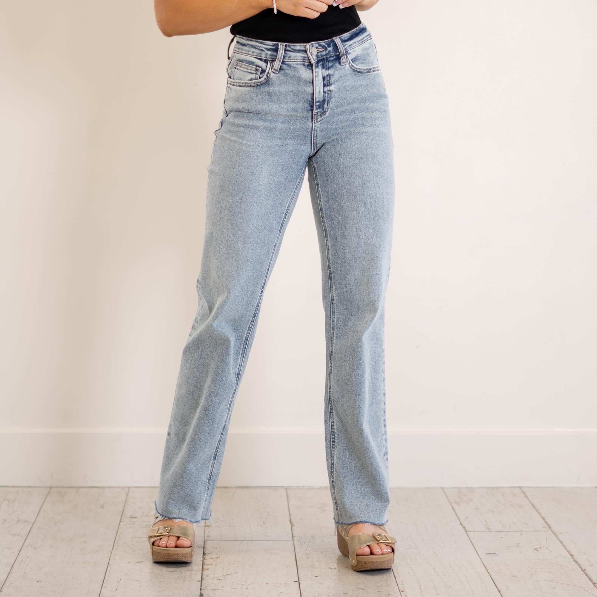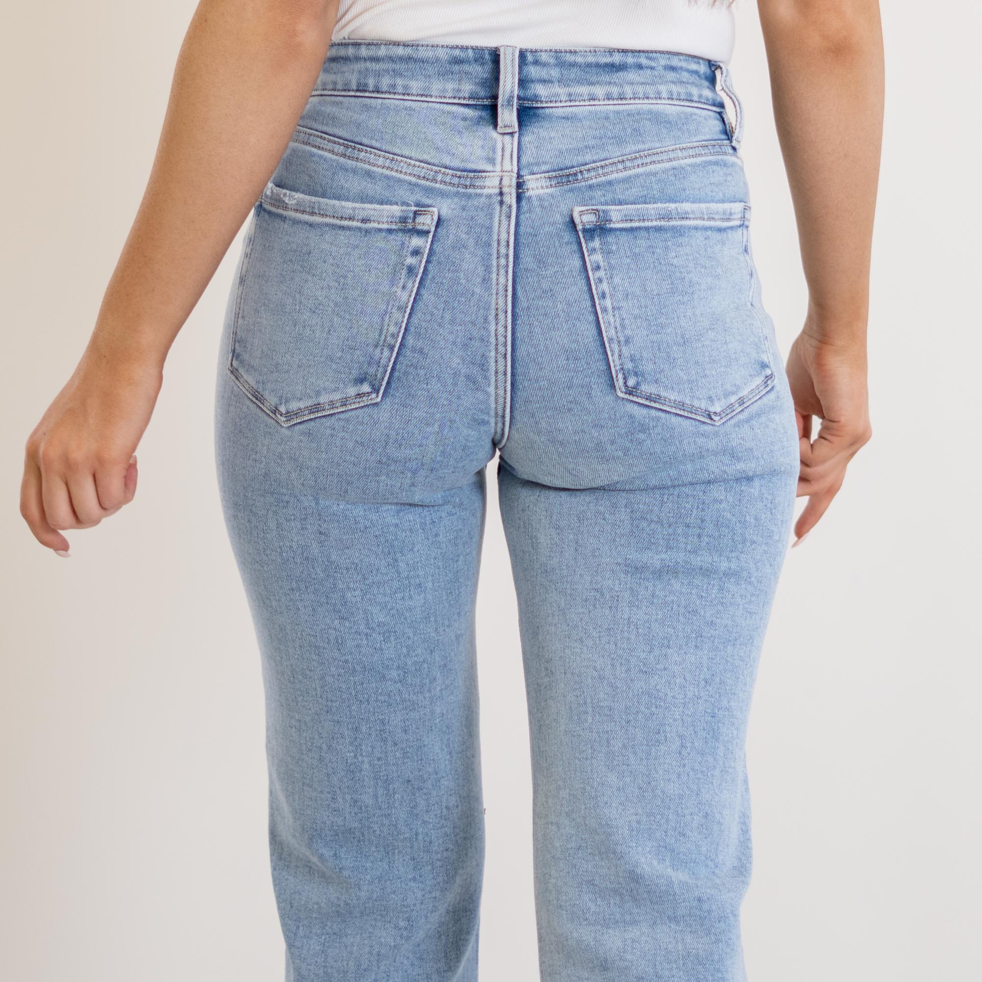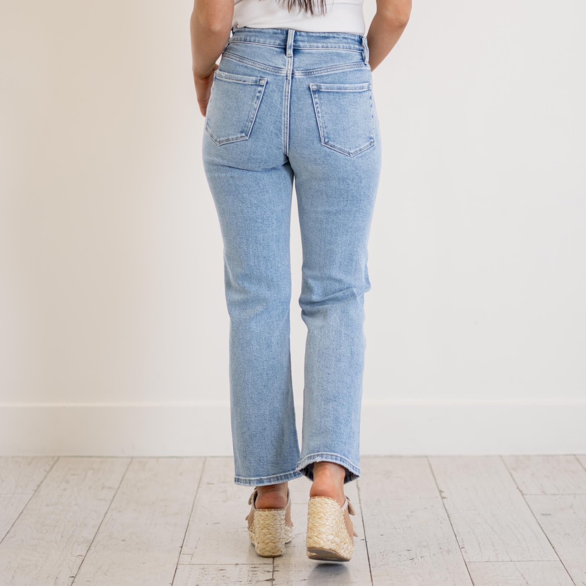 VERVET Ethereal High Rise Light Wash Ankle Straight Jeans Light Blue Wash