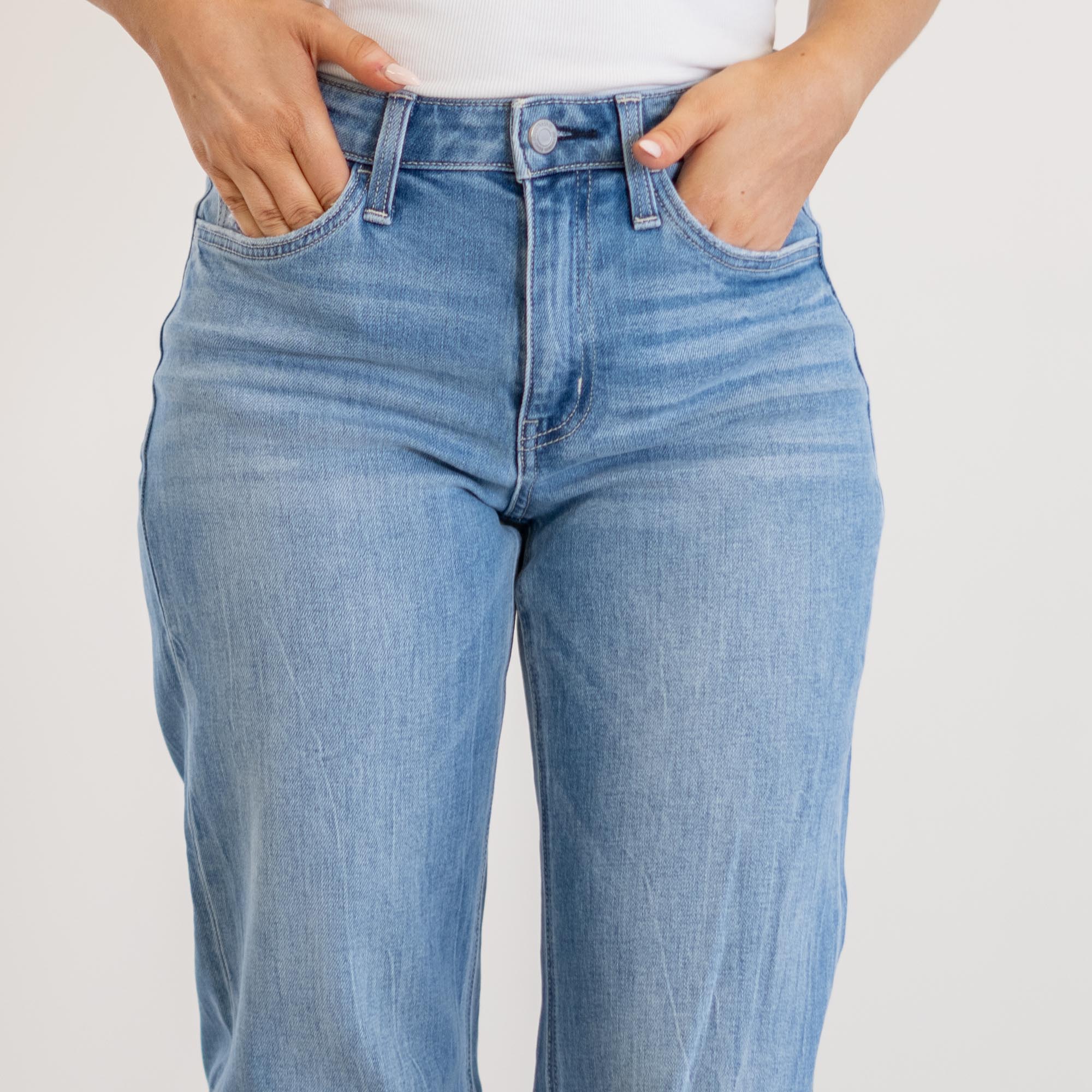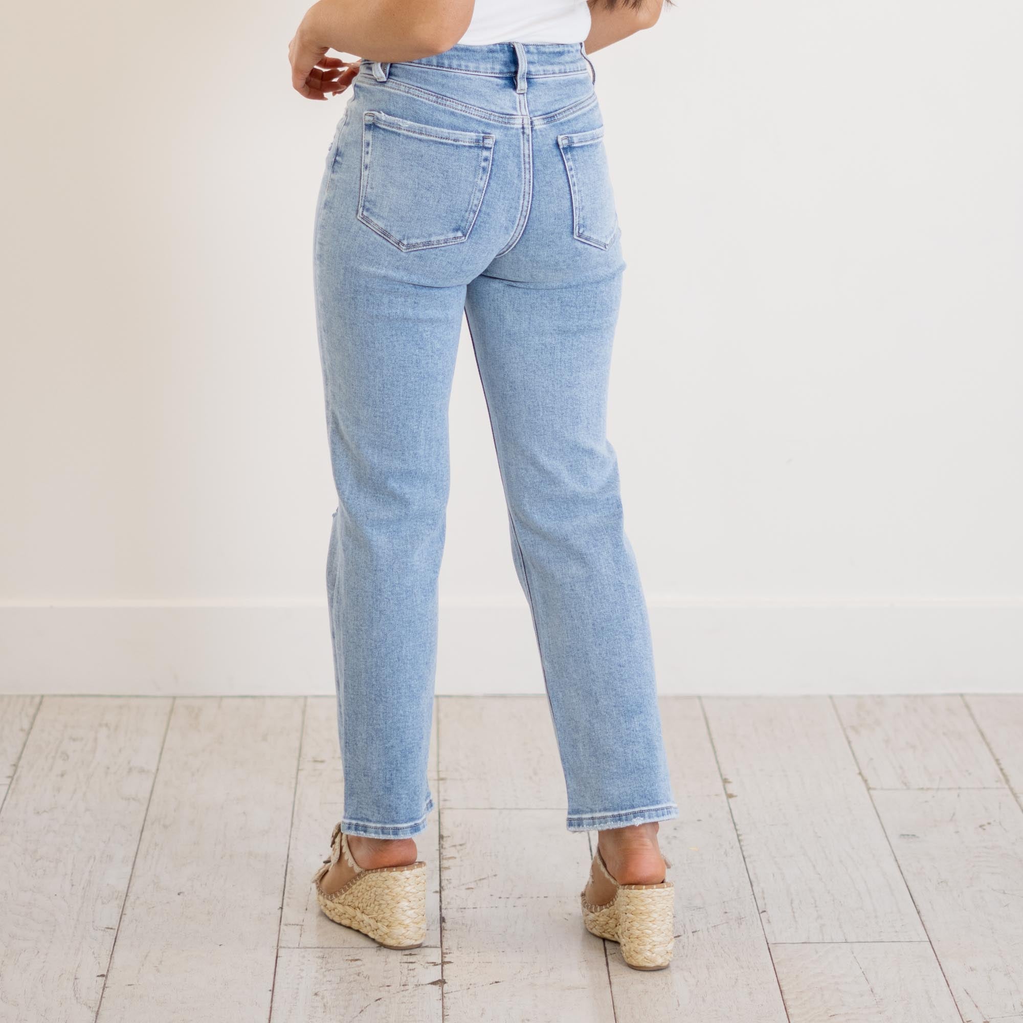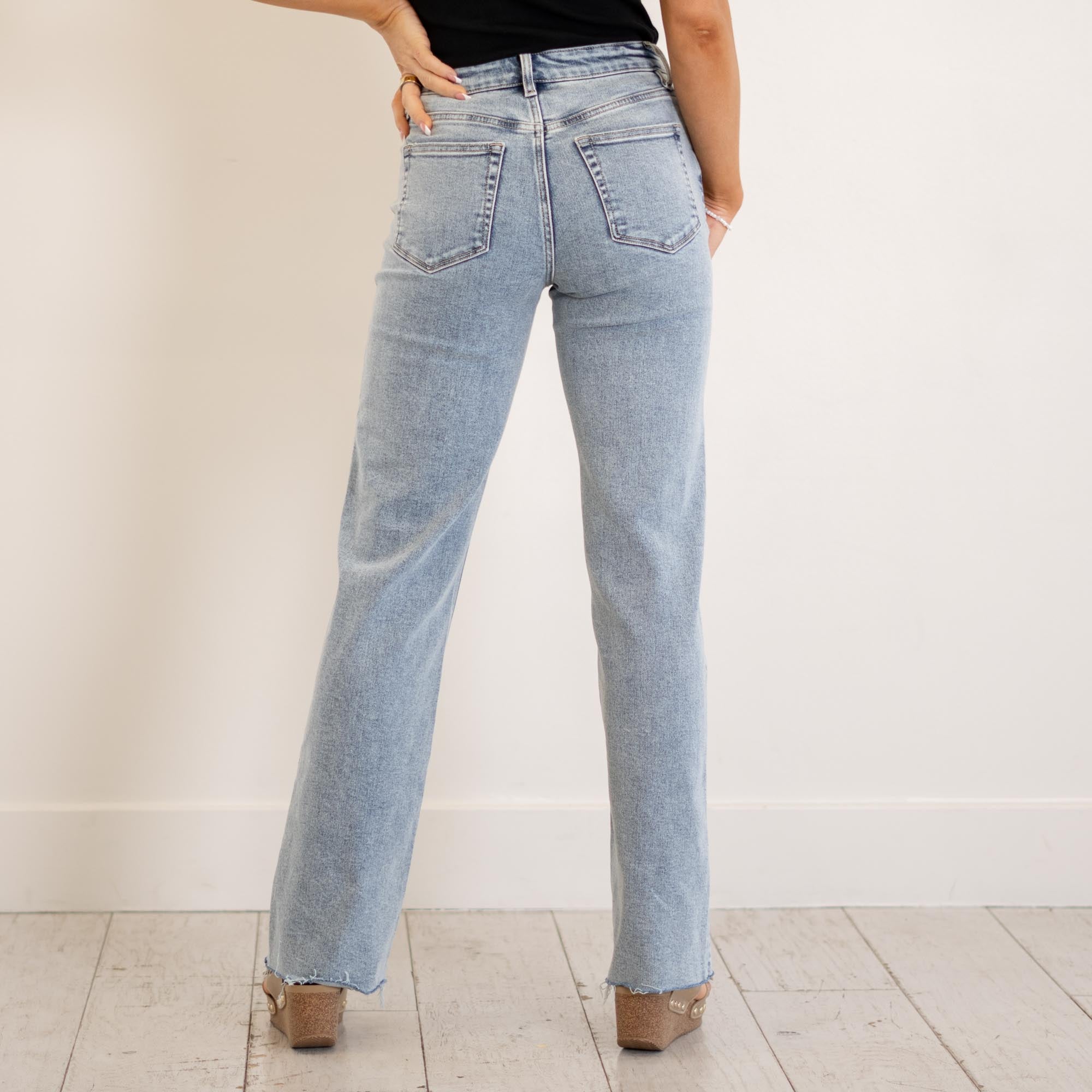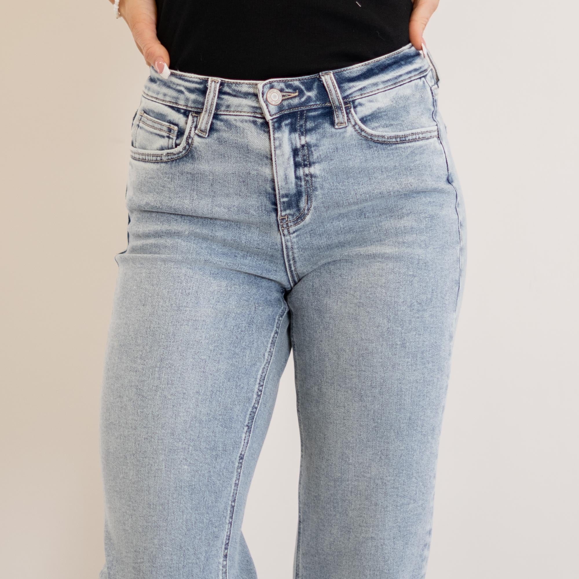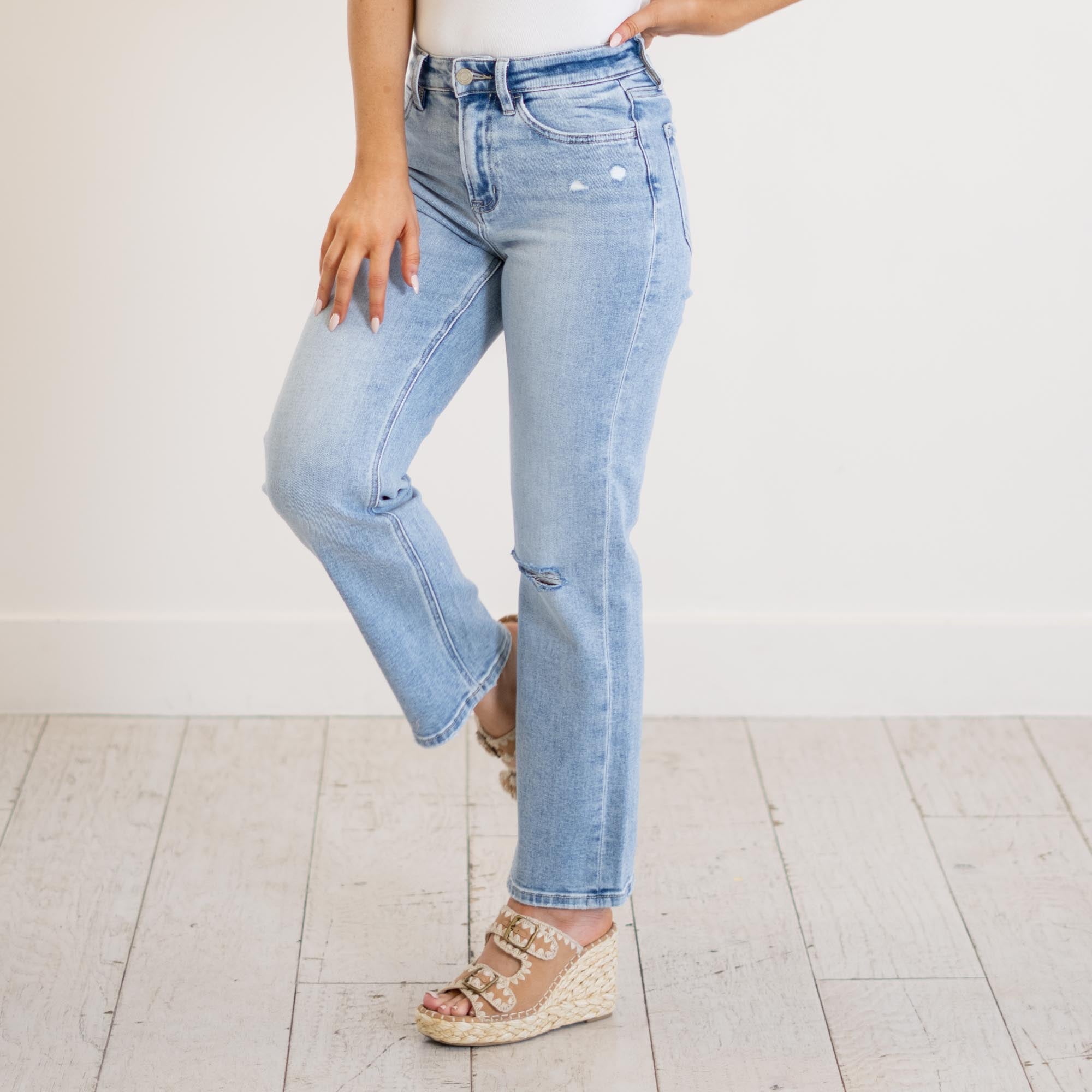 VERVET Ethereal High Rise Light Wash Ankle Straight Jeans Light Blue Wash
