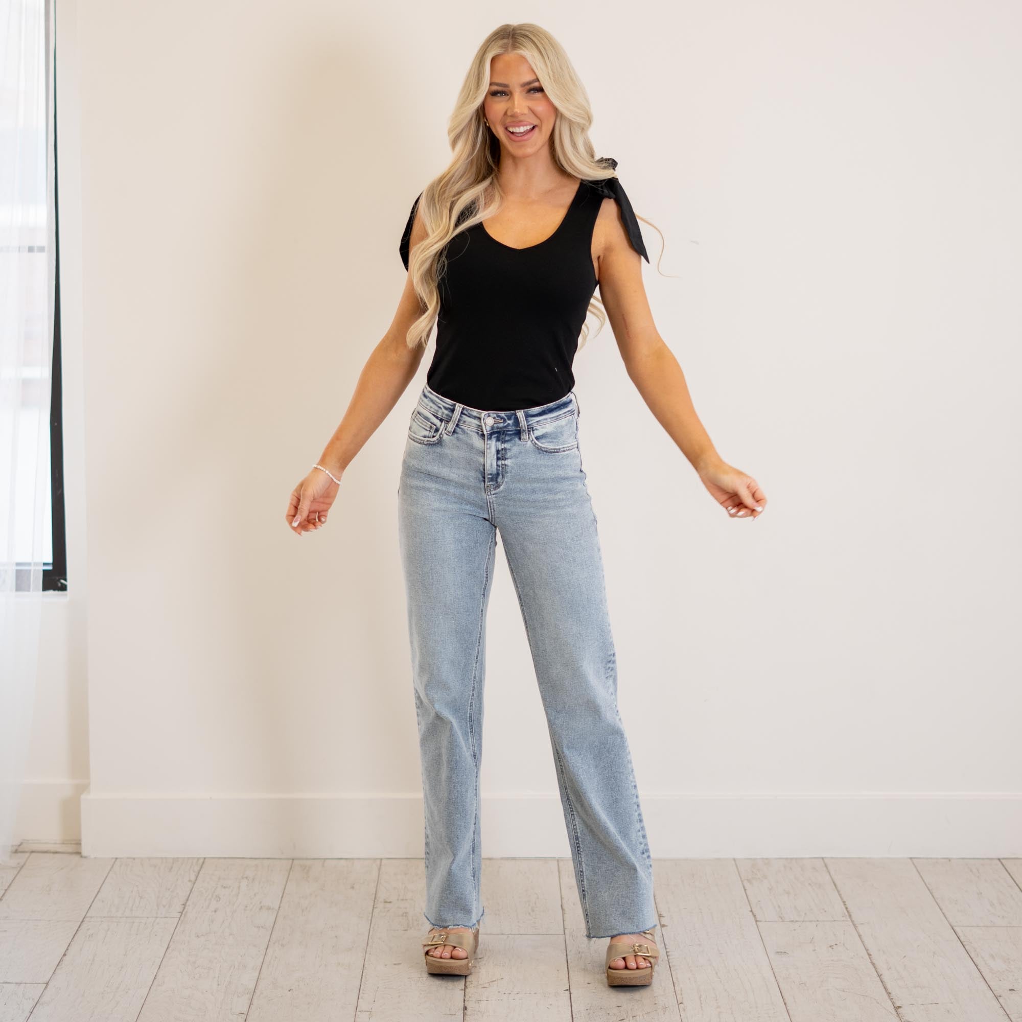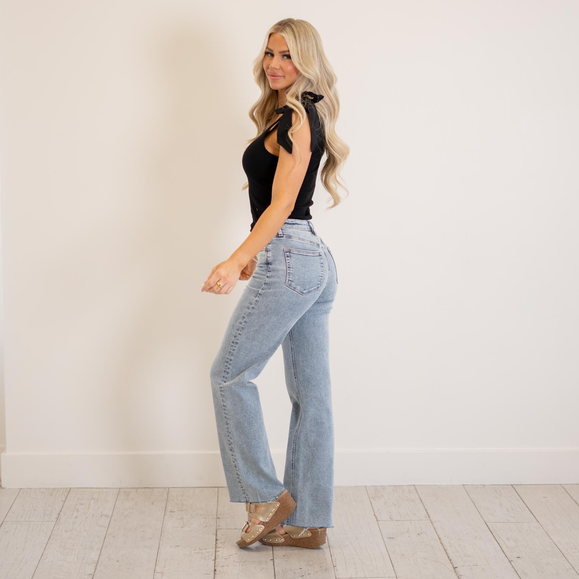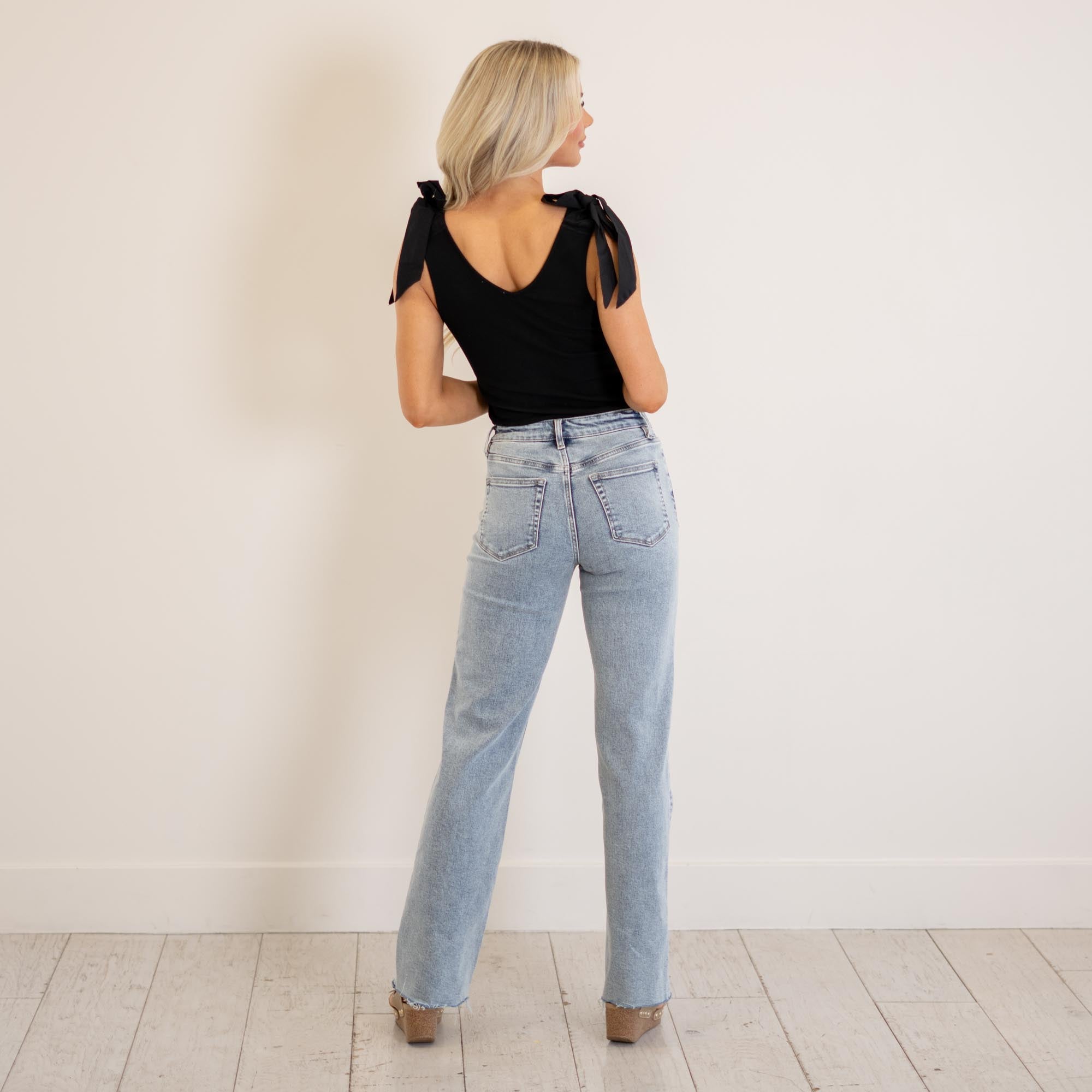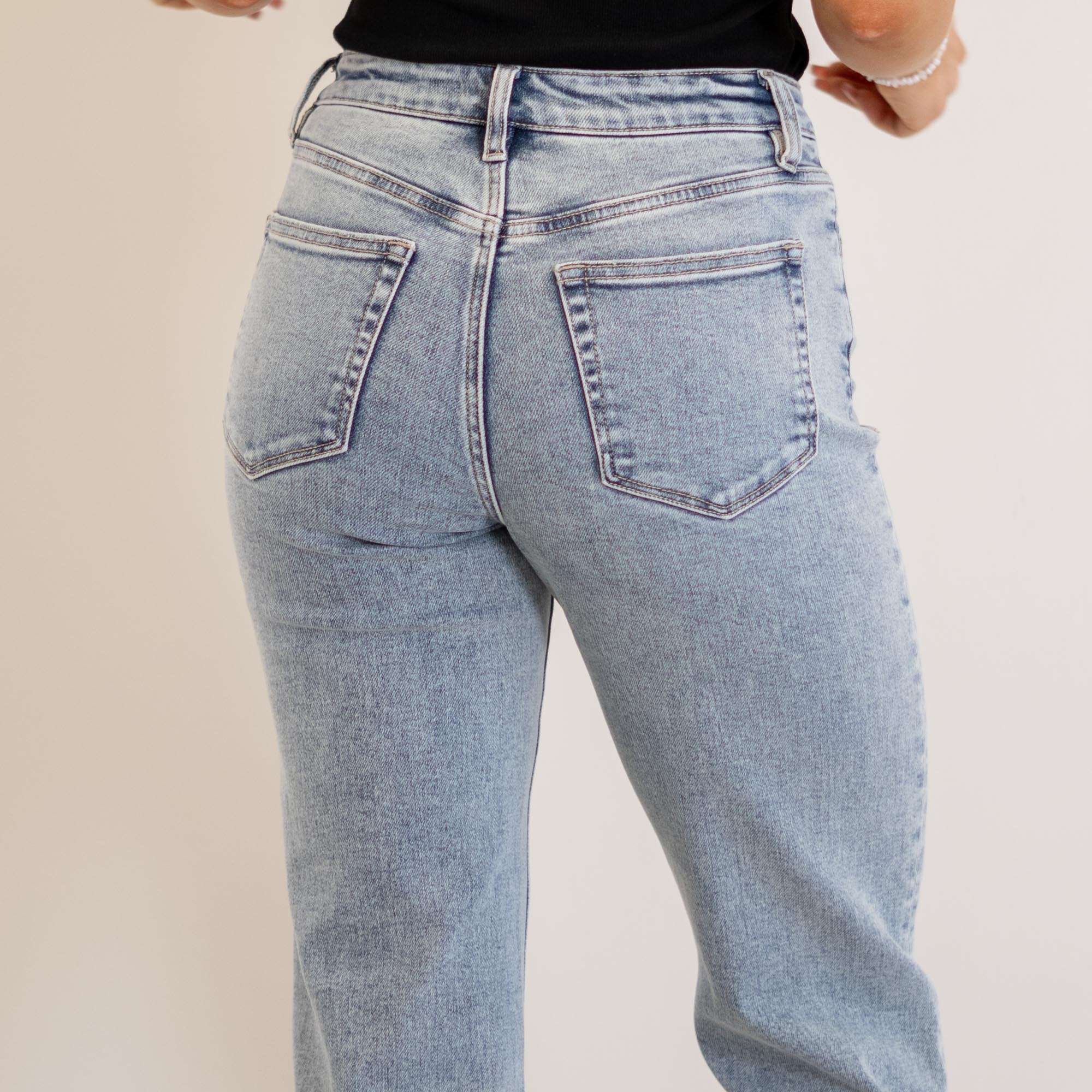 VERVET Ethereal High Rise Light Wash Ankle Straight Jeans Light Blue Wash