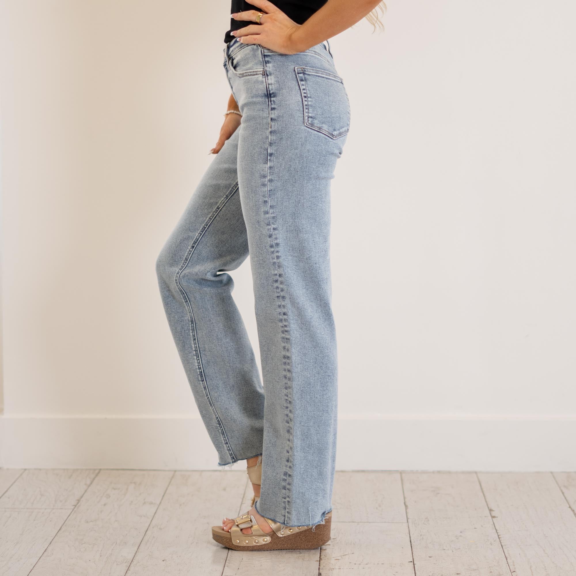 VERVET Insightful High Rise Raw Hem Slim Wide Jeans Light Blue