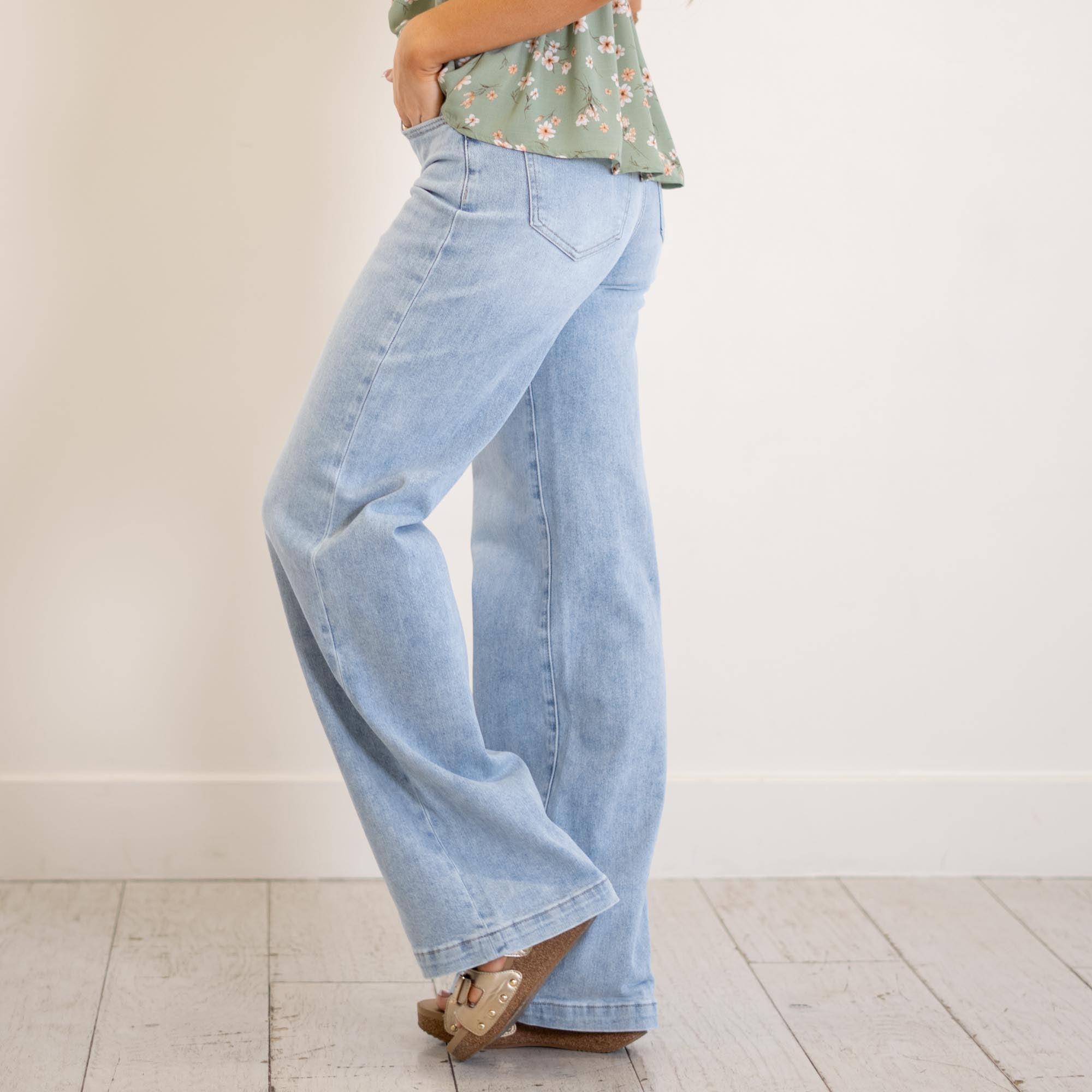 VERVET Optimistic High Rise Full Length Wide Leg Jeans