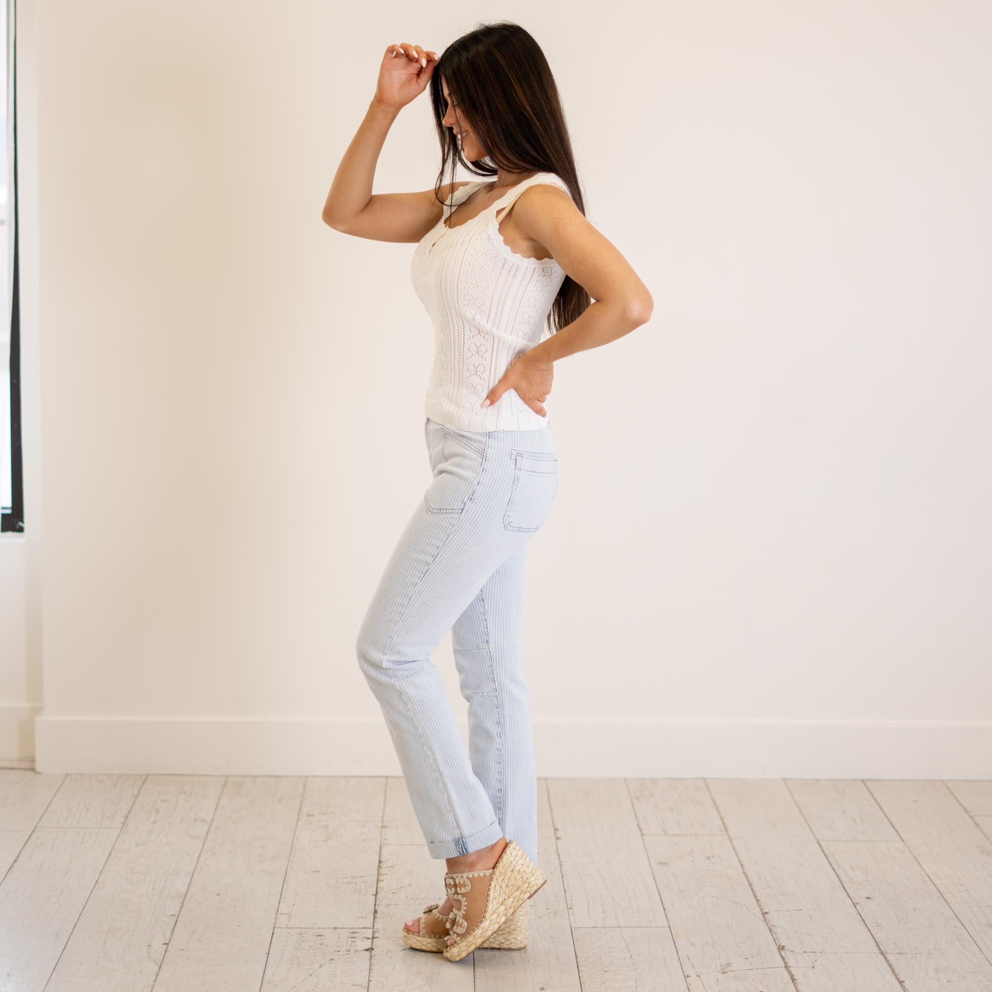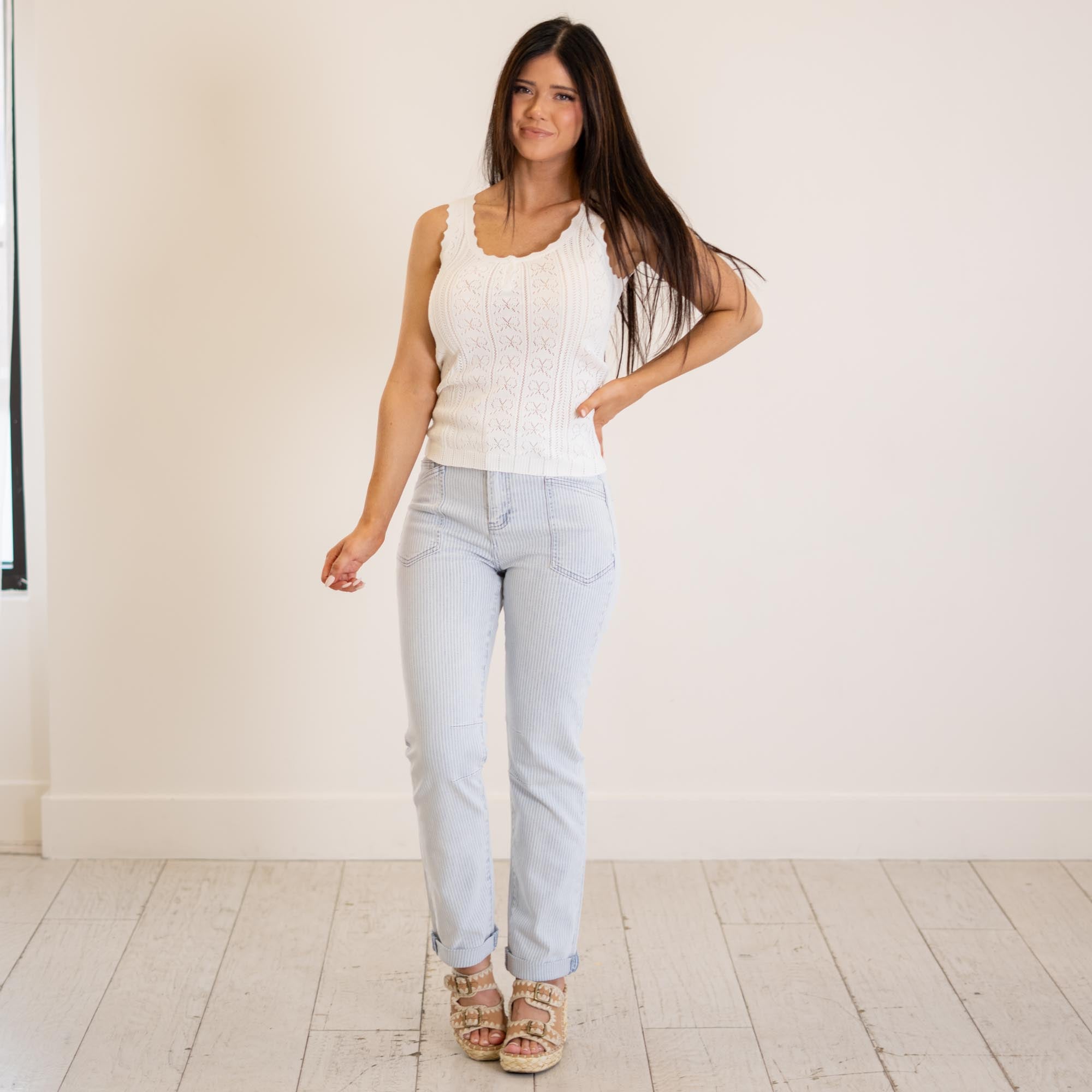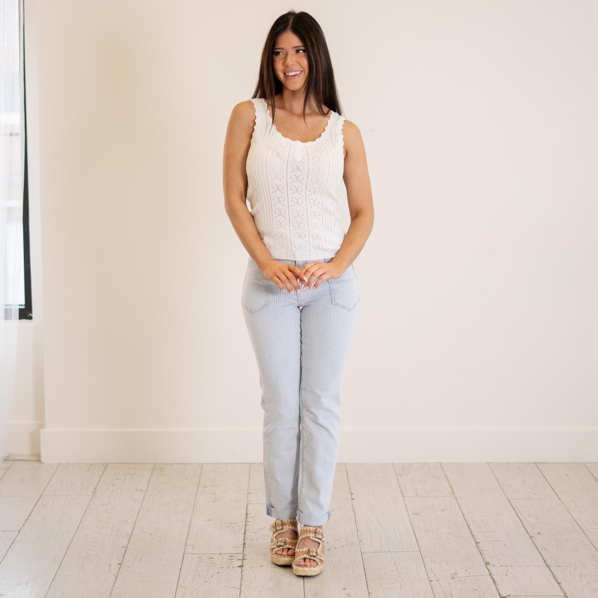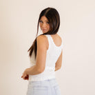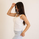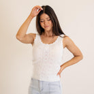 Hem & Thread Ribbon Lace Pointelle Tank White