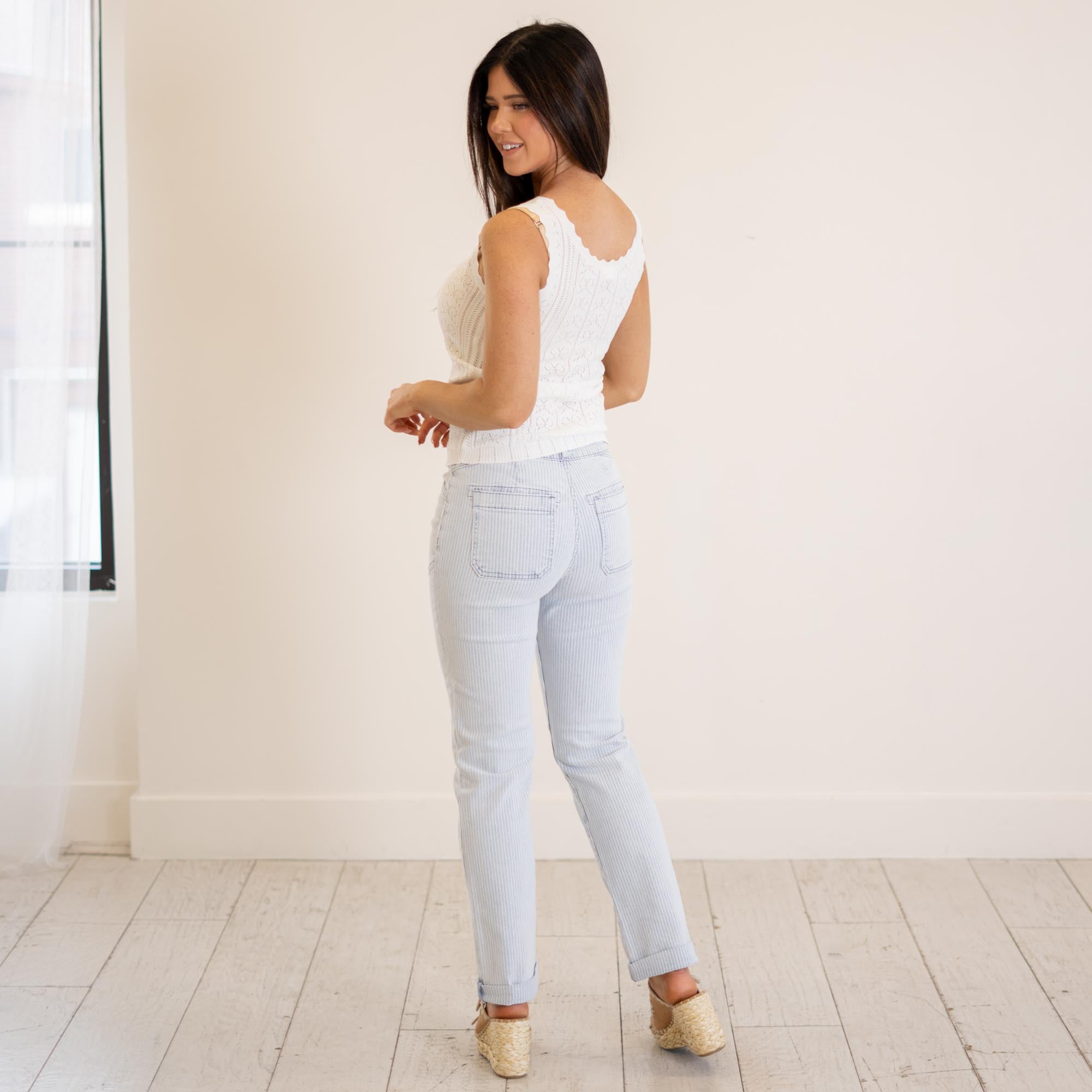 Delicate, soft, and effortlessly feminine—this pointelle knit tank is all about the details. Featuring a flattering scoop neckline with ribbon lace trim, it adds a romantic touch to an everyday essential. The breathable pointelle knit fabric offers lightweight comfort with a subtle textured finish, while the fitted silhouette makes it perfect for layering or wearing on its own. Pair it with your favorite denim or shorts for an easy, elevated look.