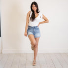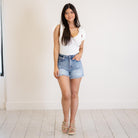 Your everyday go-to, perfected. The Danni High Rise Mom Shorts feature a flattering high-rise fit that hugs your waist while keeping a relaxed, easy feel through the hips.
