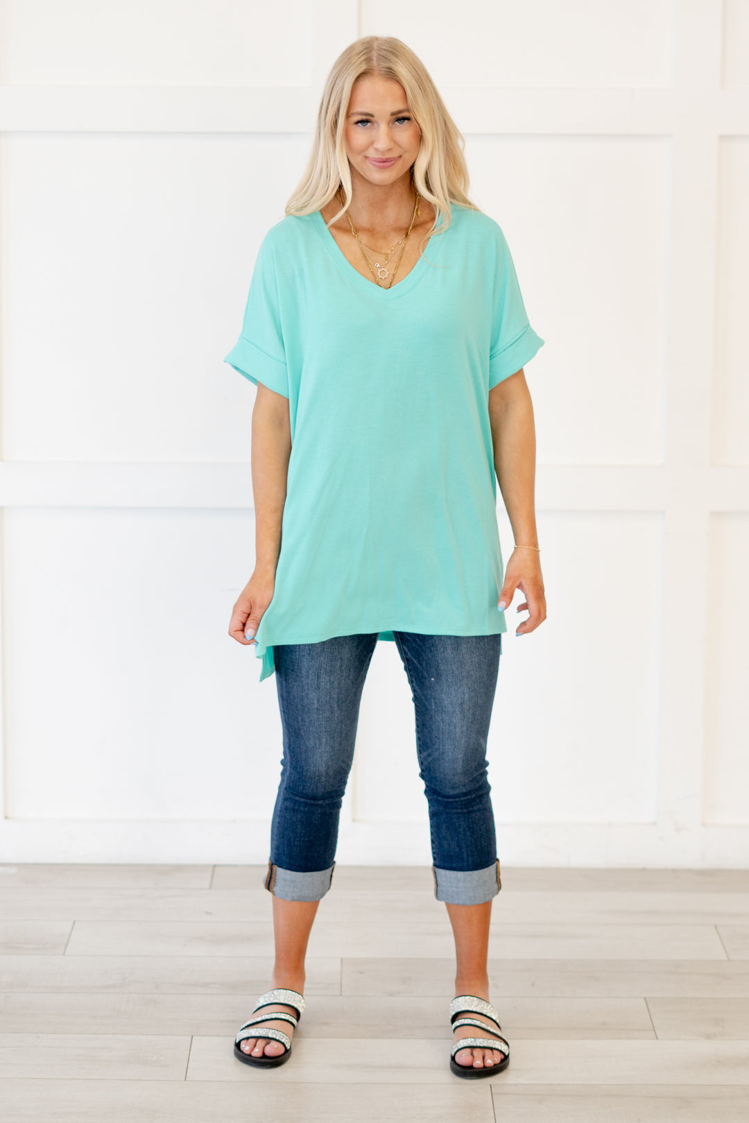 The absolutely perfect v neck tee with oversized folded sleeves.