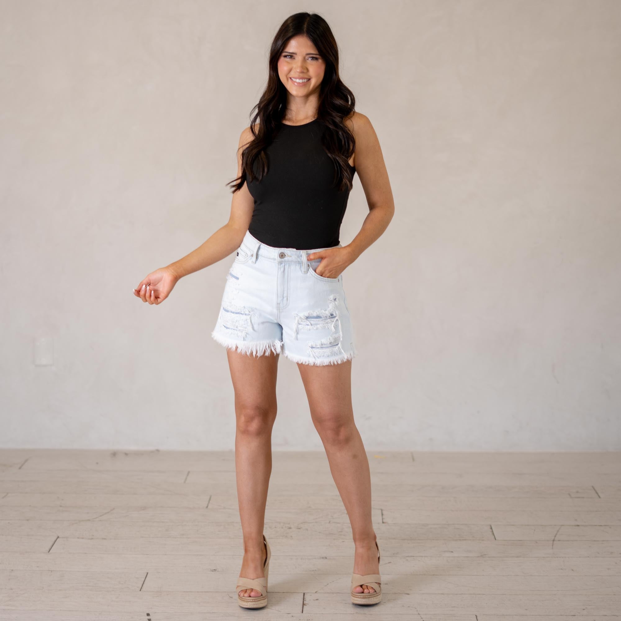 KanCan Rosie High Rise Shorts Light Blue