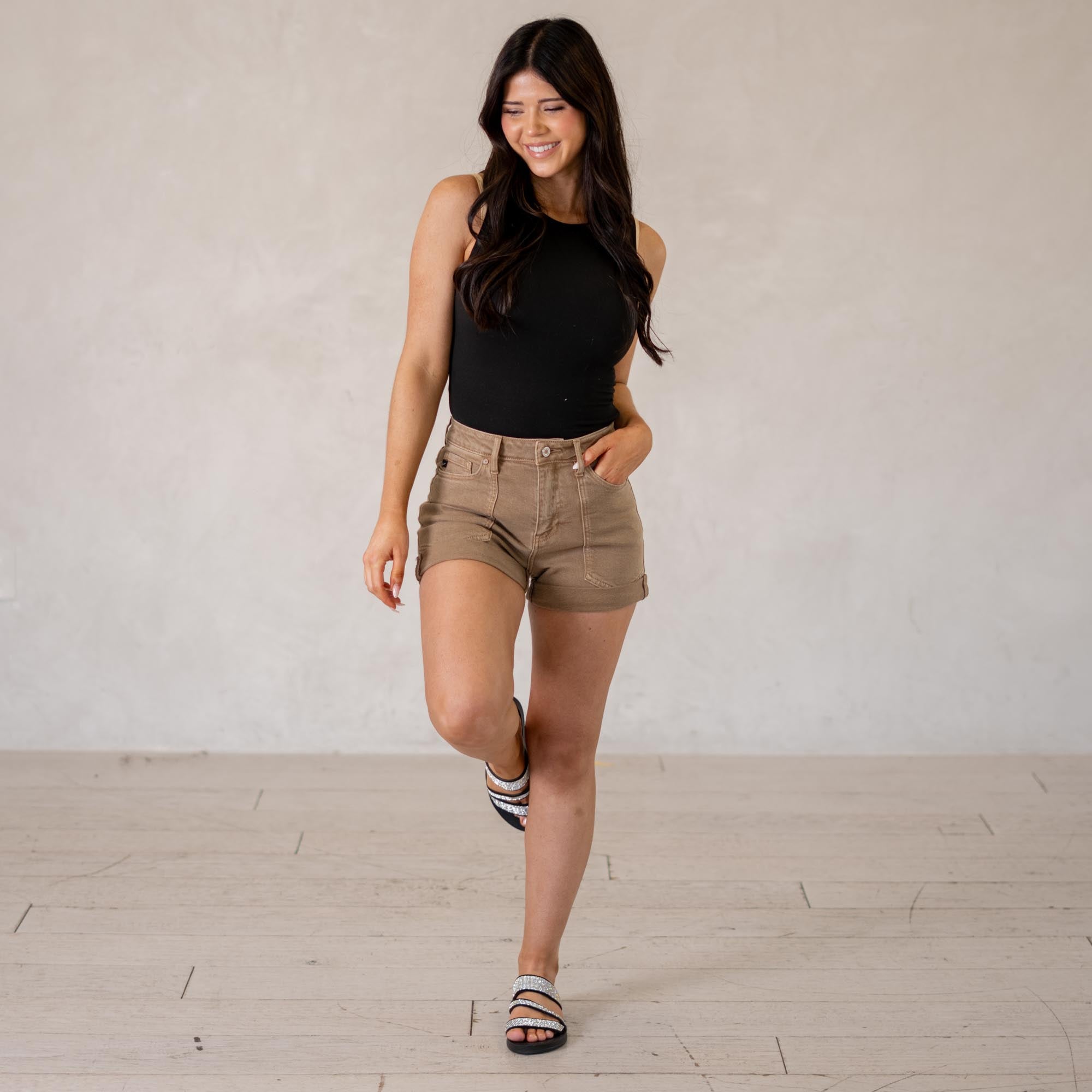 KanCan Clara High Rise Mom Shorts Comfort Stretch Denim
