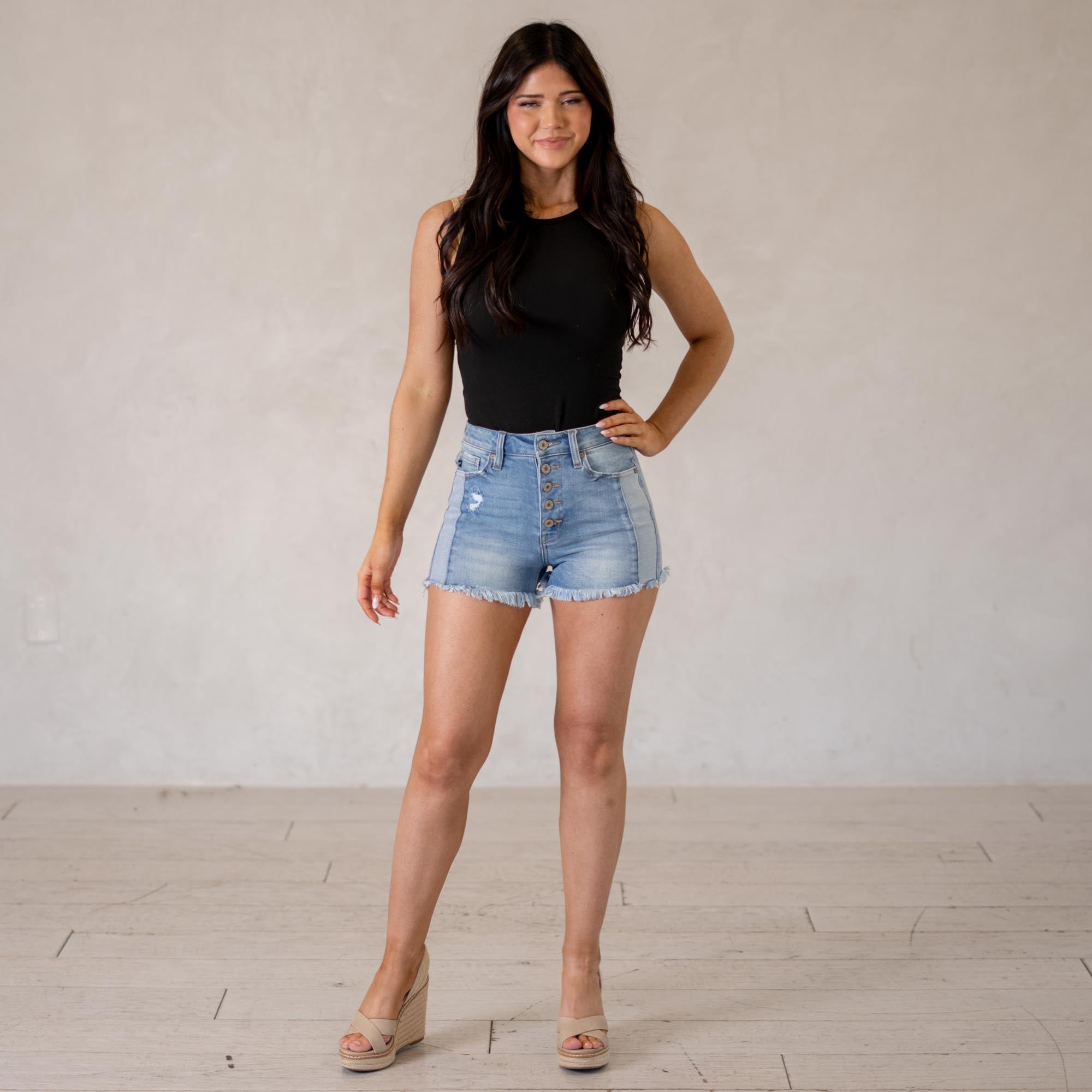 KanCan Tiffany High Rise Shorts Medium Blue