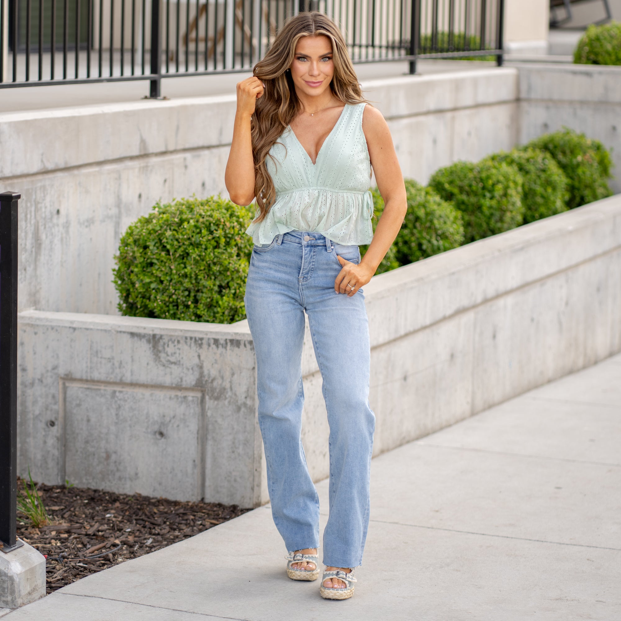 Sun Is Out High Rise Cuffed Straight Leg Regular & Plus Sizes
