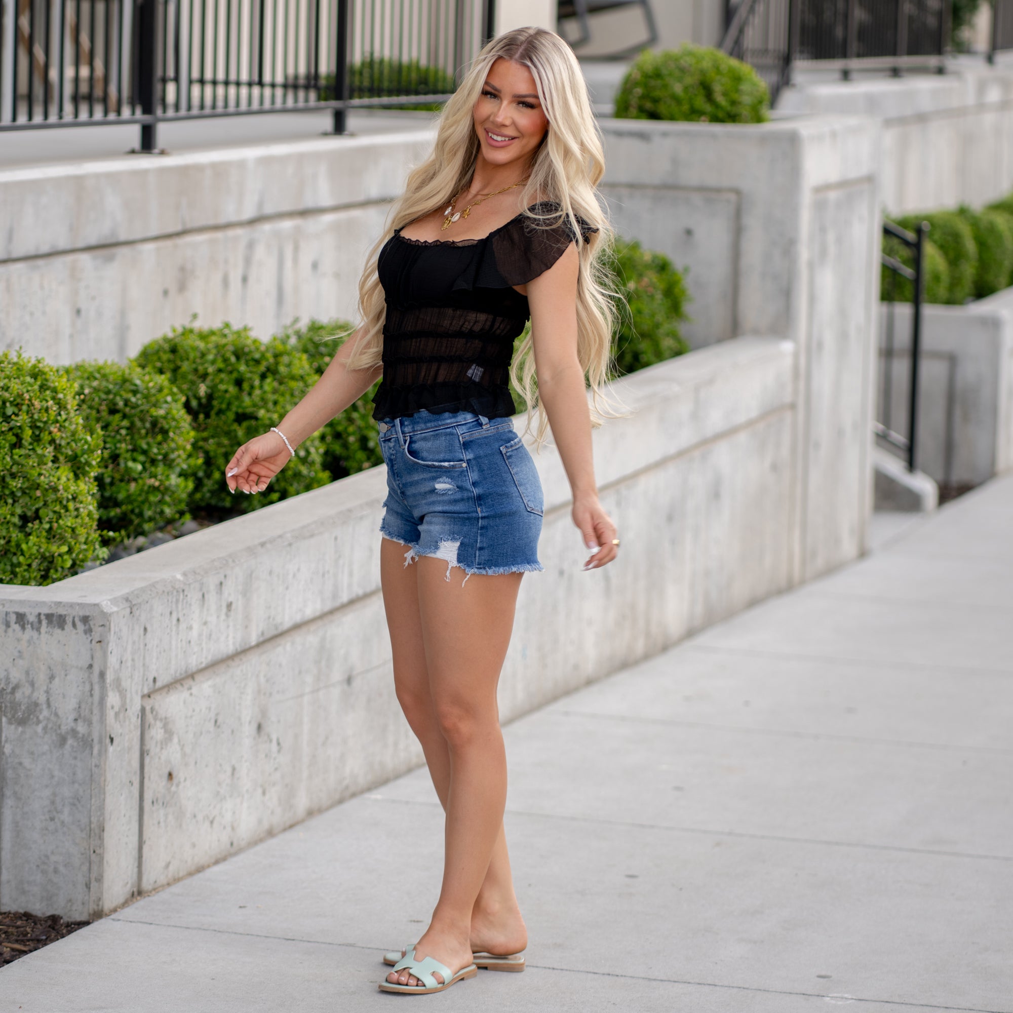 Judy Blue Scarlet High Rise Tummy Control Top Shorts Regular & Plus Sizes