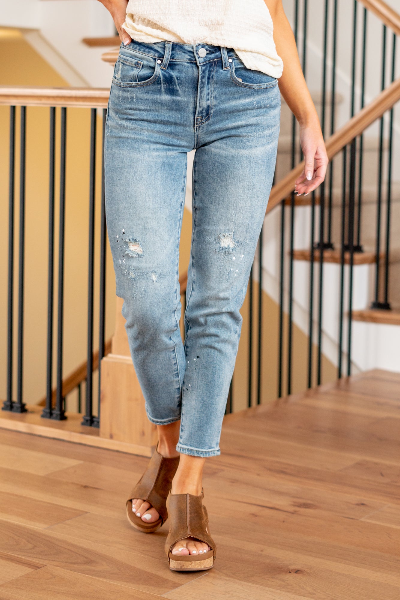 With a mid-rise, these jeans hit exactly the right spot on your waist, and spandex, these will stretch as you wear them. Pair with a graphic tee and tennies.