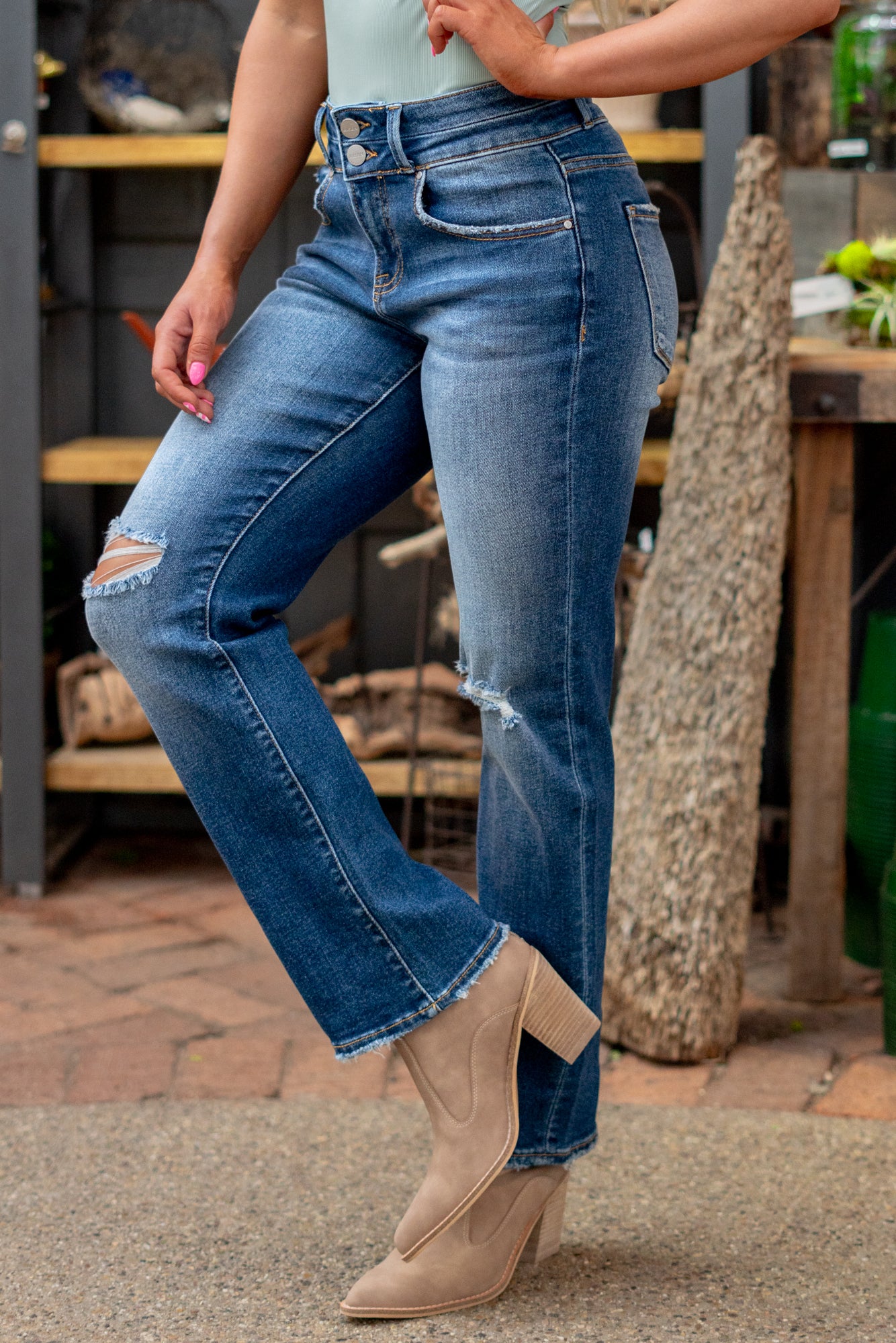 These are our High Rise Slim Straight Crop Jeans! These jeans offer classic style and comfort with a modern twist. Featuring a flattering high rise and slim straight fit, they're designed to hit at a stylish crop length, making them perfect for showcasing your favorite shoes. Whether you're out for brunch or a casual day of shopping, these jeans will keep you looking effortlessly chic.