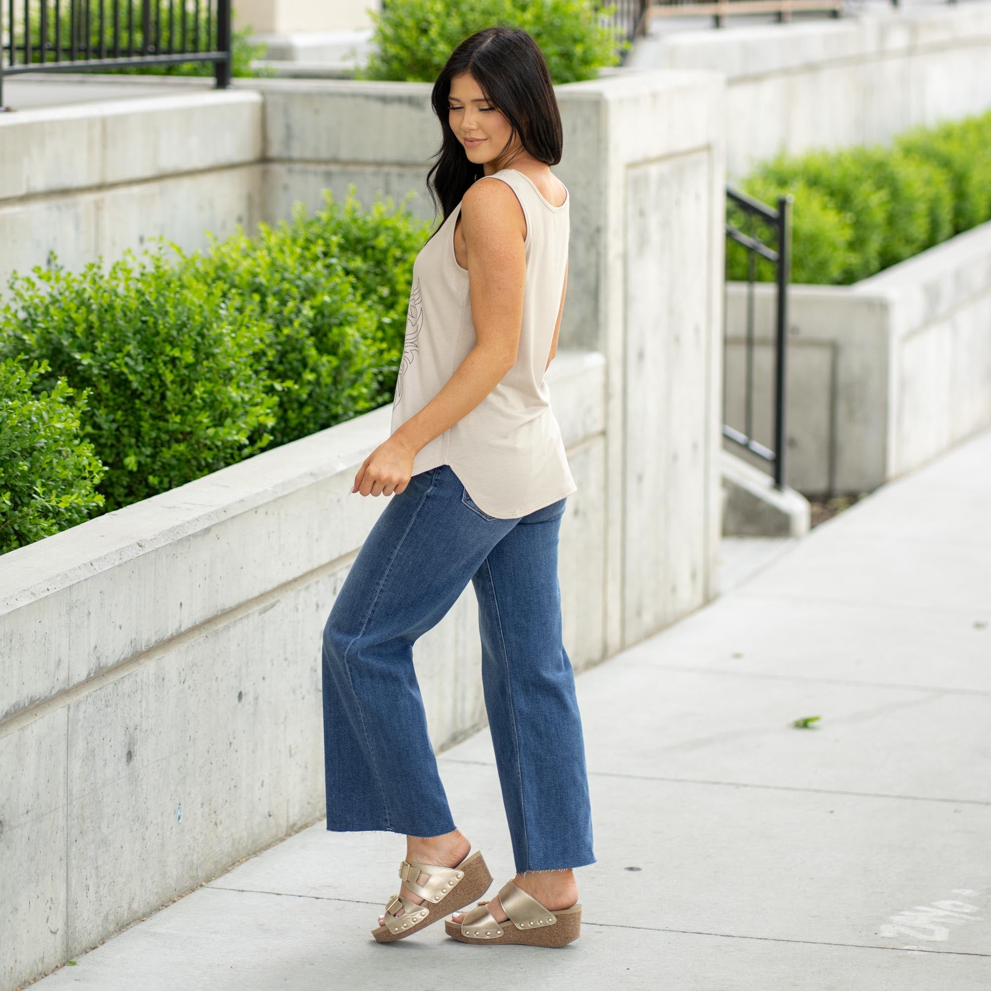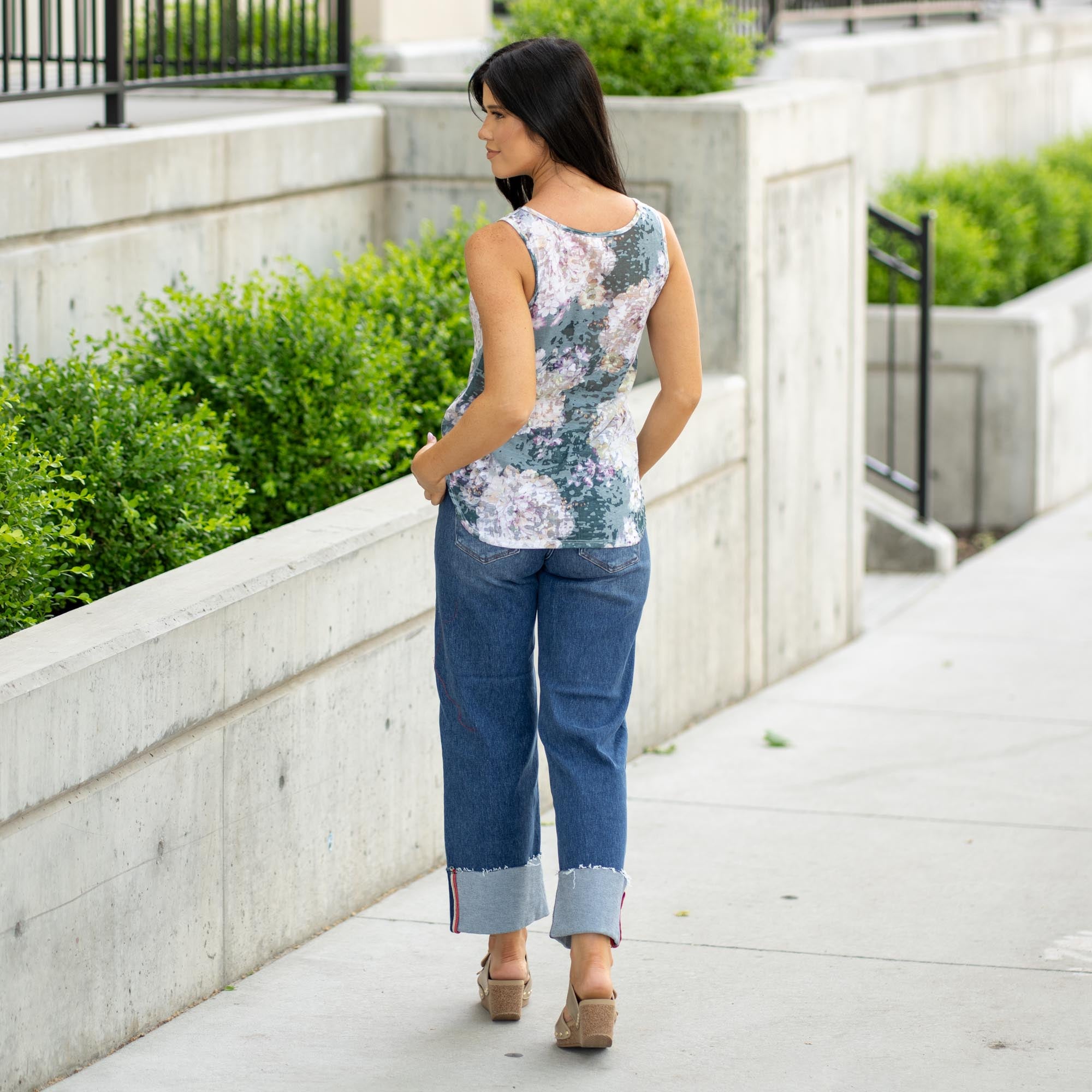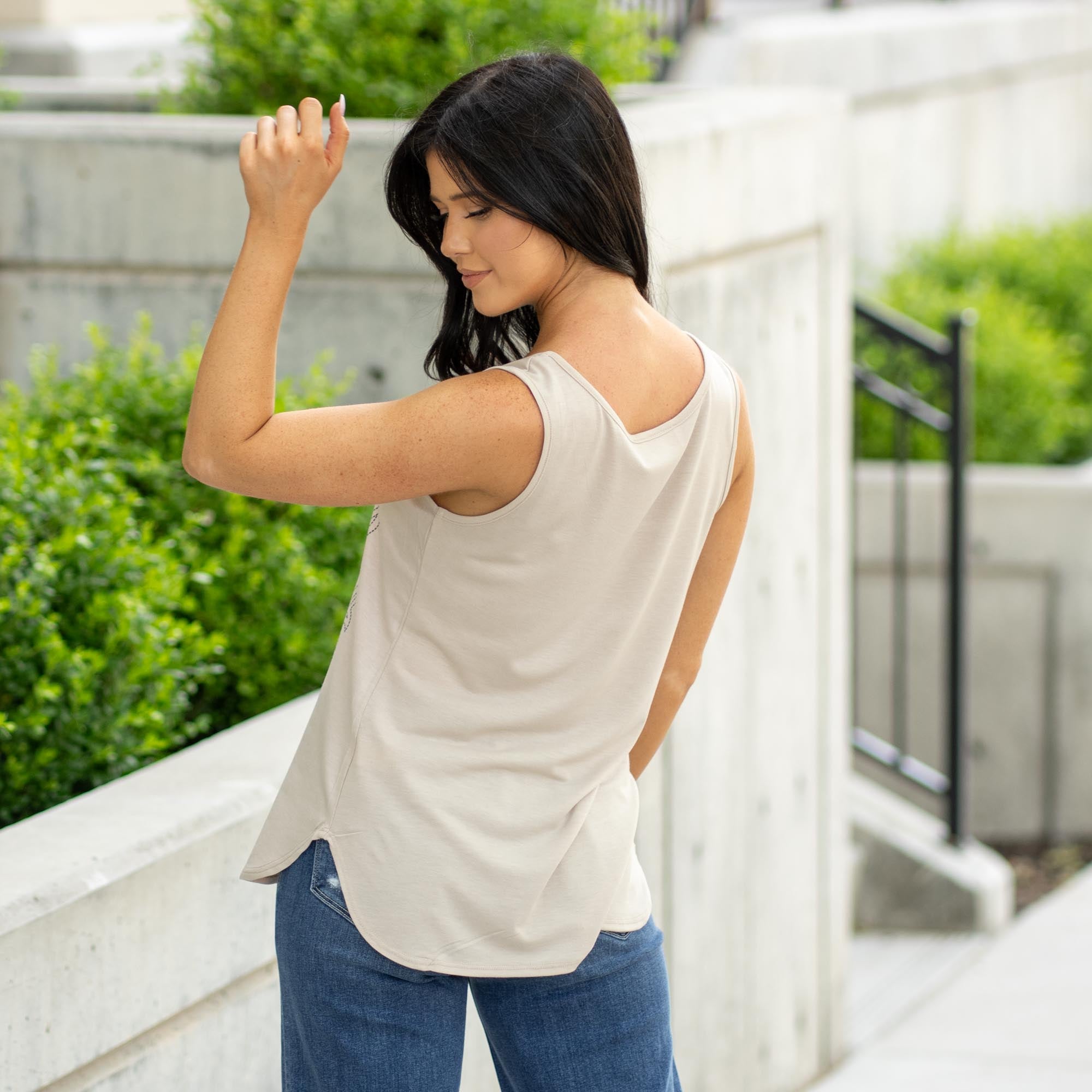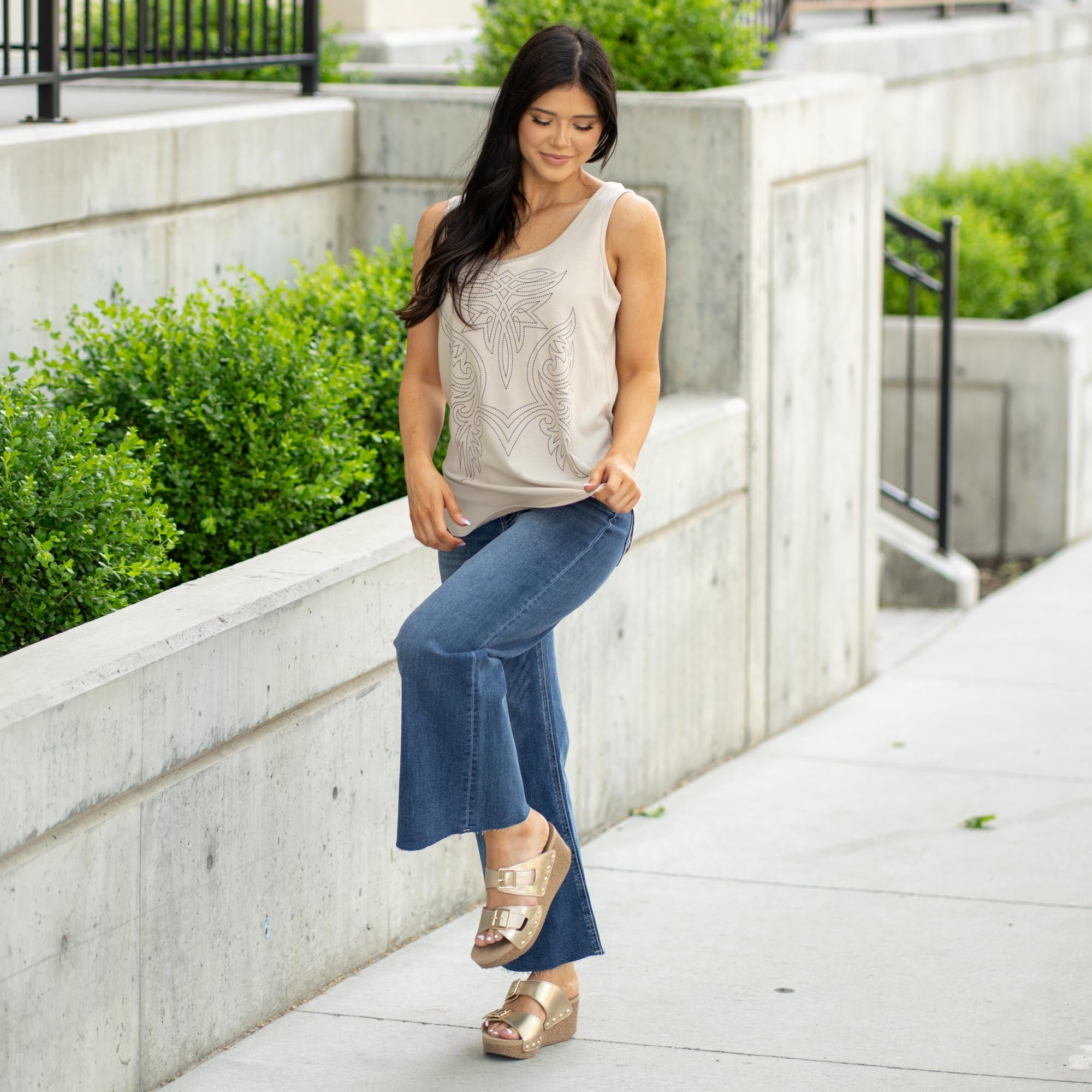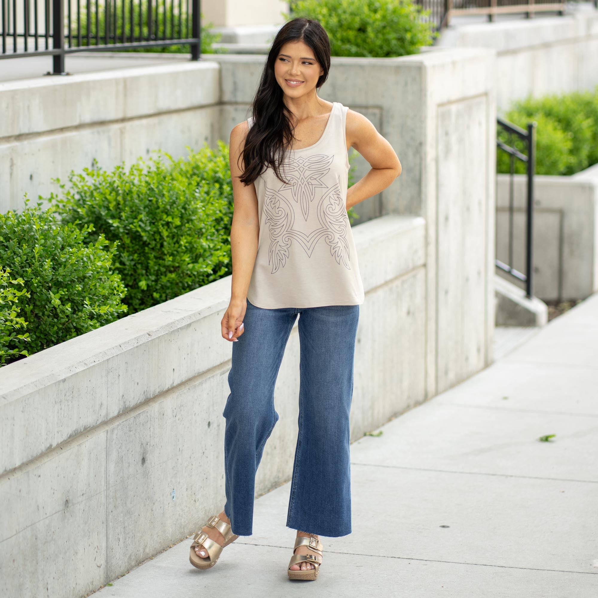 Boot Stitch Graphic Scoop Neck Sleeveless Top