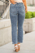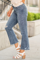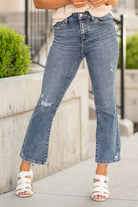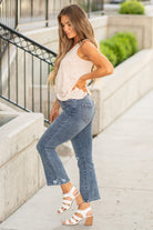Elevate your wardrobe with our High Rise Crop Flare jeans. The dark wash adds a touch of sophistication, while the stretch fabric ensures a comfortable fit. Designed with a zipper fly and classic 5-pocket style, these jeans offer both functionality and fashion. Perfect for any occasion, these crop flares are a stylish addition to any outfit.