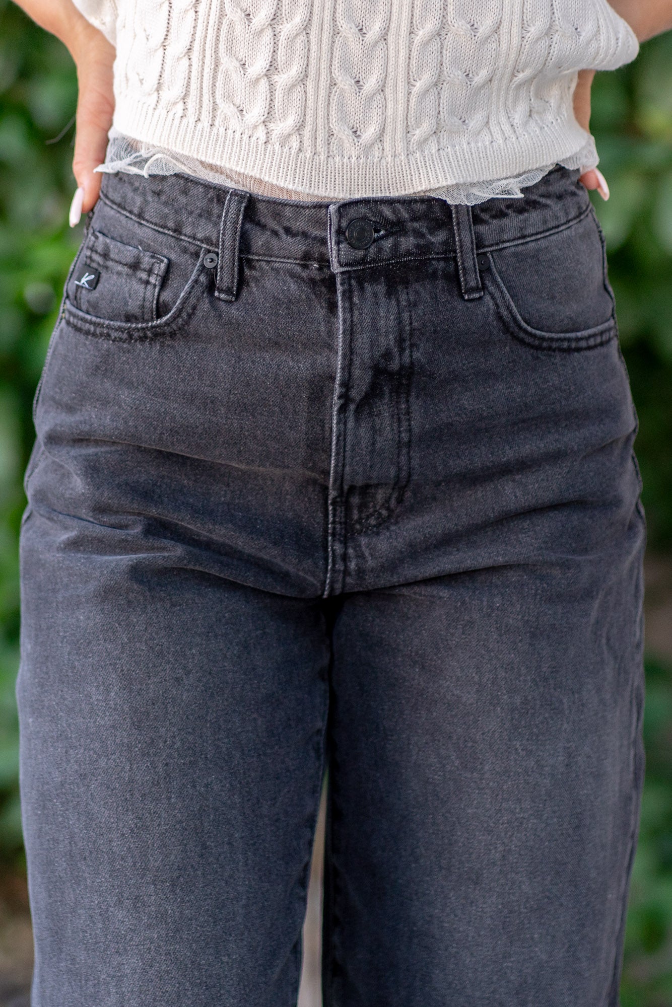 KanCan Victoria Ultra High Rise Cropped Wide Leg Jeans Black
