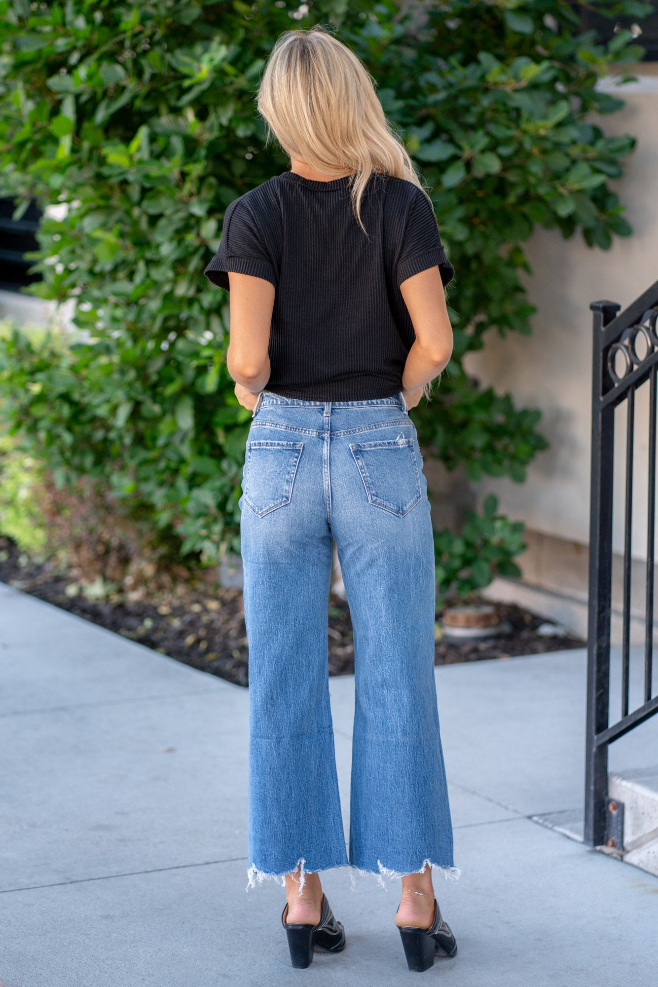 Sapphire Dragon High Rise Distressed Crop Wide Leg