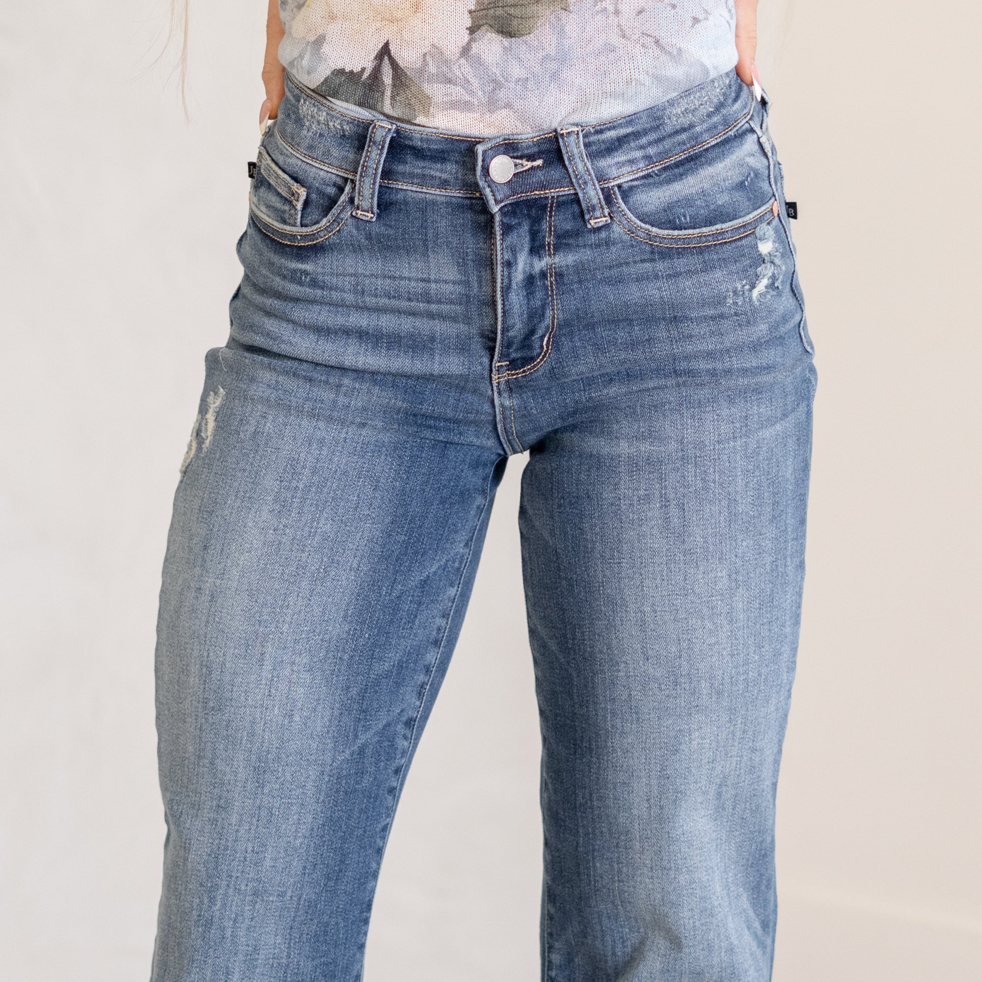 Judy Blue jeans and shorts are made to move with you. Designed with stretch, structure, and curve-hugging comfort, they flatter every shape. Most shoppers size down one full size in stretchy styles, and many plus-size shoppers love the flex and recovery built into every pair.