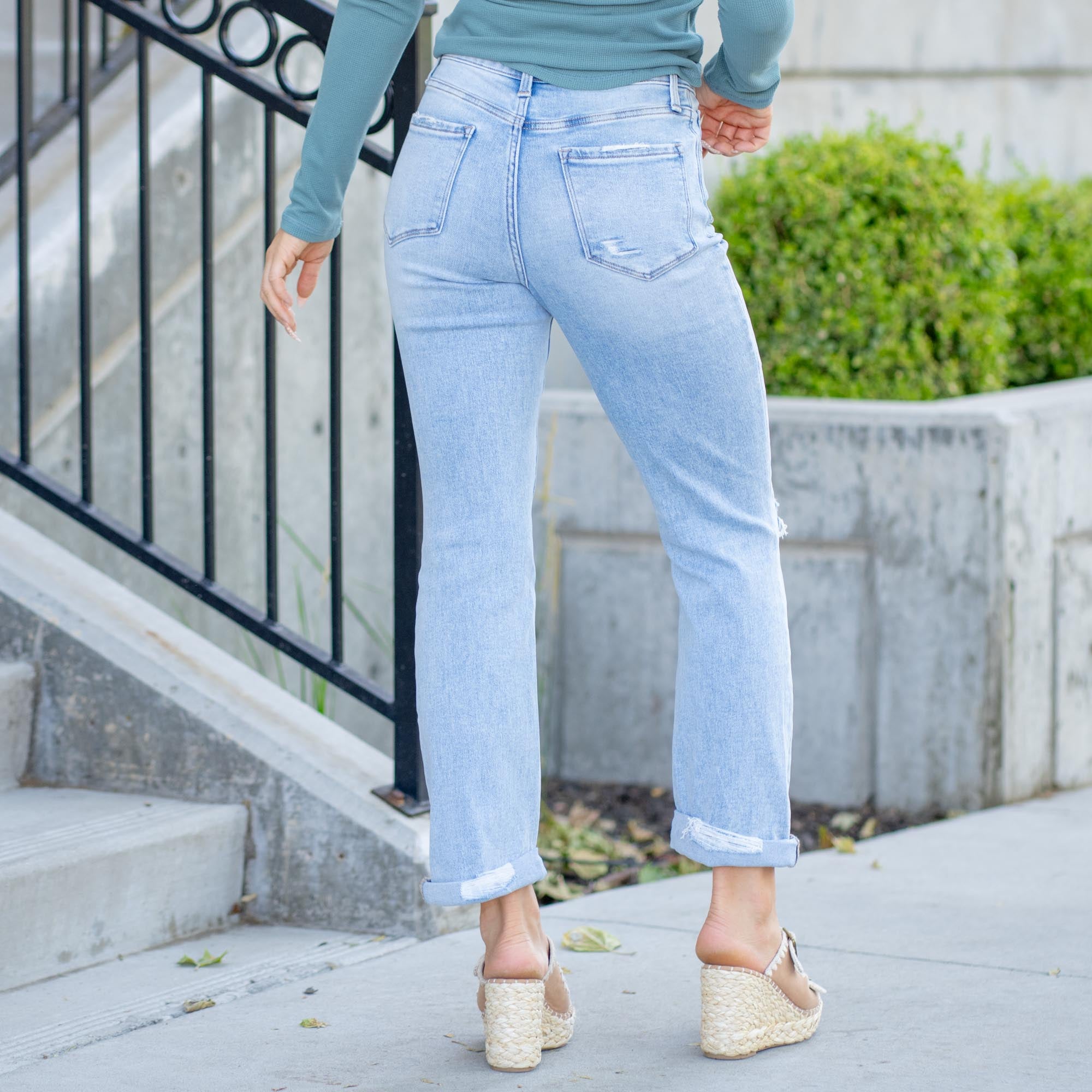 VERVET Felicious High Rise Double Cuff Cropped Straight Leg Light Blue