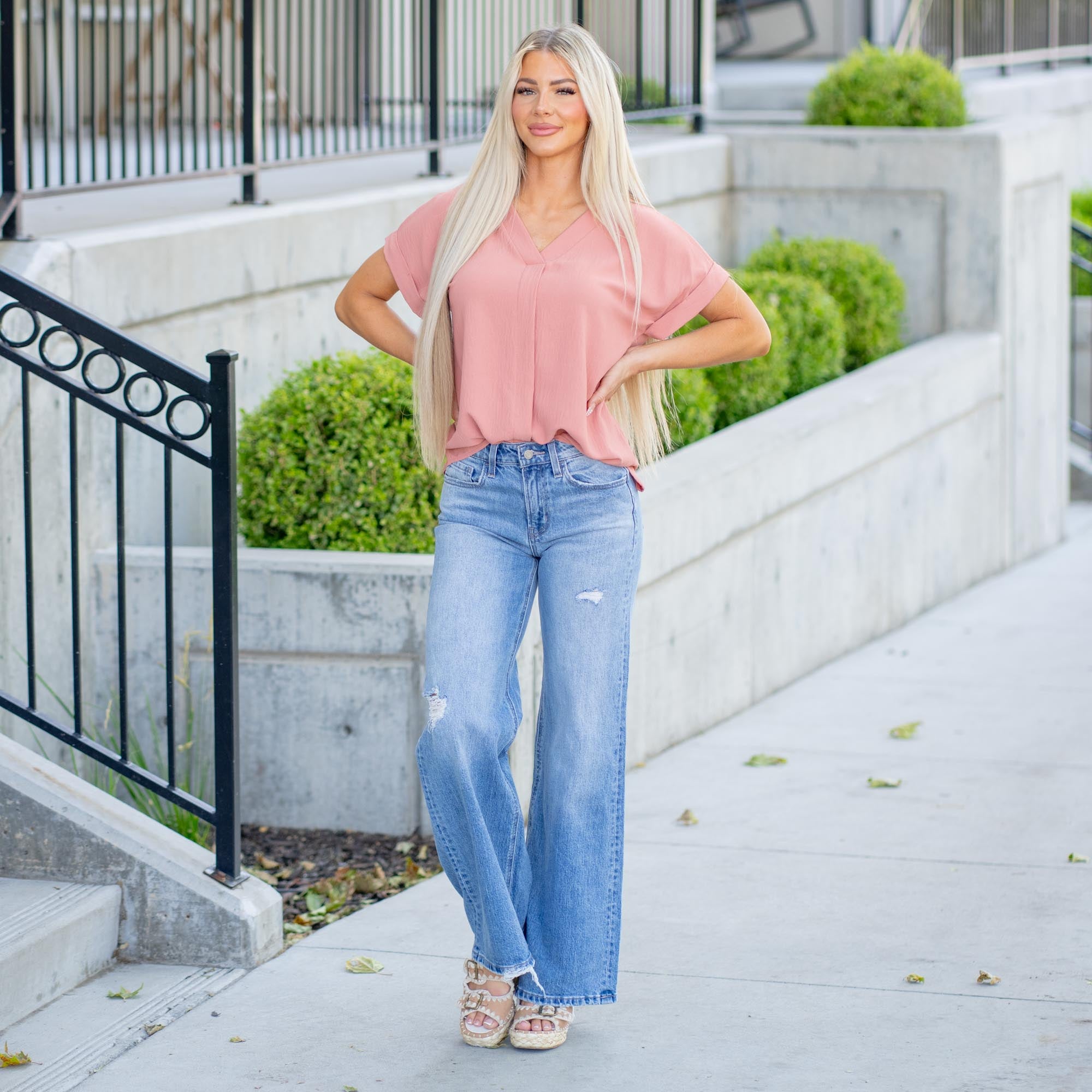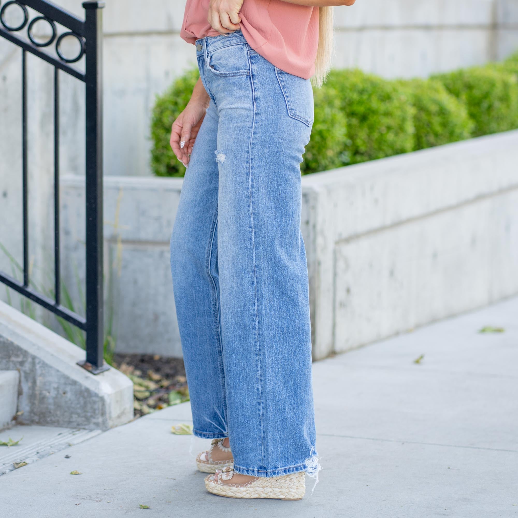 Let your denim do the talking. The Resounding Jeans are designed with a flattering high-rise waist and effortlessly cool wide leg silhouette. Crafted from comfort stretch denim, they give you that lived-in feel from day one—while the distressed detailing adds just the right amount of edge. Full length with a relaxed, vintage-inspired vibe, they’re your go-to for bold everyday style.