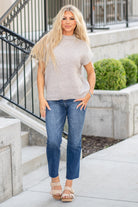 Stay effortlessly stylish with this Short Sleeve Mock Neck Sweater. The mock neck design adds a touch of sophistication, making it perfect for both casual and dressier occasions. Featuring short sleeves, this sweater is ideal for transitioning between seasons and keeping you cool on warmer days. The soft and comfortable fabric ensures all-day comfort, while the slim fit provides a flattering silhouette. Pair it with your favorite skirt or pants for a chic and versatile look. Available in various colors to complement your personal style and wardrobe. Upgrade your closet with this must-have short sleeve sweater for a fashionable and polished ensemble.