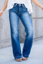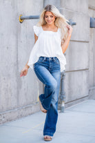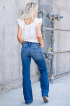 KanCan Holly High Rise Trouser Hem Flare Jeans Medium Blue Wash