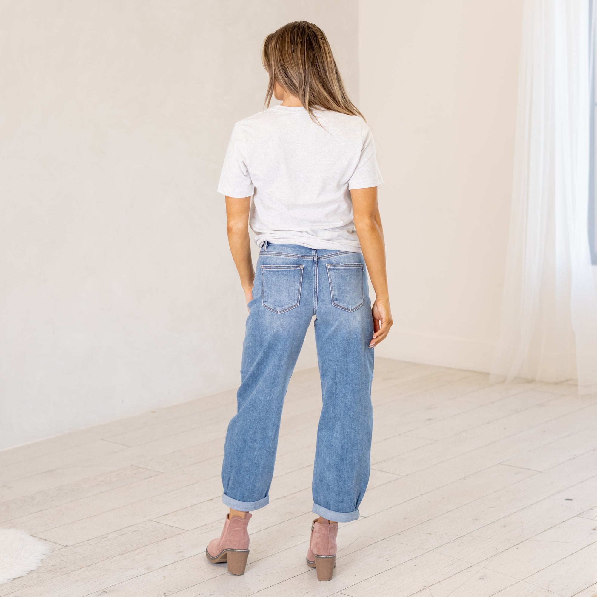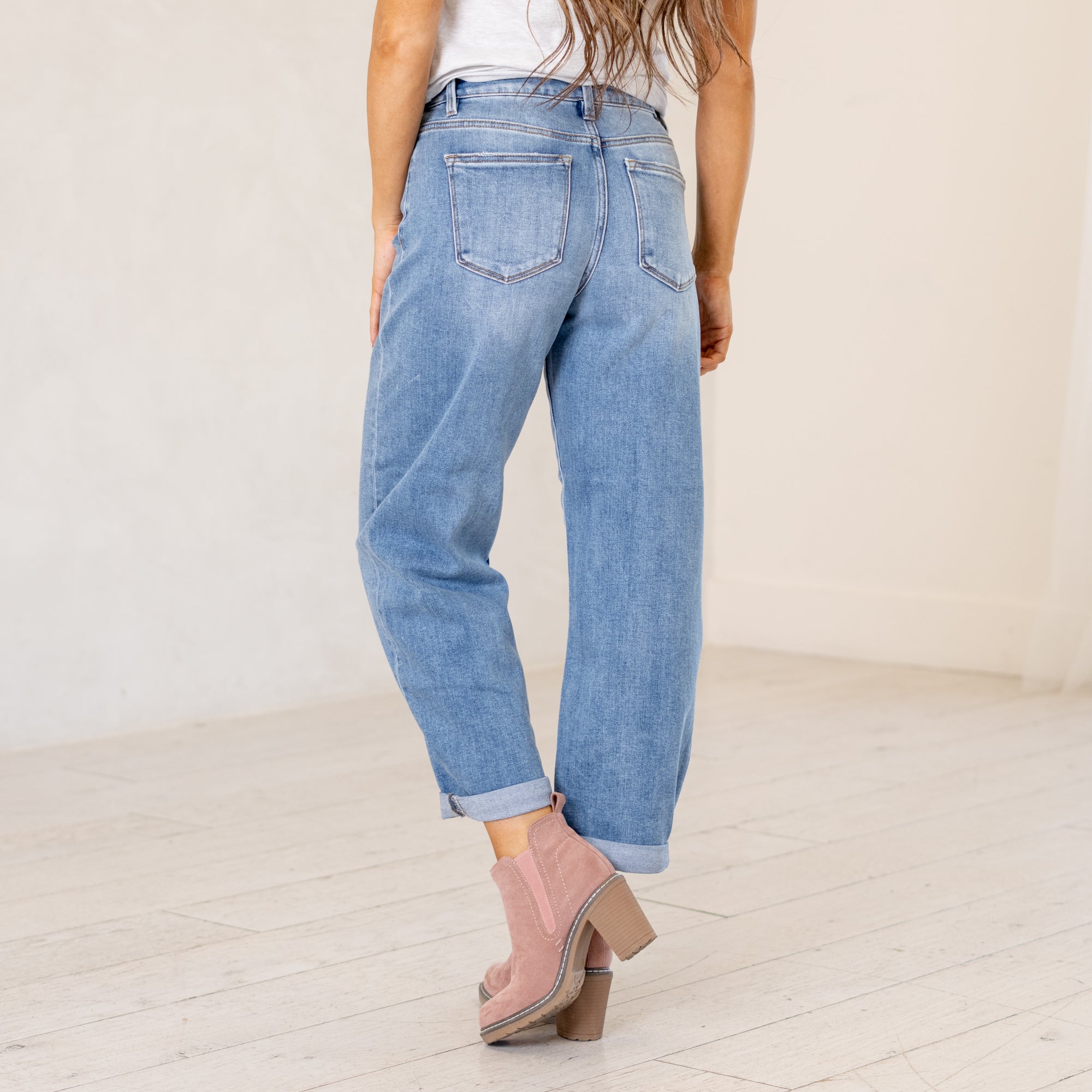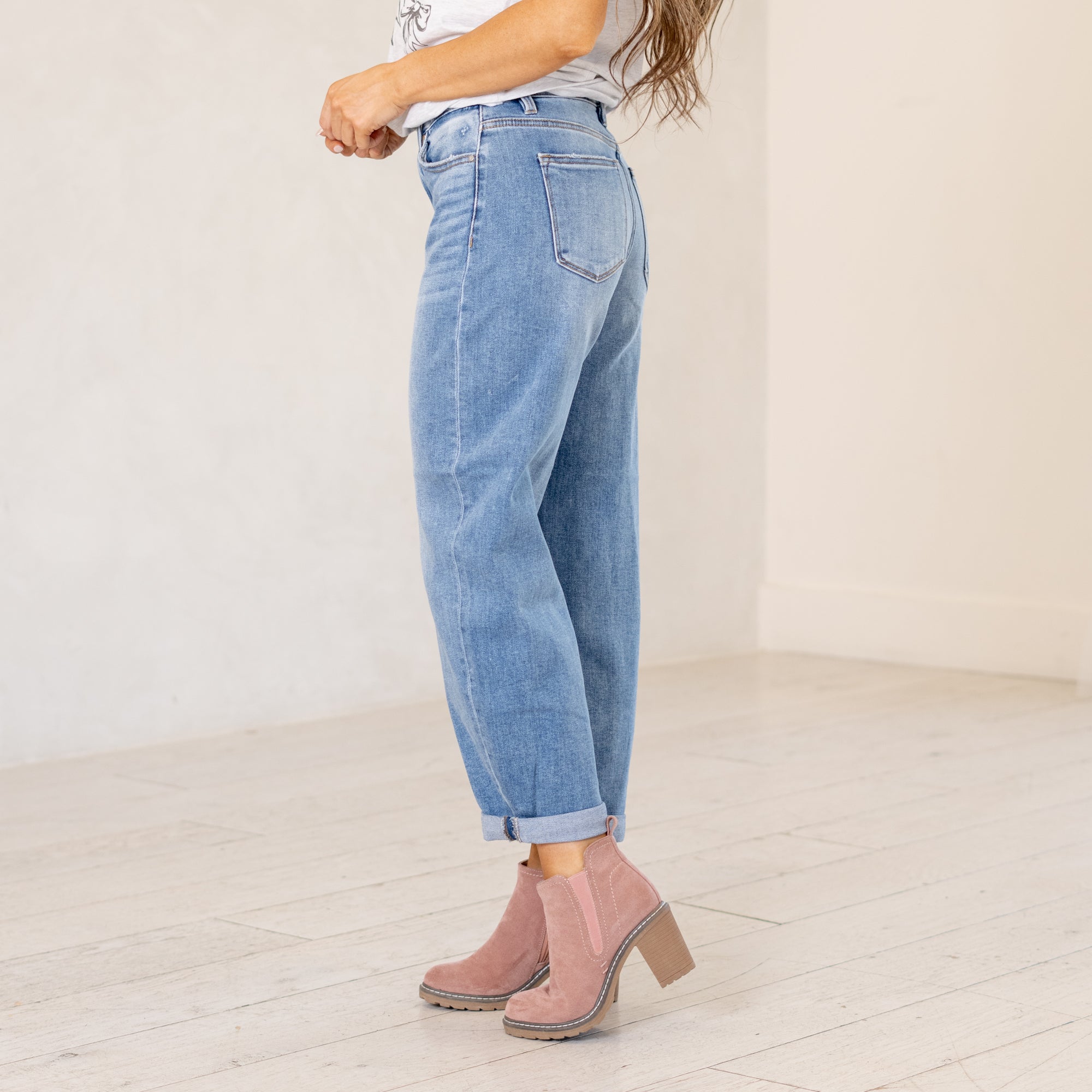 Risen Kiara High Rise Cropped Barrel Fit Jeans Medium Blue Wash