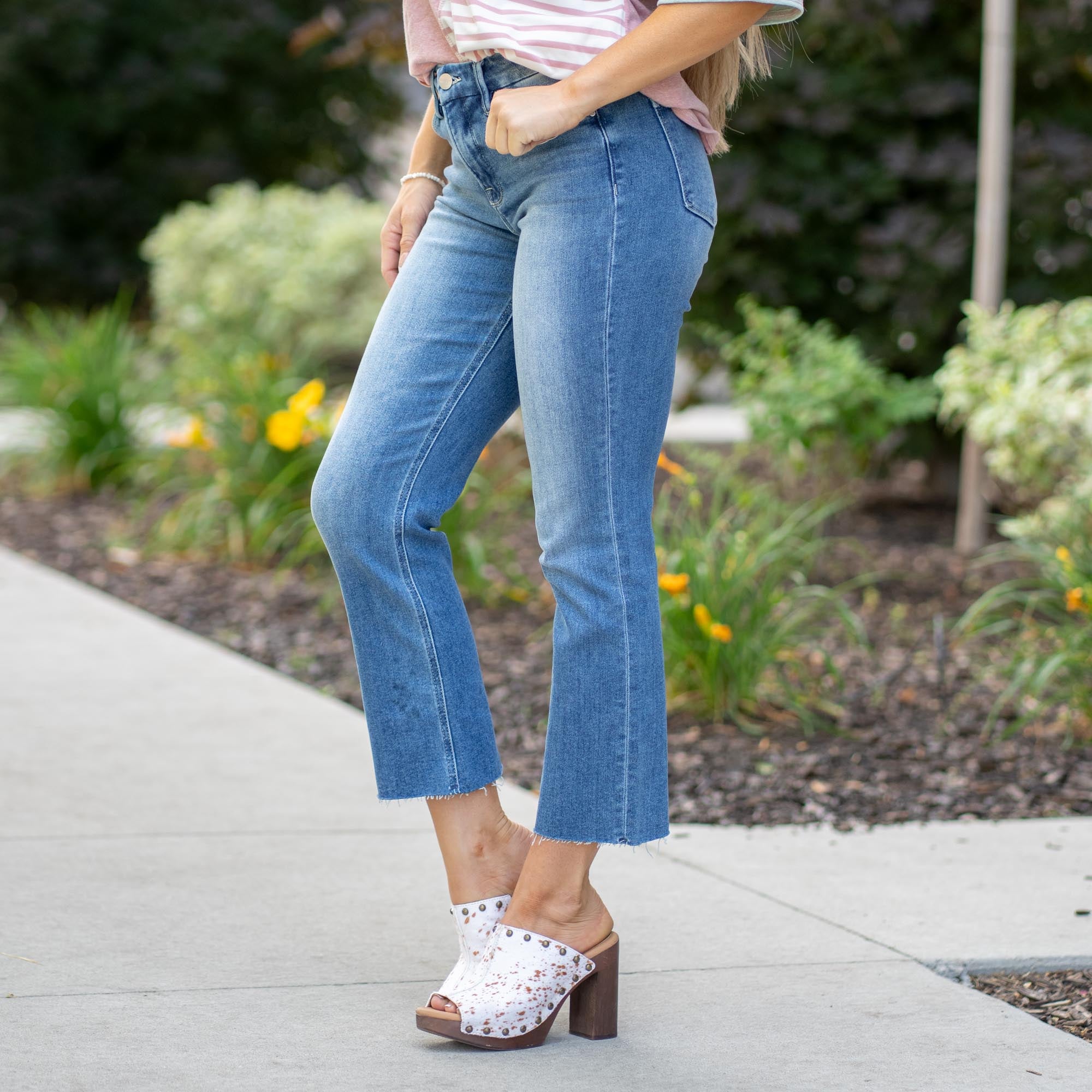 Meet your new go-to: the Ashton High Rise Crop Straight Jeans in a versatile medium blue wash. Designed with tummy control for a flattering fit, these cropped straight-leg jeans offer just the right amount of structure and stretch to keep you comfortable and confident all day.