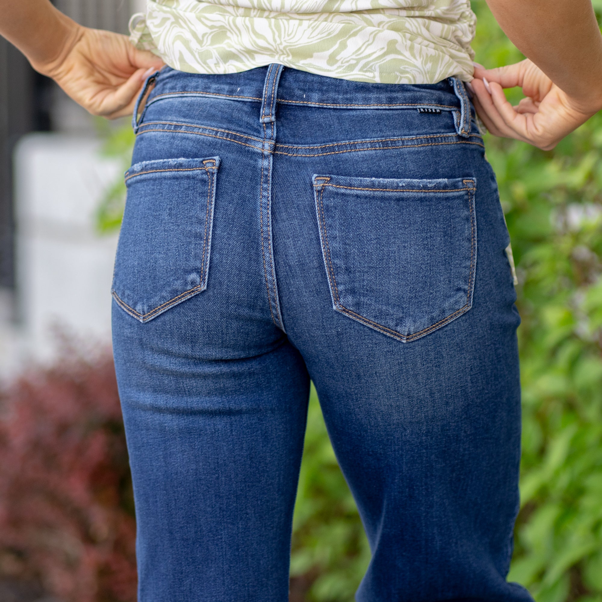 Risen denim is known for its soft stretch fabric and modern fits. Most jeans and shorts include spandex for comfort and flexibility. Risen's plus sizing is available in 1X–3X (not W-sizes), and runs true to size with a flattering mid-to-high rise design.