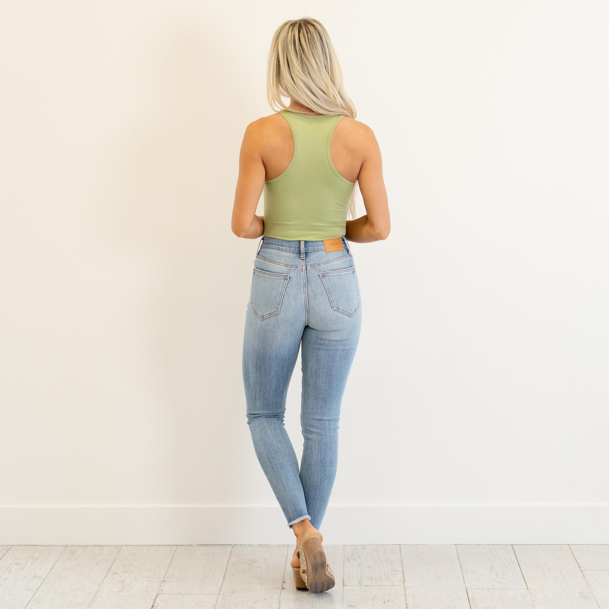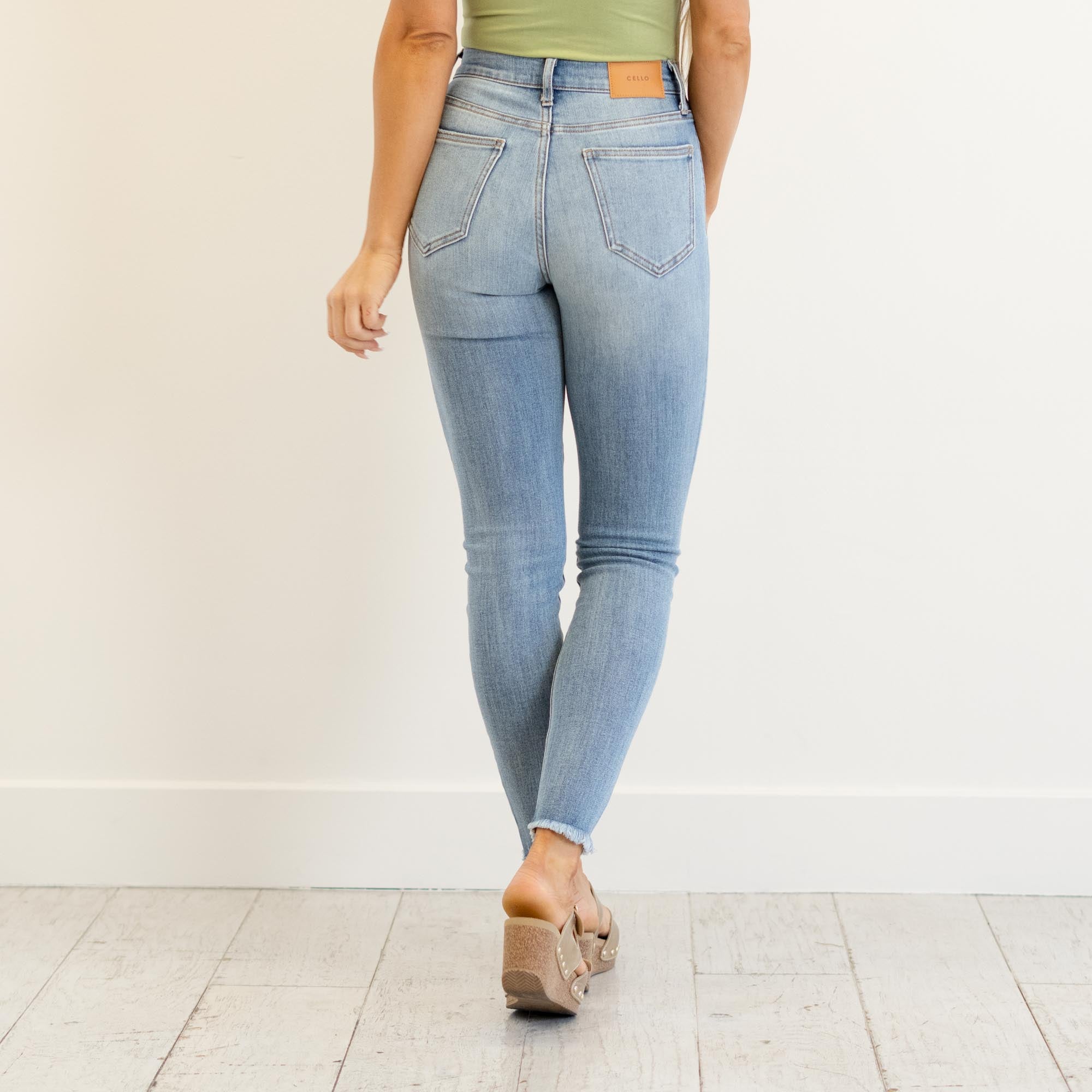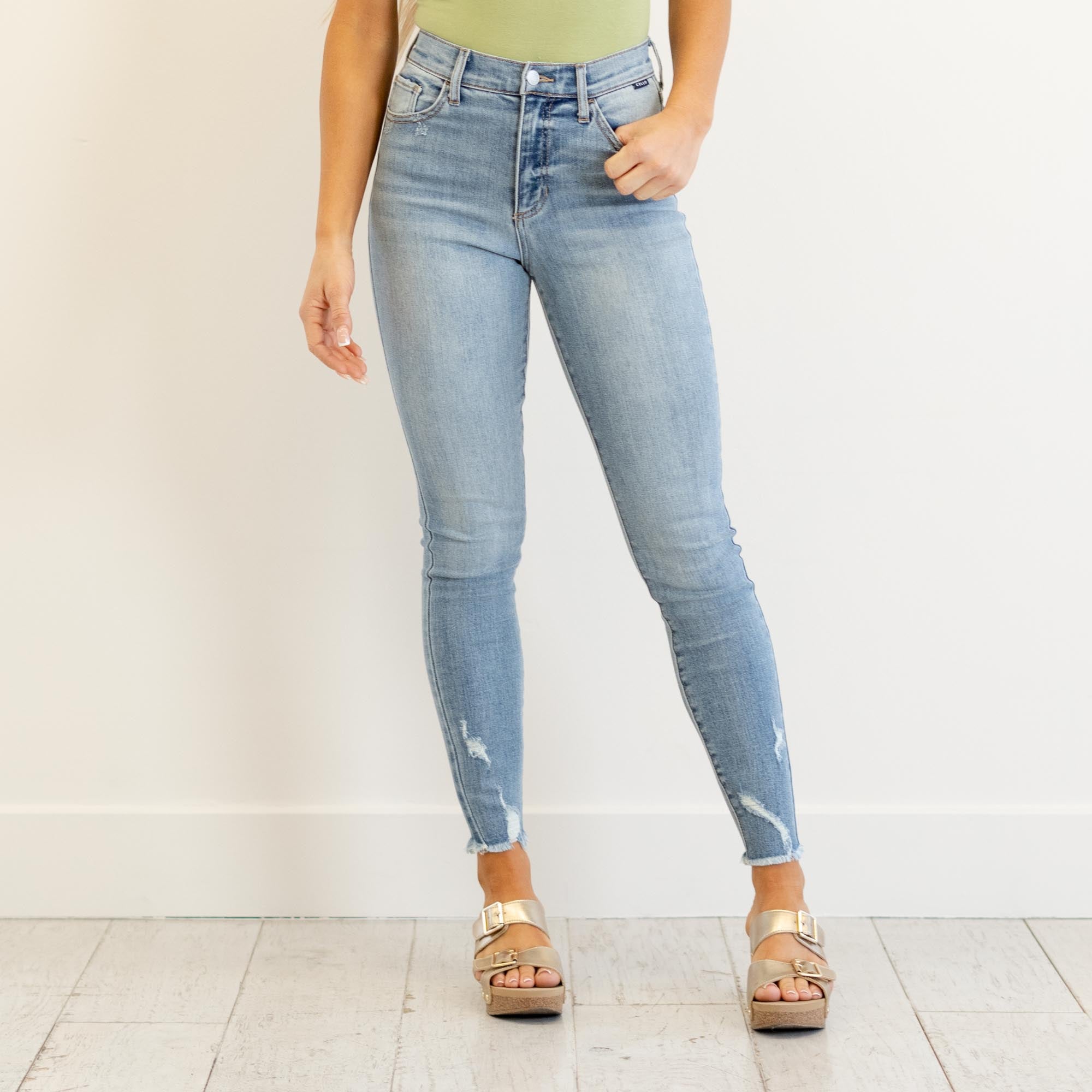 Cello Jeans Mara High Rise Frayed Hem Ankle Skinny Medium Blue Wash
