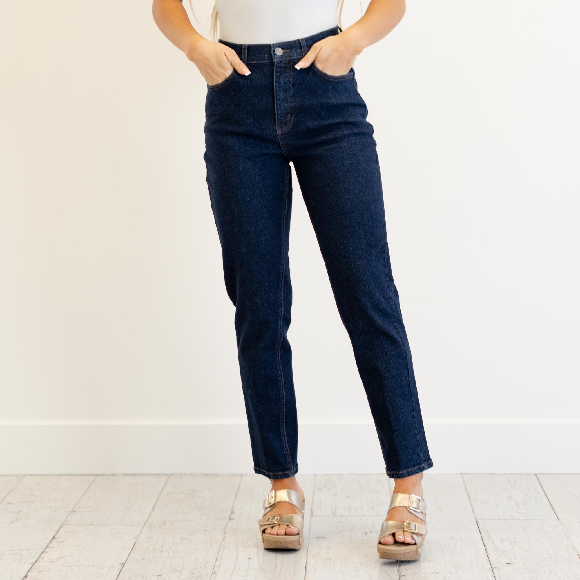 Crafted from Risen’s signature comfort stretch denim, they mold beautifully to your shape while maintaining structure and support. Subtle fading and classic stitching keep the look clean and elevated, making them perfect to pair with everything from casual tees to tailored blouses.
