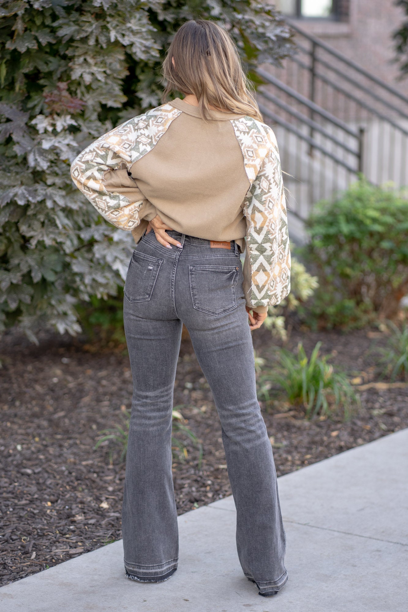 Judy Blue jeans run generous and are very stretchy compared to other brands. We recommend sizing down one size in the skinny jeans, flares, and boot cuts and 2 sizes in the boyfriends or relaxed denim.