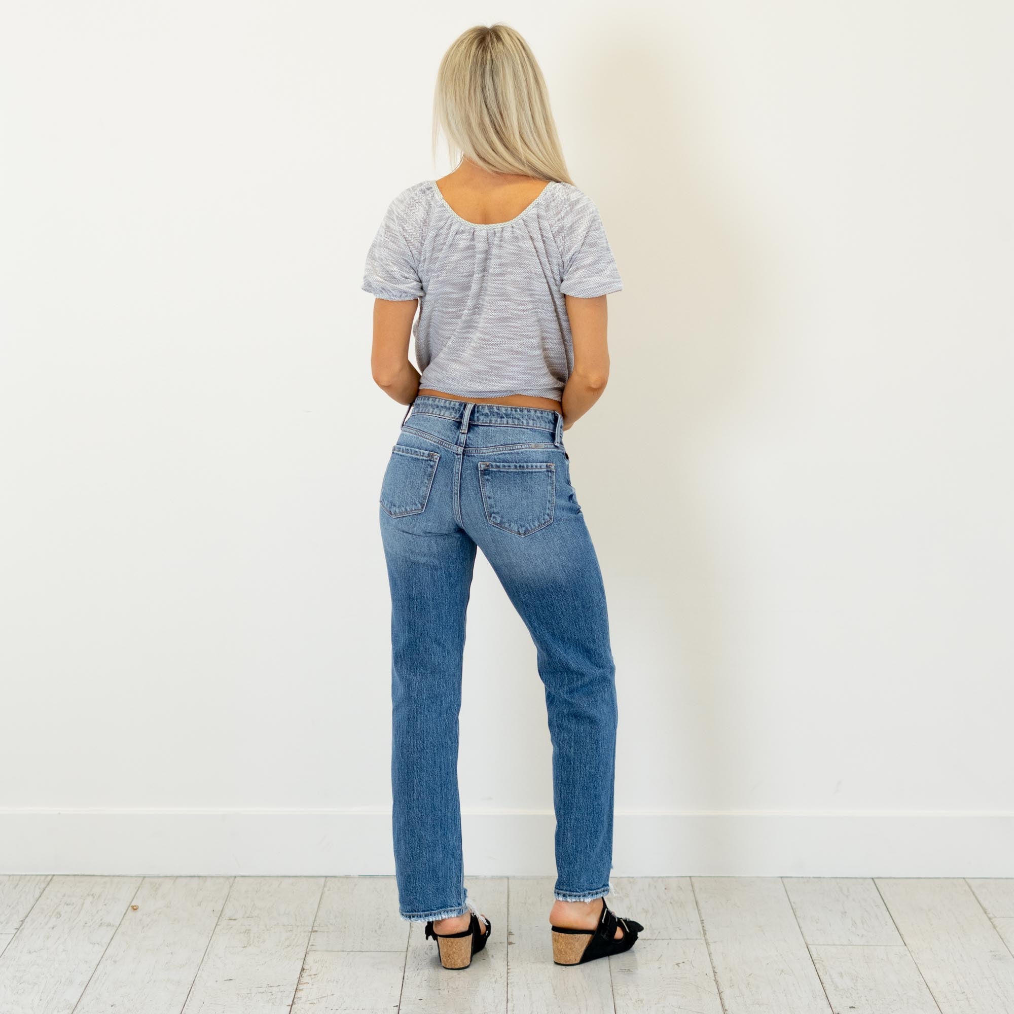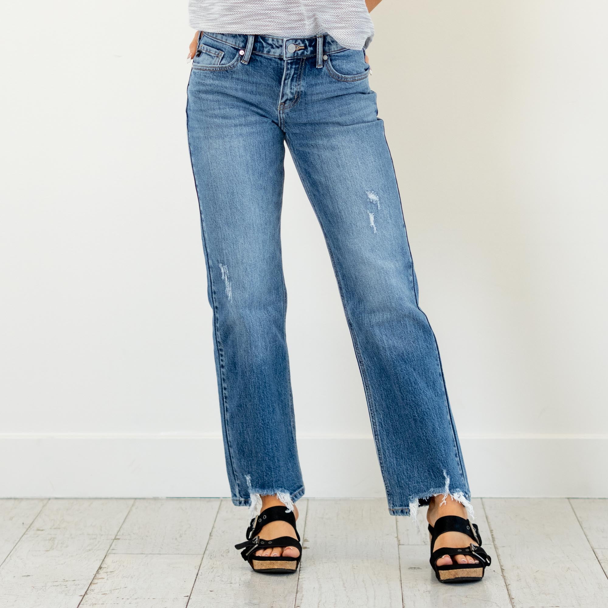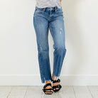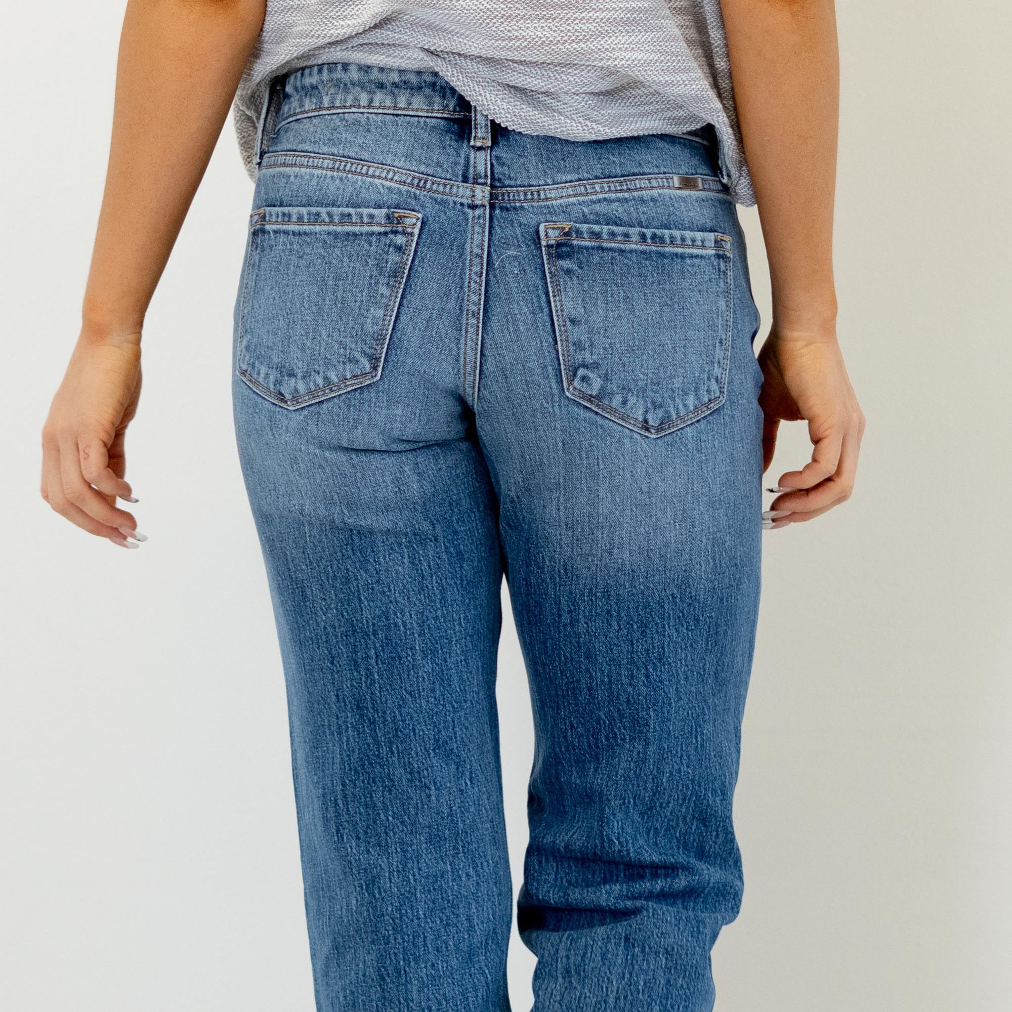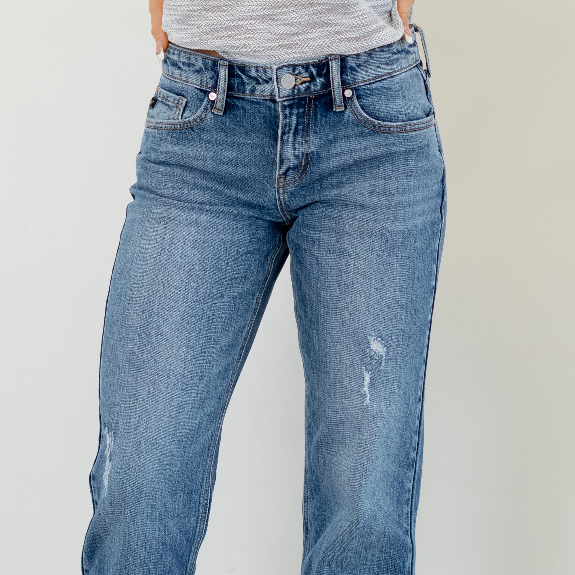 KanCan Thalia Mid Rise True Straight Leg Jeans Dark Blue Wash
