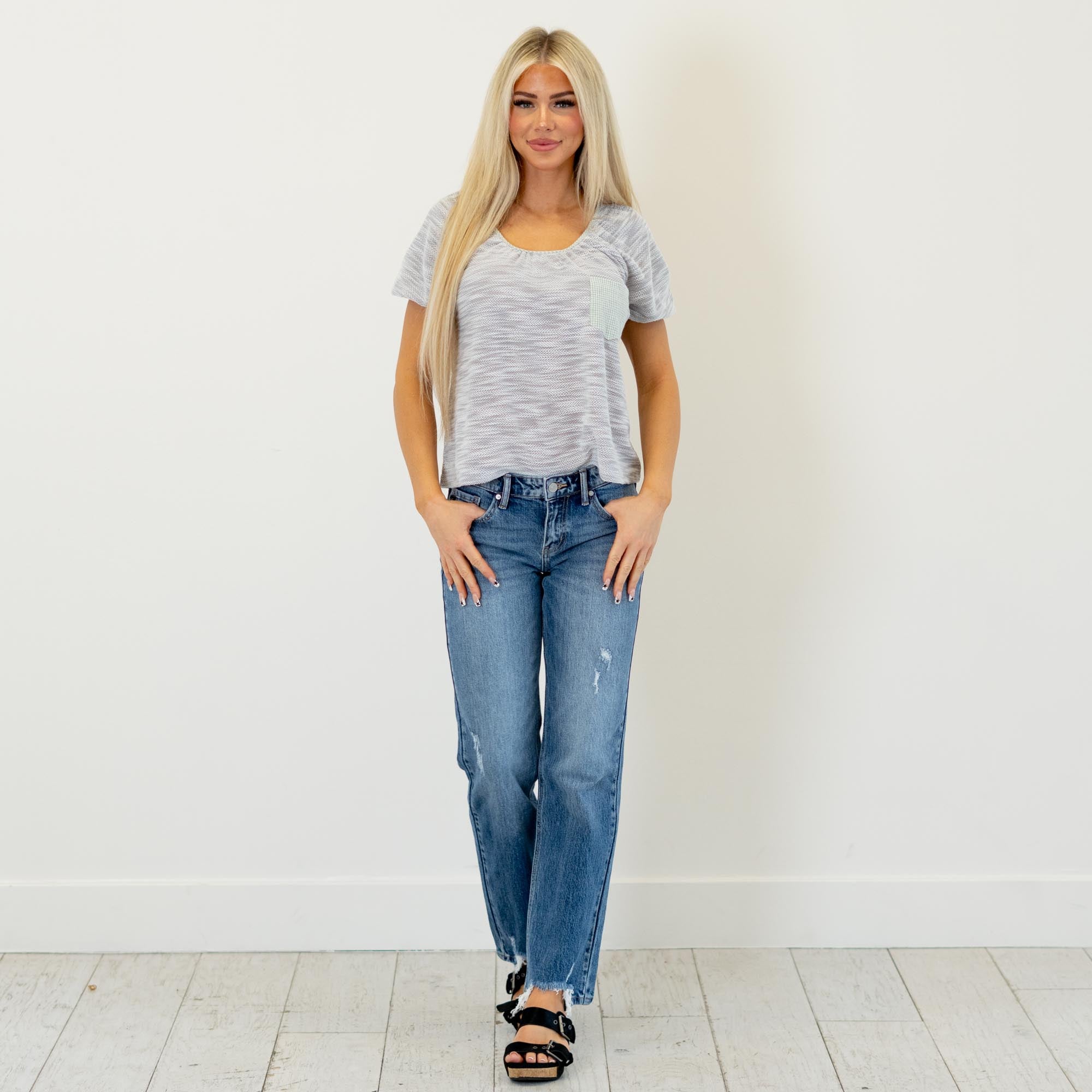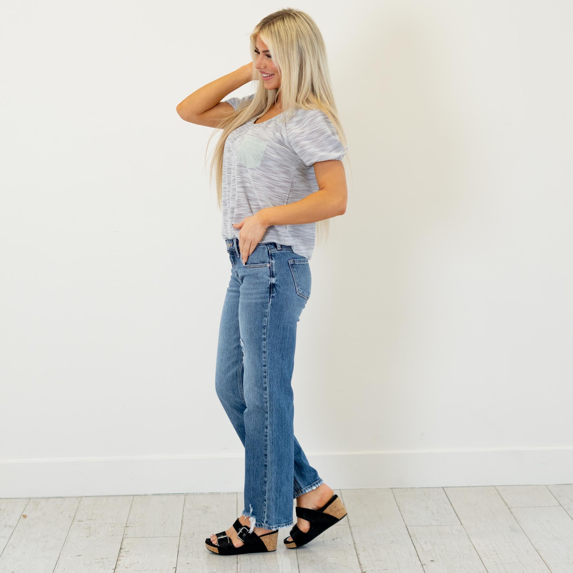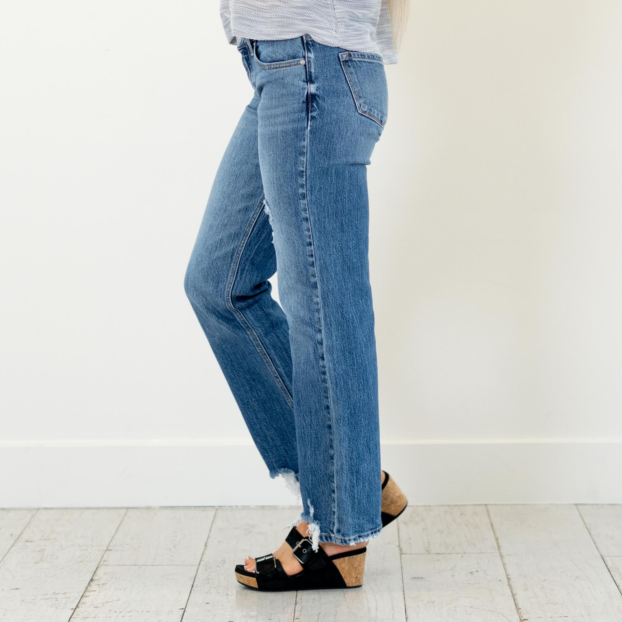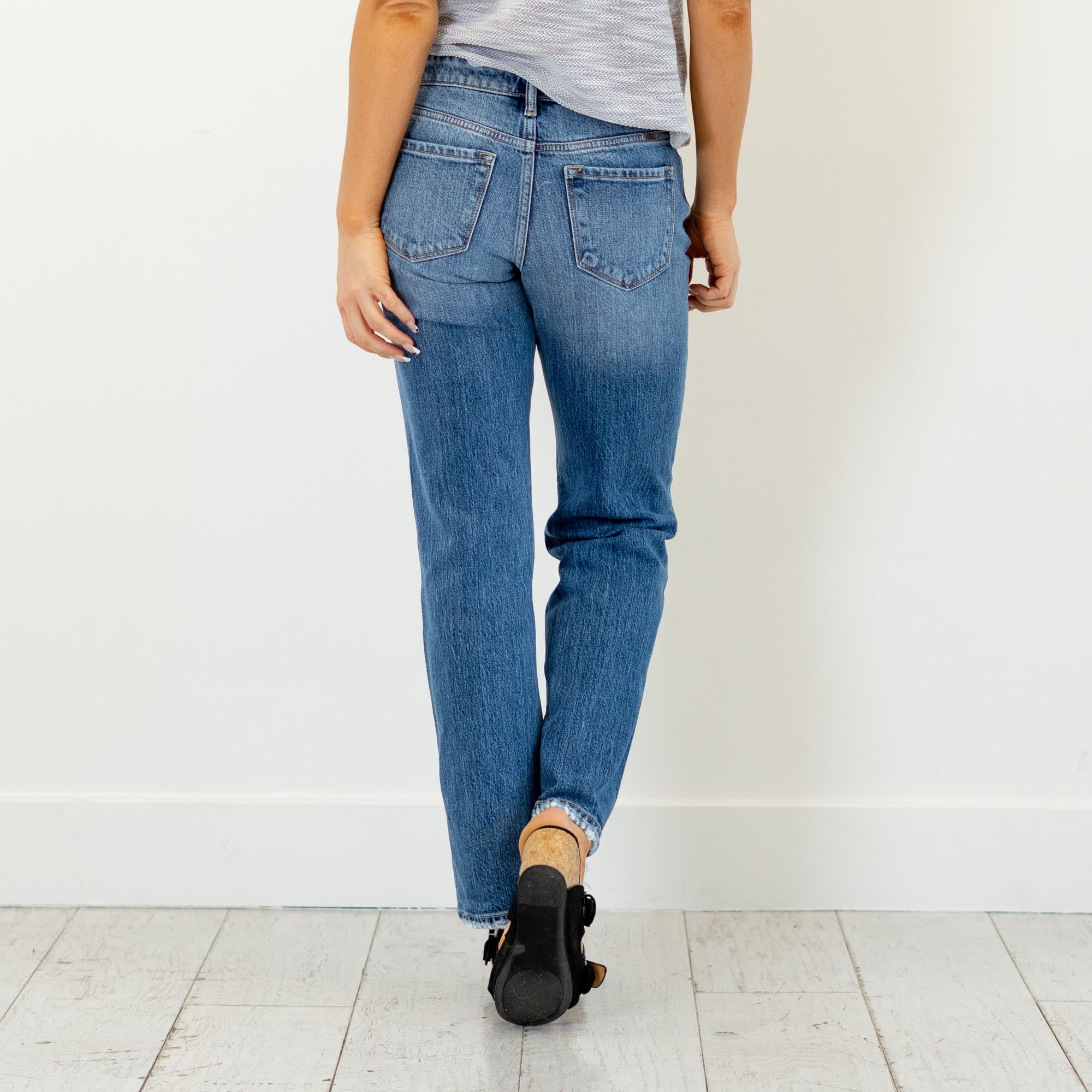 KanCan Thalia Mid Rise True Straight Leg Jeans Dark Blue Wash