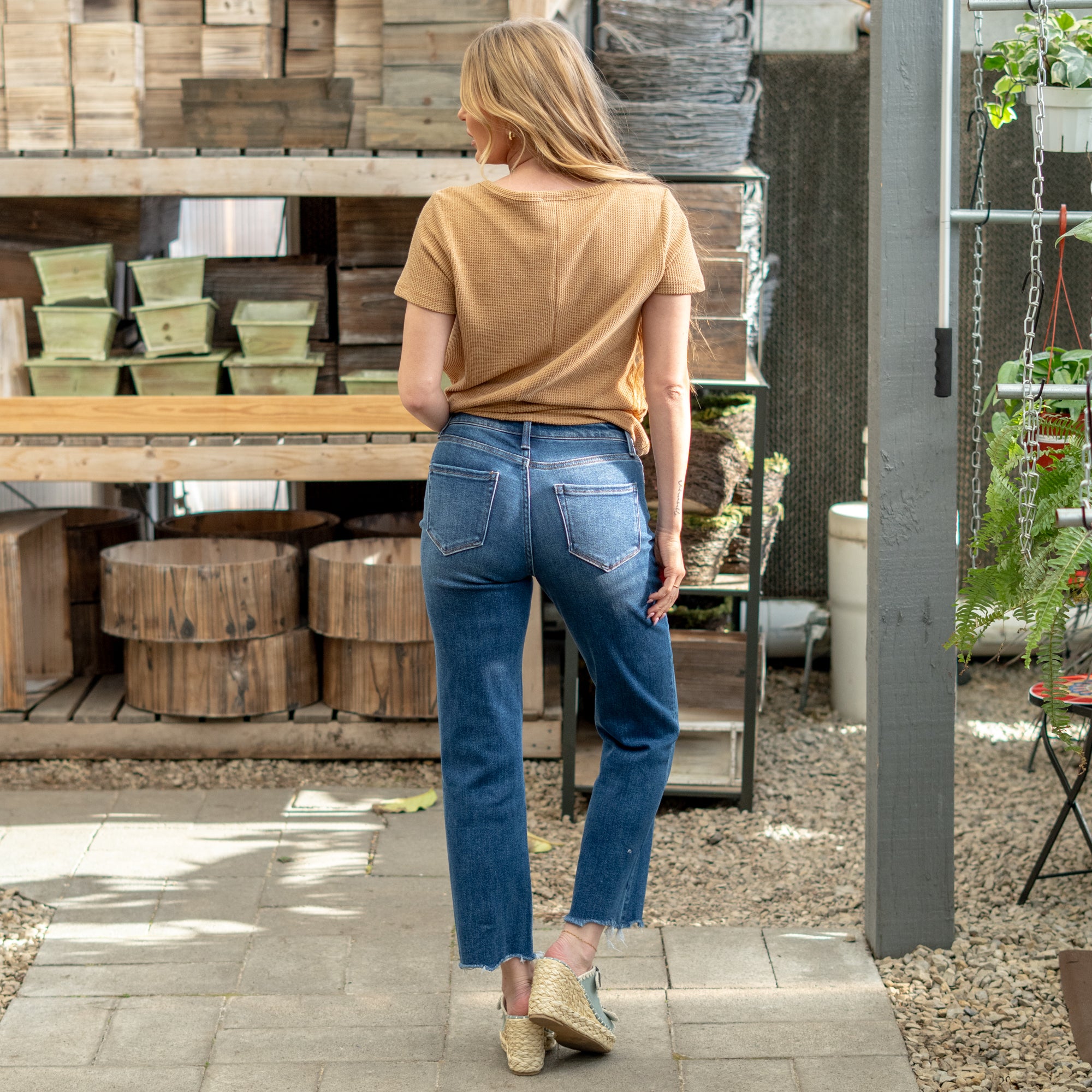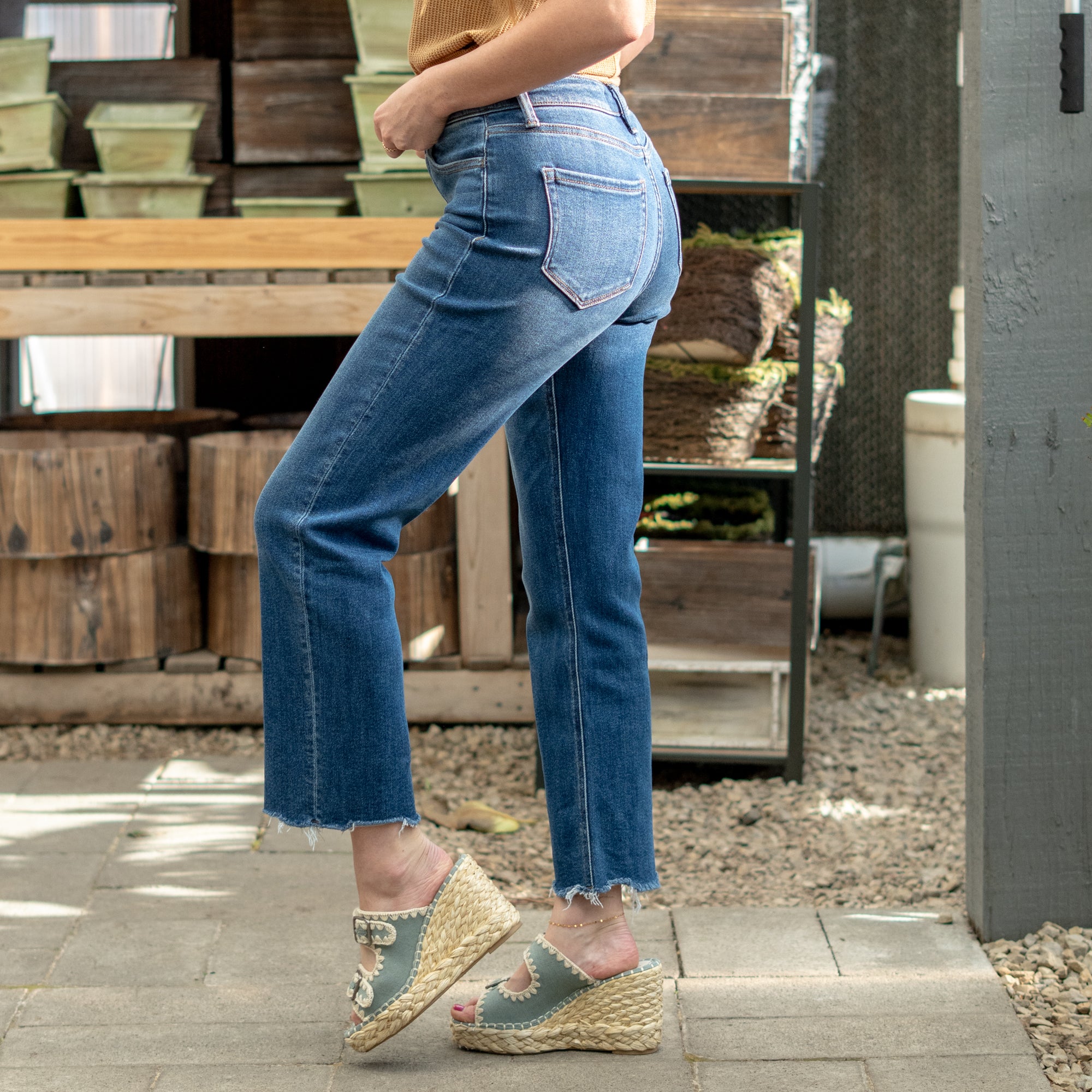 VERVET Love So True High Rise Cropped Hem Straight Leg Jeans Medium Blue Wash