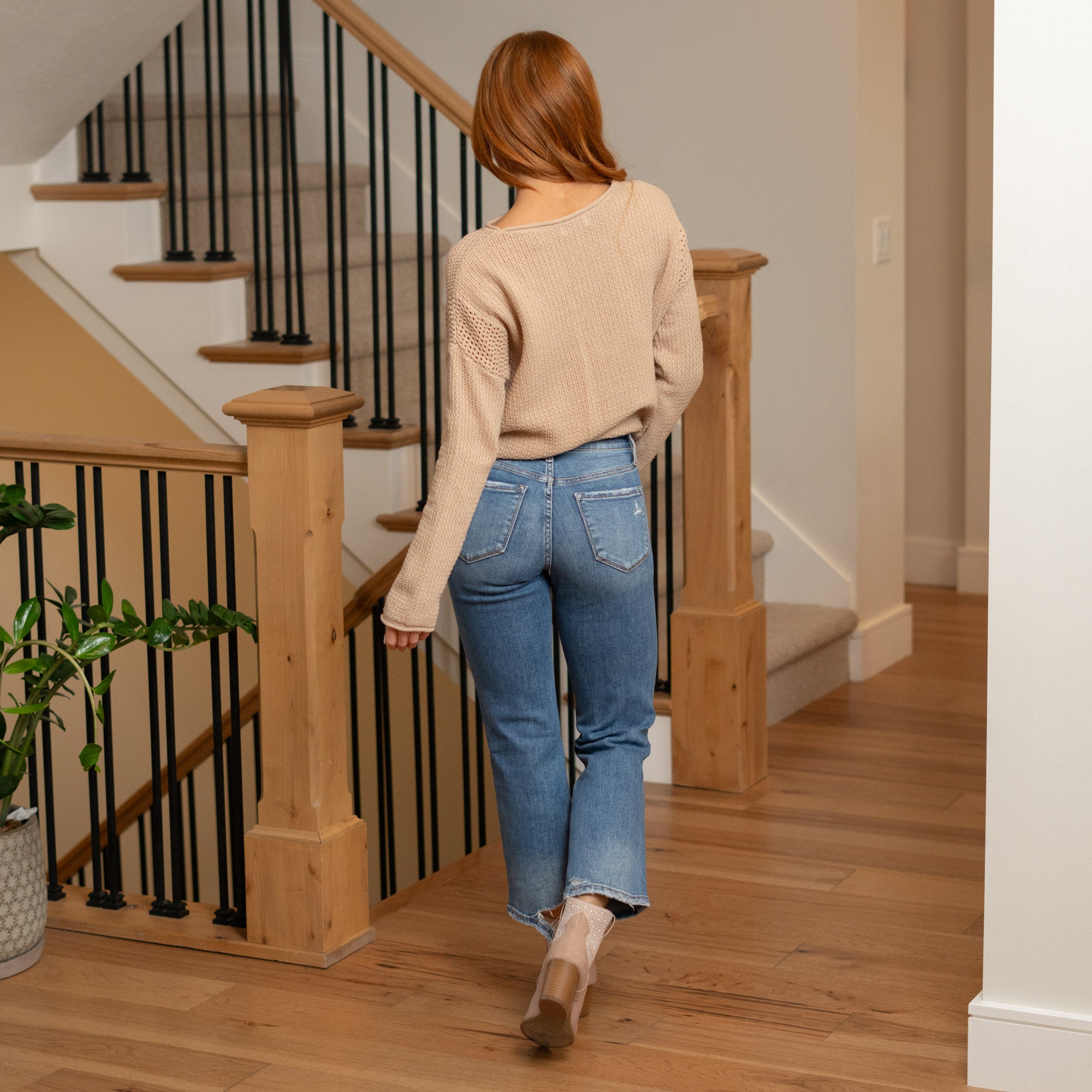 LOVERVET Dark Devon High Rise Cropped Straight Leg Regular & Plus Sizes Medium Blue Wash