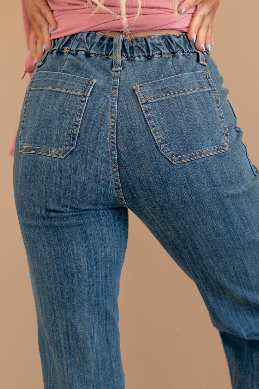 These vintage-inspired jeans boast a high waist design with an elastic waist for maximum comfort and a flattering fit. The classic straight-leg cut adds a touch of timeless elegance to your ensemble, making them suitable for both casual looks. With their blend of vintage charm and modern comfort features, these jeans are the perfect wardrobe staple for those seeking style and ease in one package.