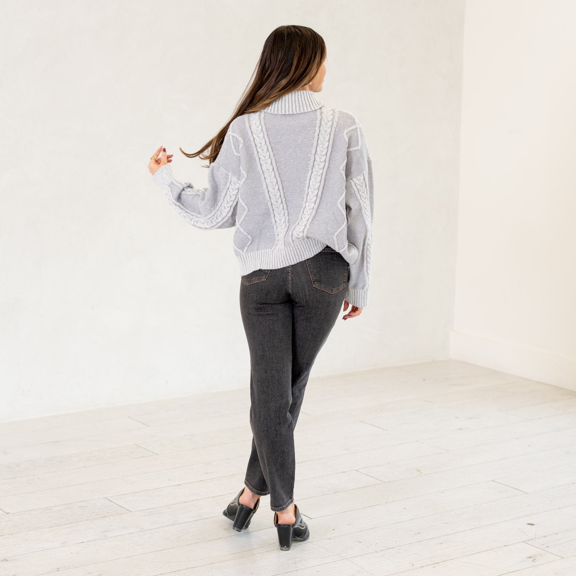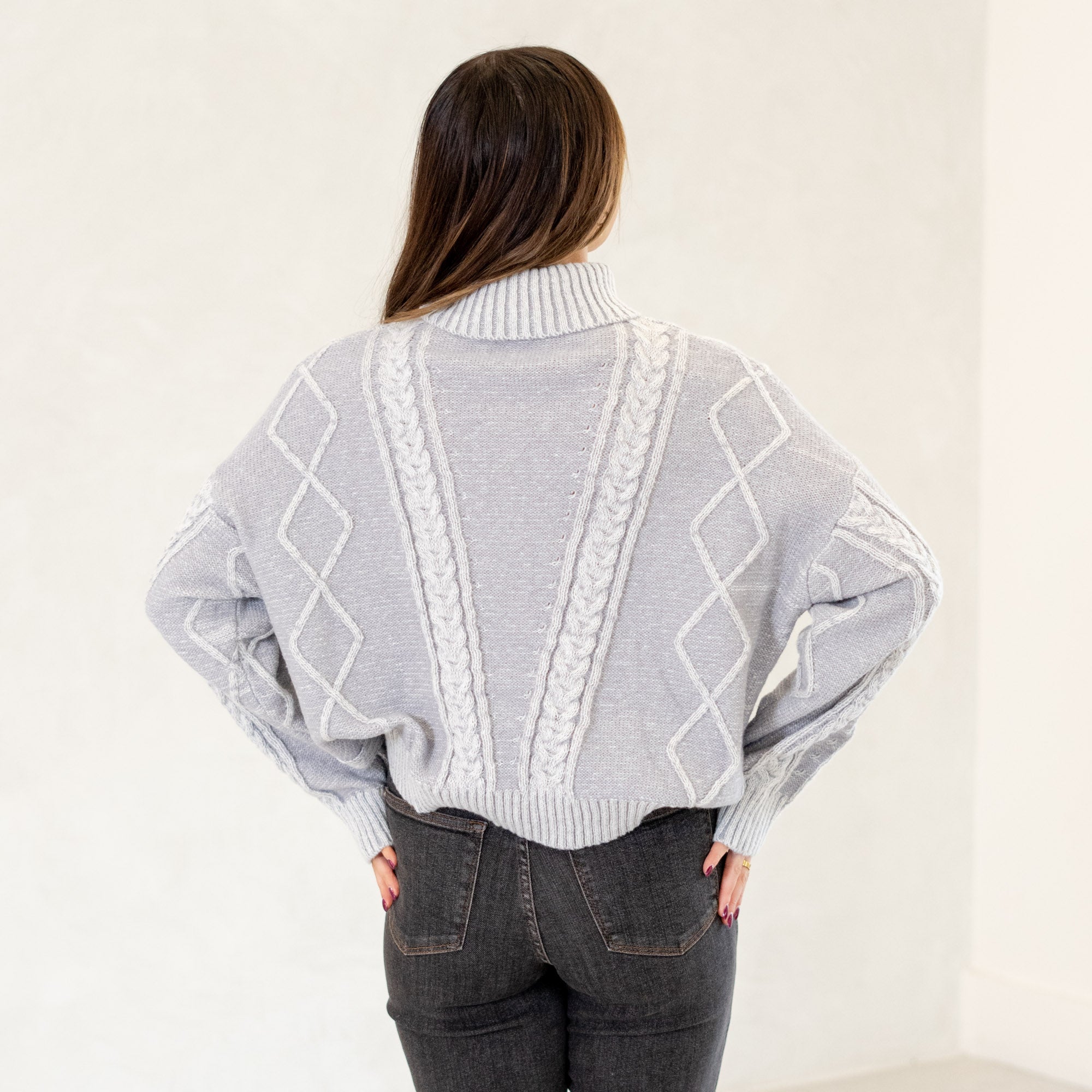 Cable-Knit Turtleneck Dropped Shoulder Sweater