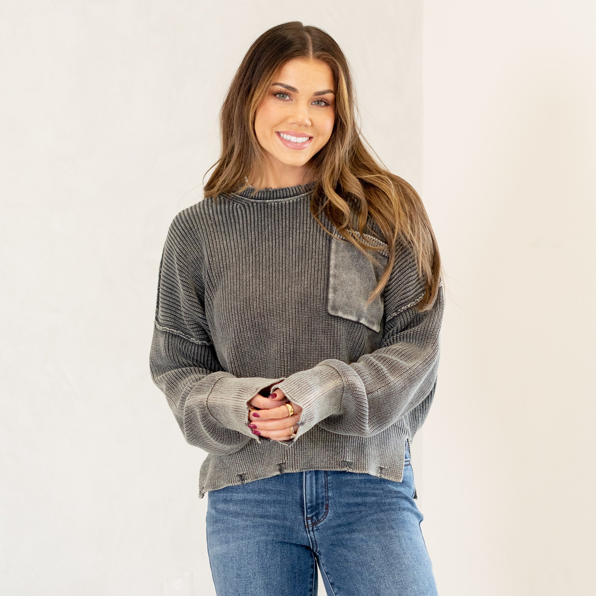Distressed Hem Round Neck Dropped Shoulder Sweater