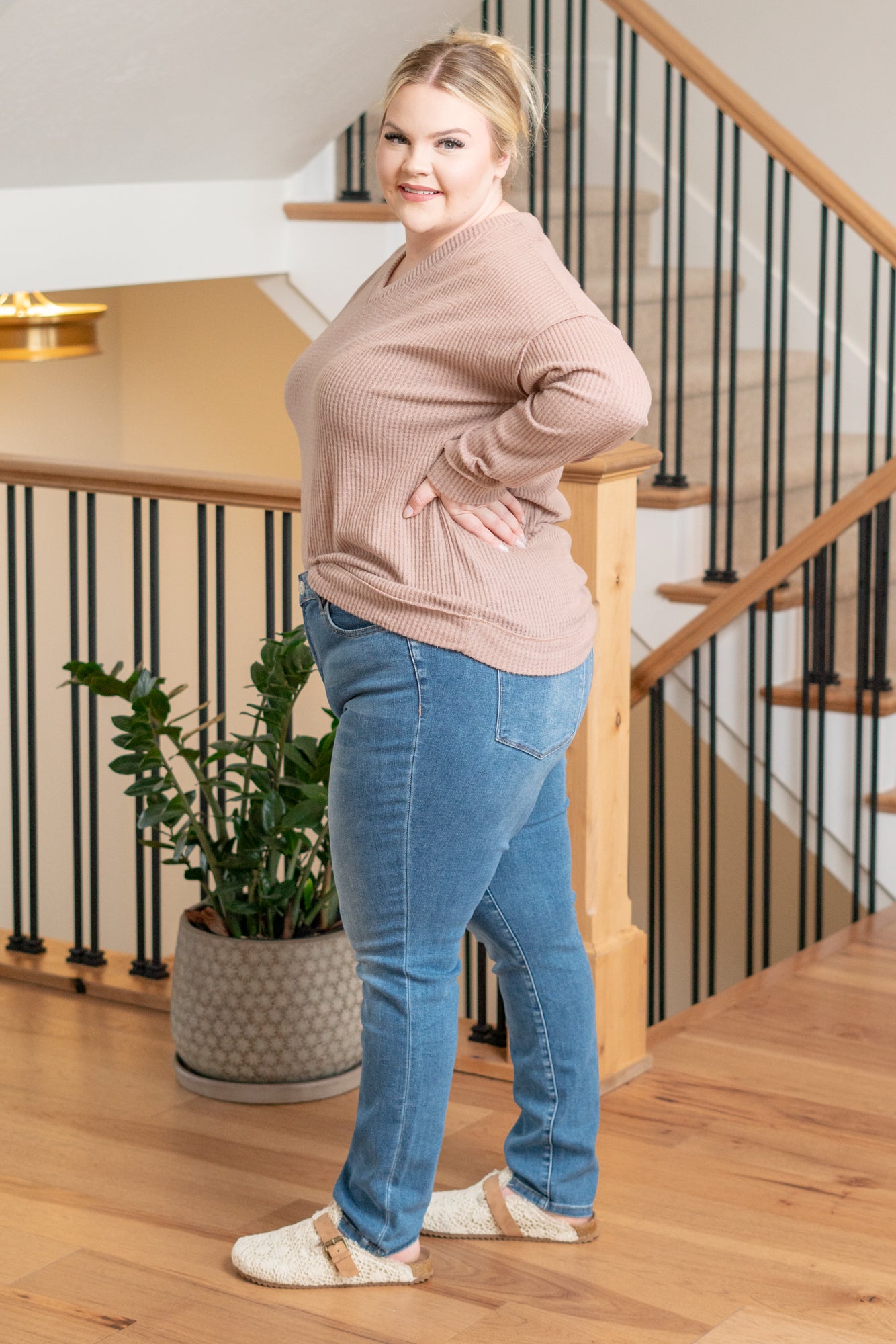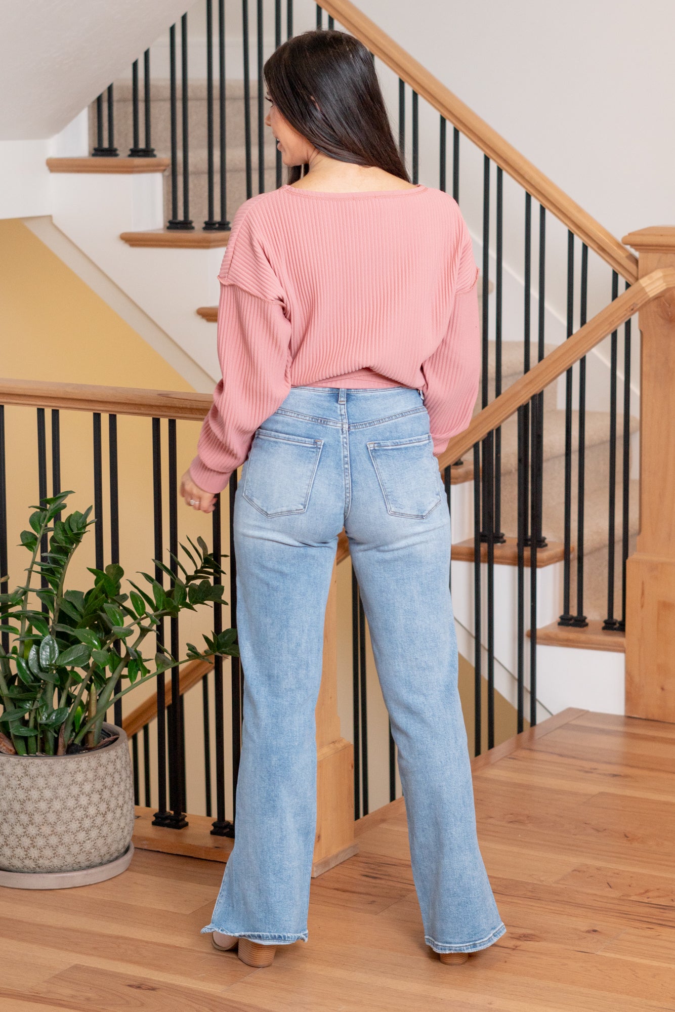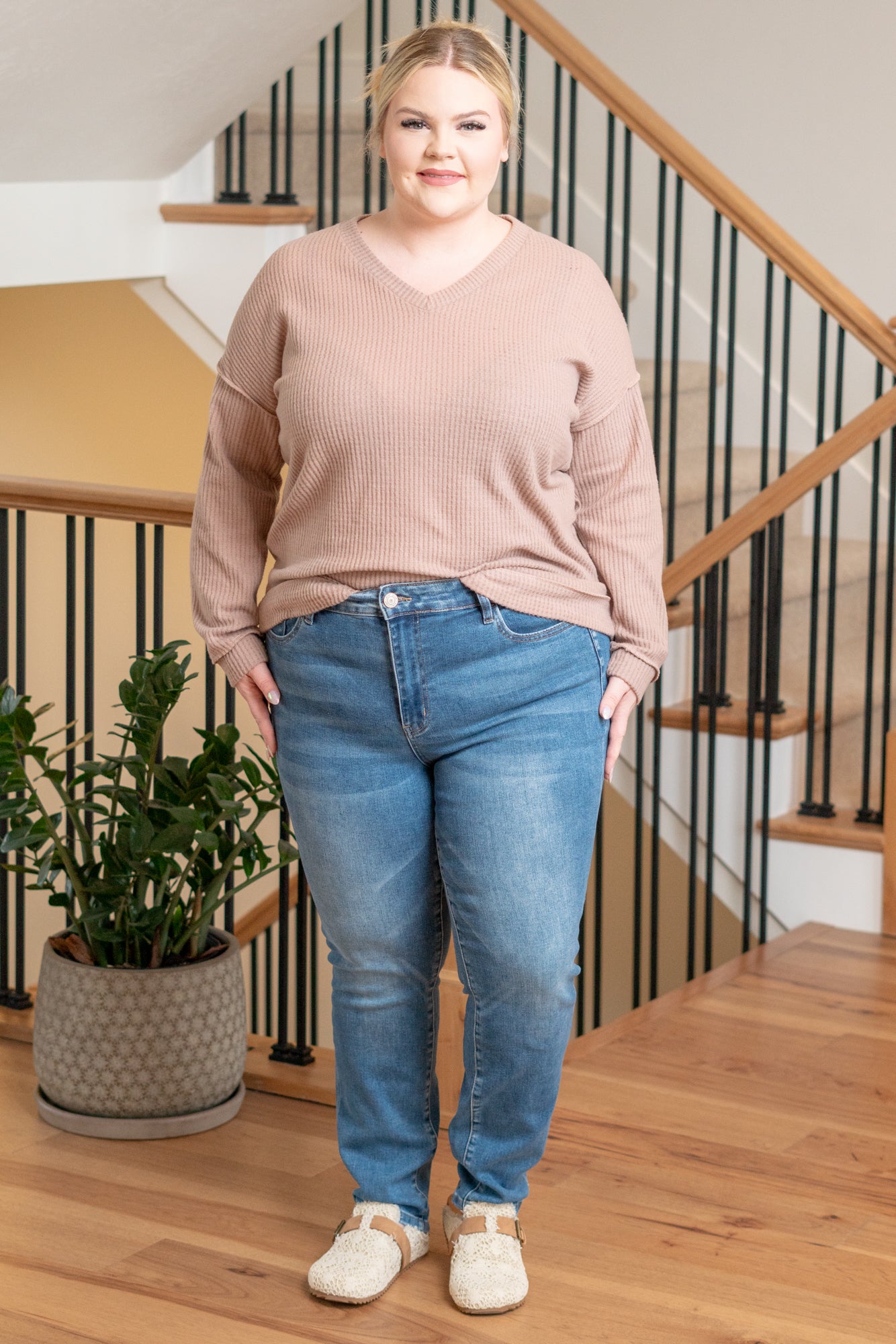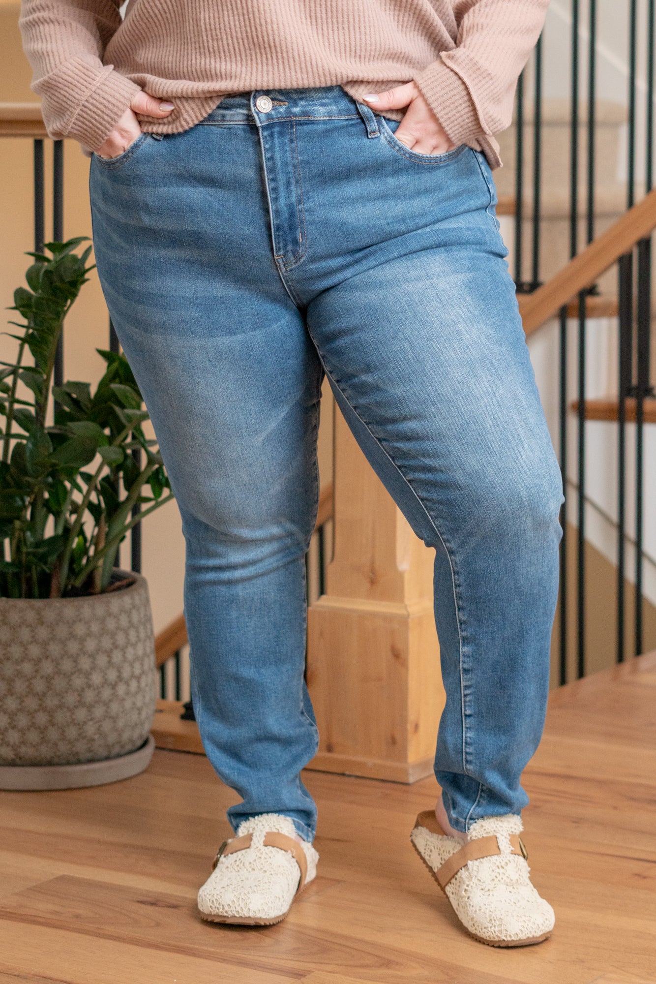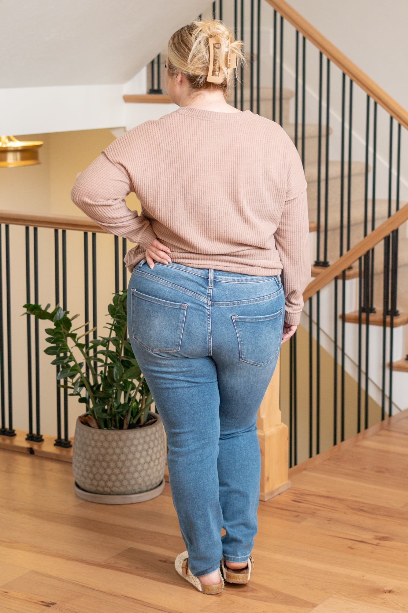 VERVET Walking on Sunshine High Rise Slim Boot Cut Regular & Plus Sizes Medium Blue Wash