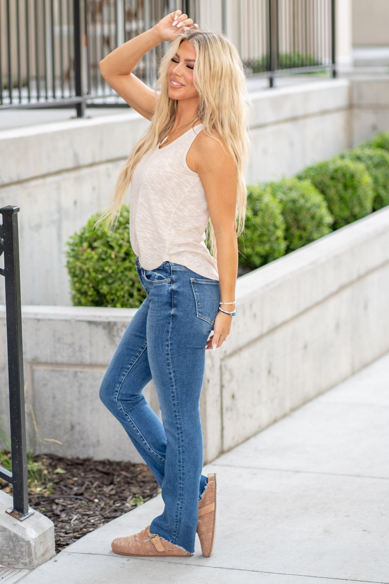Elevate your style with Vigilant, where comfort meets sophistication. Crafted from comfort stretch denim, these mid-rise slim bootcut jeans offer the perfect fit, effortlessly blending style and ease. The clean-cut raw hem adds a touch of modern flair, making these full-length jeans a chic addition to any outfit. Discover the elegance of Vigilant and step into a new level of timeless style.