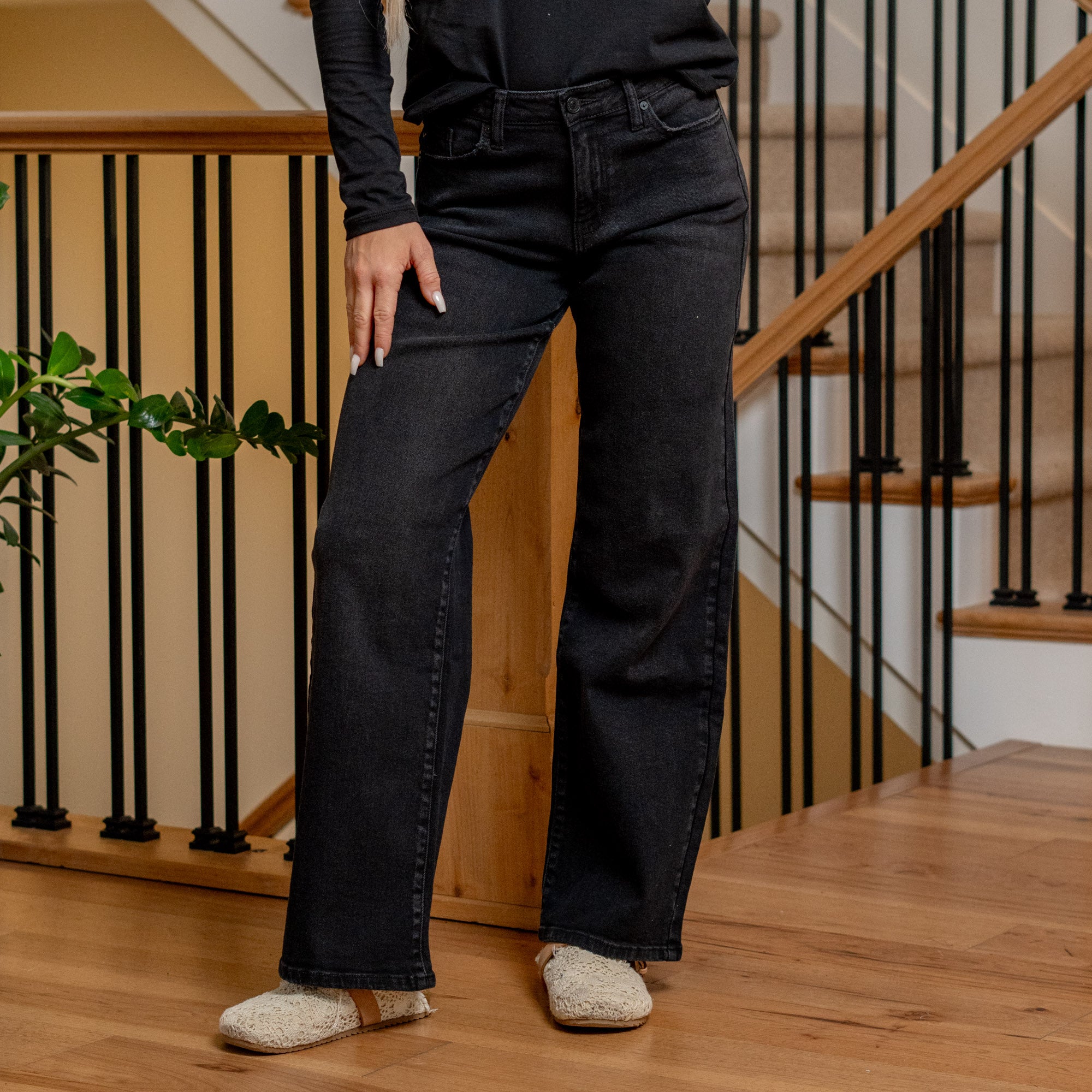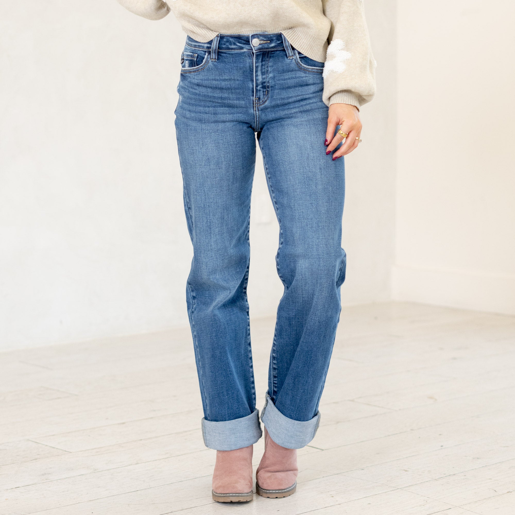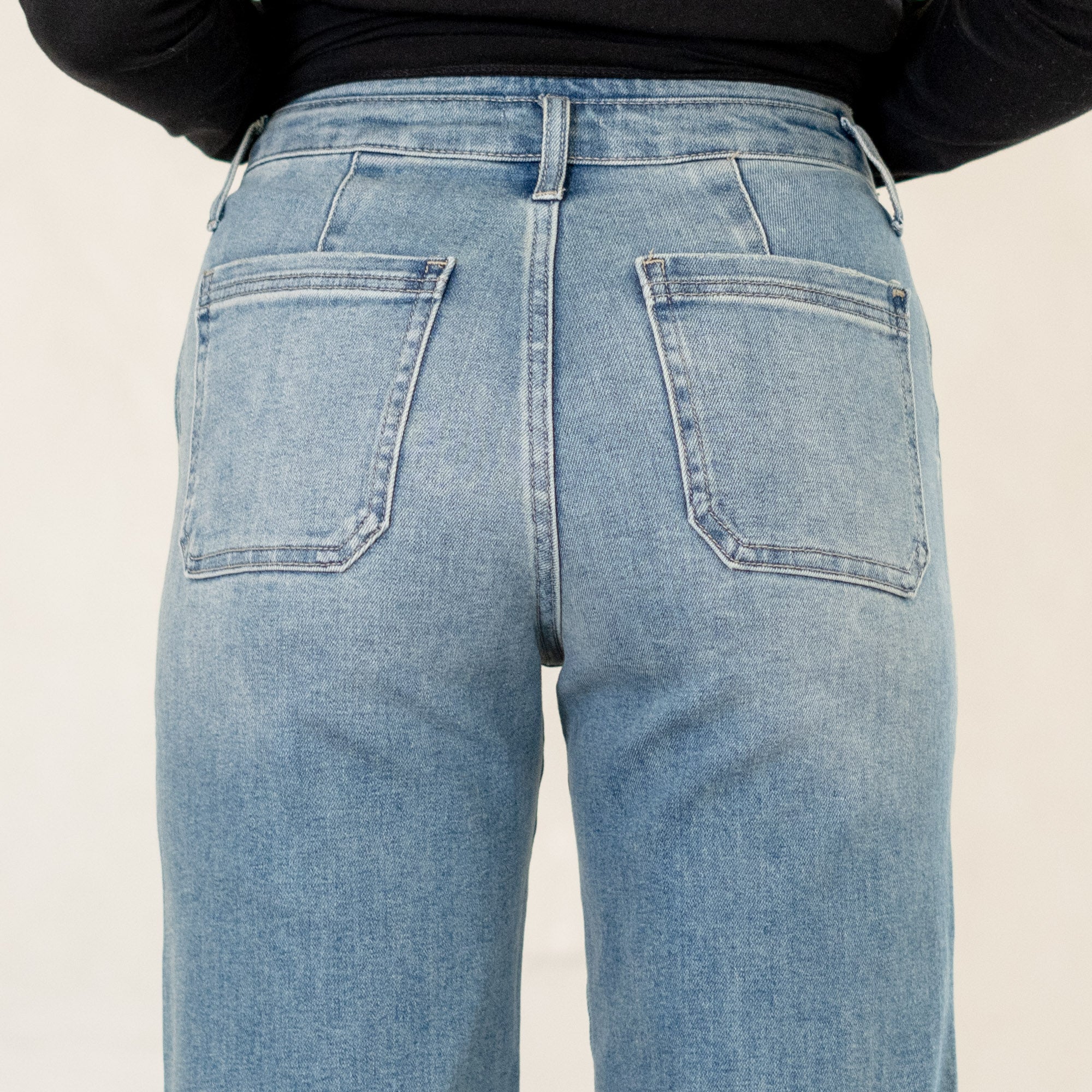 KanCan Ivanna High Rise Wide Leg Jeans Medium Blue Wash